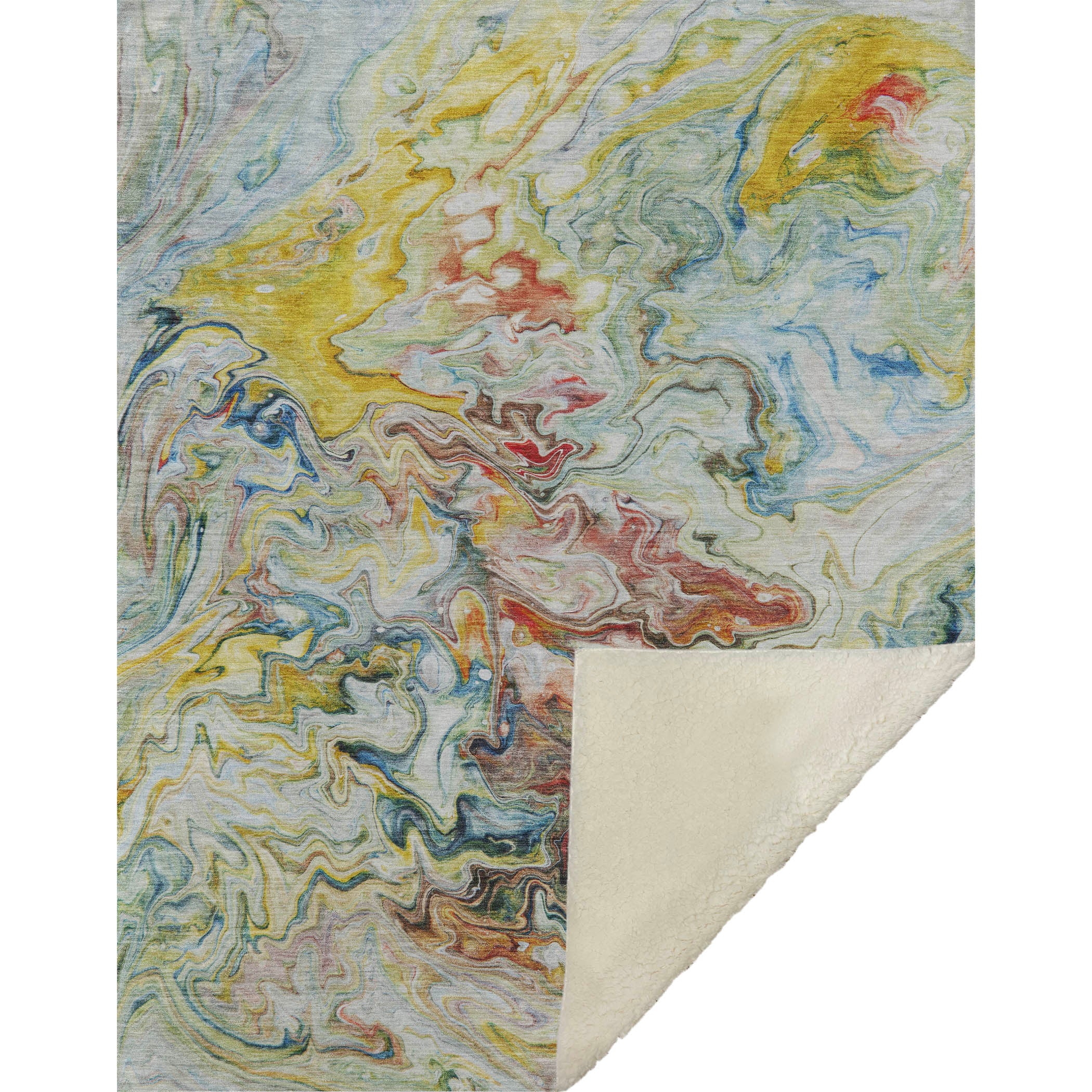 Dive into a world of artistry with irregular shapes and free-flowing colors that create a captivating abstract pattern, suited for transitional spaces. The oversized 50" x 70" dimensions ensure sumptuous comfort with a delightfully soft-touch front paired with a warm sherpa backing. Crafted from fade-resistant polyester microfiber, it’s ideal for indoors and covered outdoor settings and easily cared for with its premium machine washable construction.