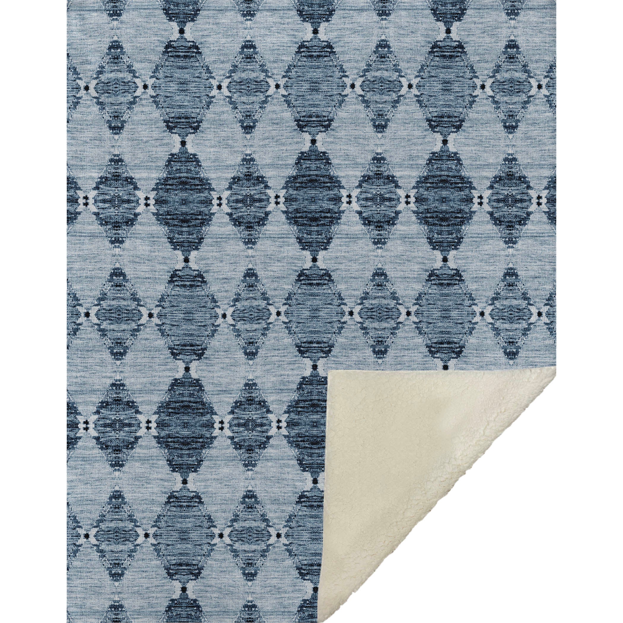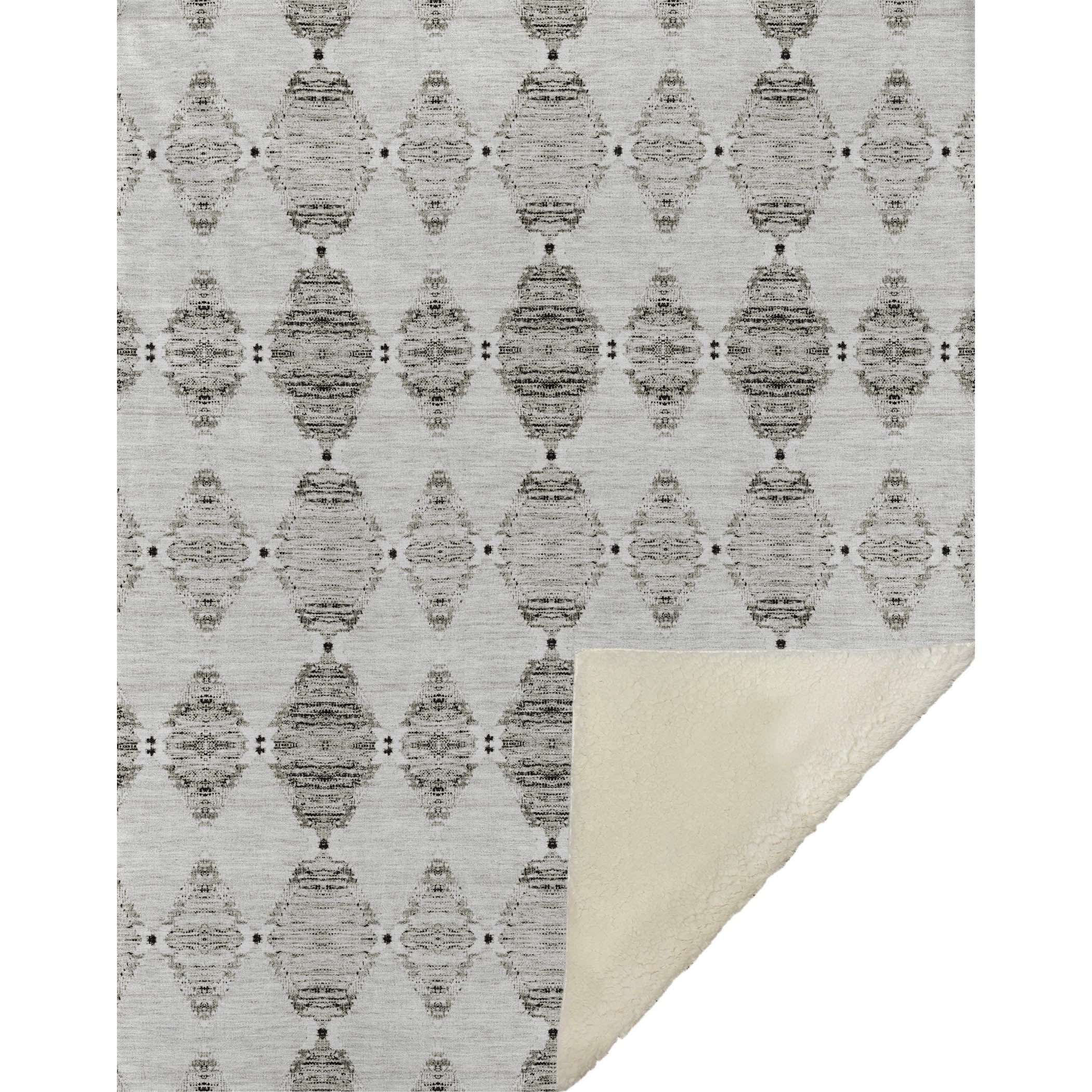 Unveil the allure of Moroccan beauty with intricate diamond motifs that breathe life into any room. This transitional masterpiece, oversized at 50" x 70", delivers not only style but the decadent coziness of a luxuriously soft-touch front and warm sherpa backing. Fade-resistant polyester microfiber makes it perfect for indoor and covered outdoor lounging, while its premium machine washable feature ensures effortless maintenance.