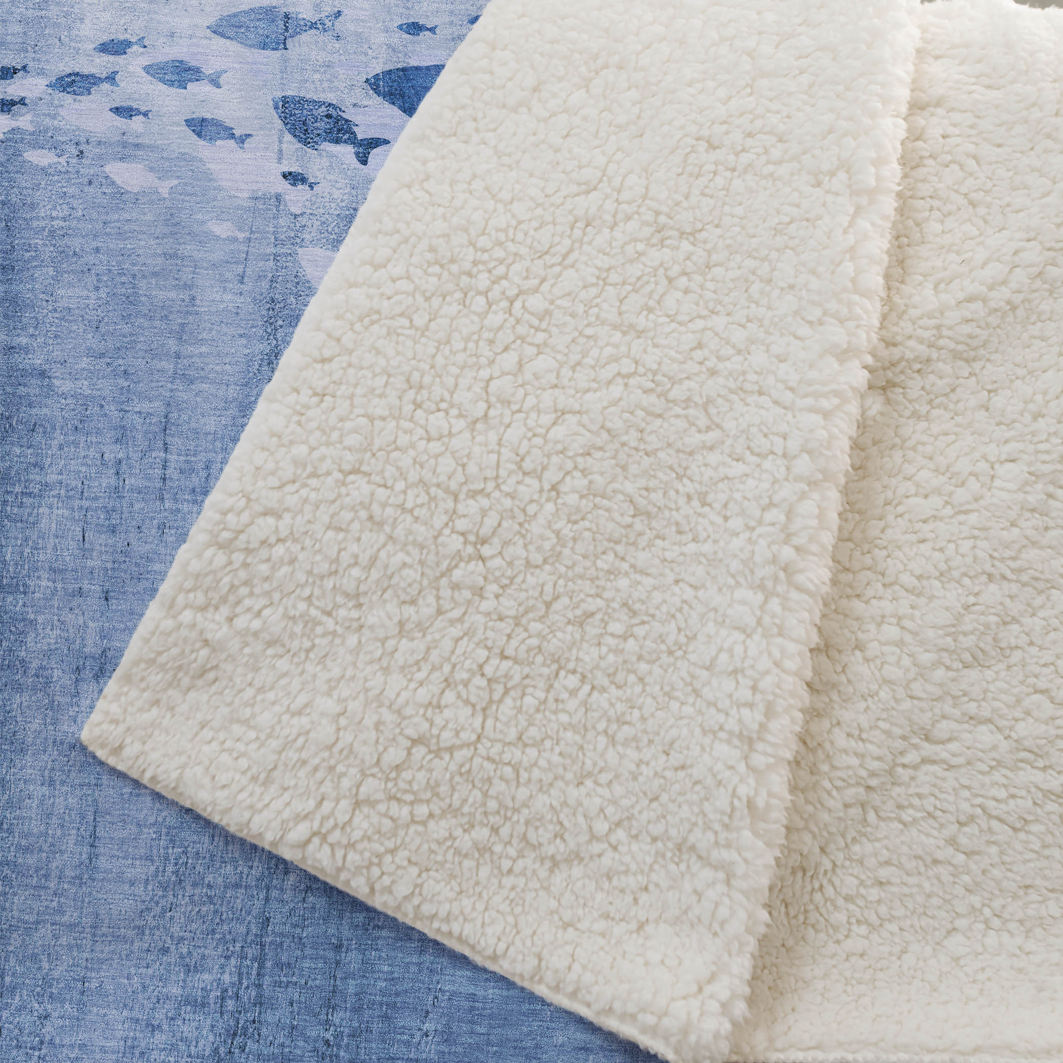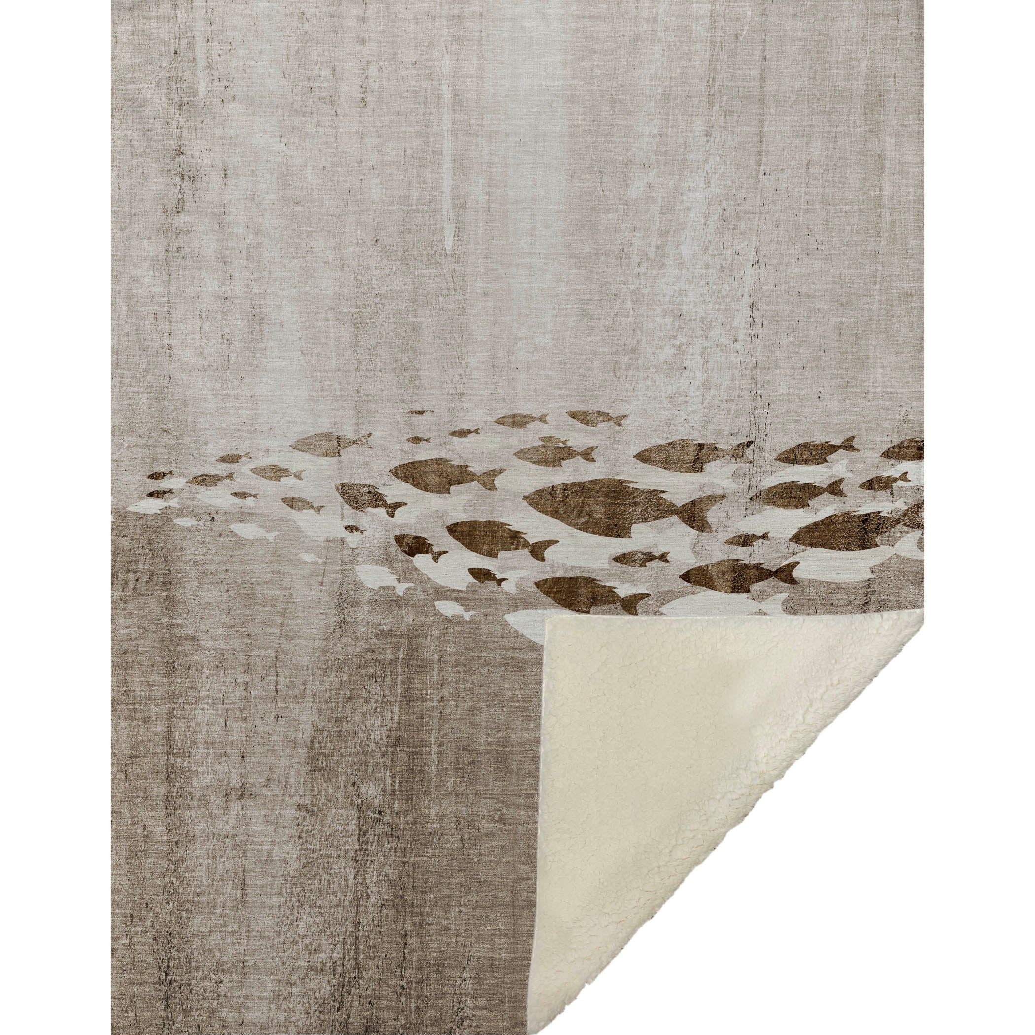 Dive into a serene coastal vibe with this transitional piece, featuring a nautical school of fish artfully layered in a gradient ombre effect. Its oversized 50" x 70" design offers generous coverage, while the luxuriously soft-touch front paired with a warming sherpa backing ensures ultimate comfort. Designed with fade-resistant polyester microfiber, it’s perfect for use both indoors and on covered porches, and thanks to its premium machine washable finish, maintenance is a breeze.