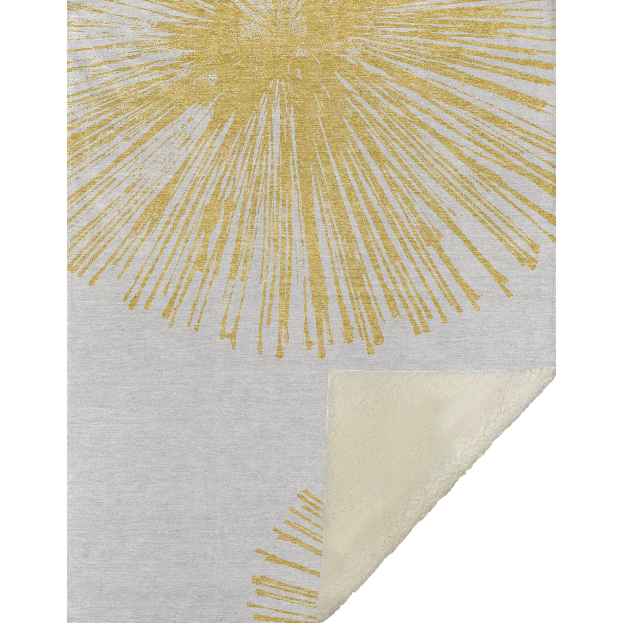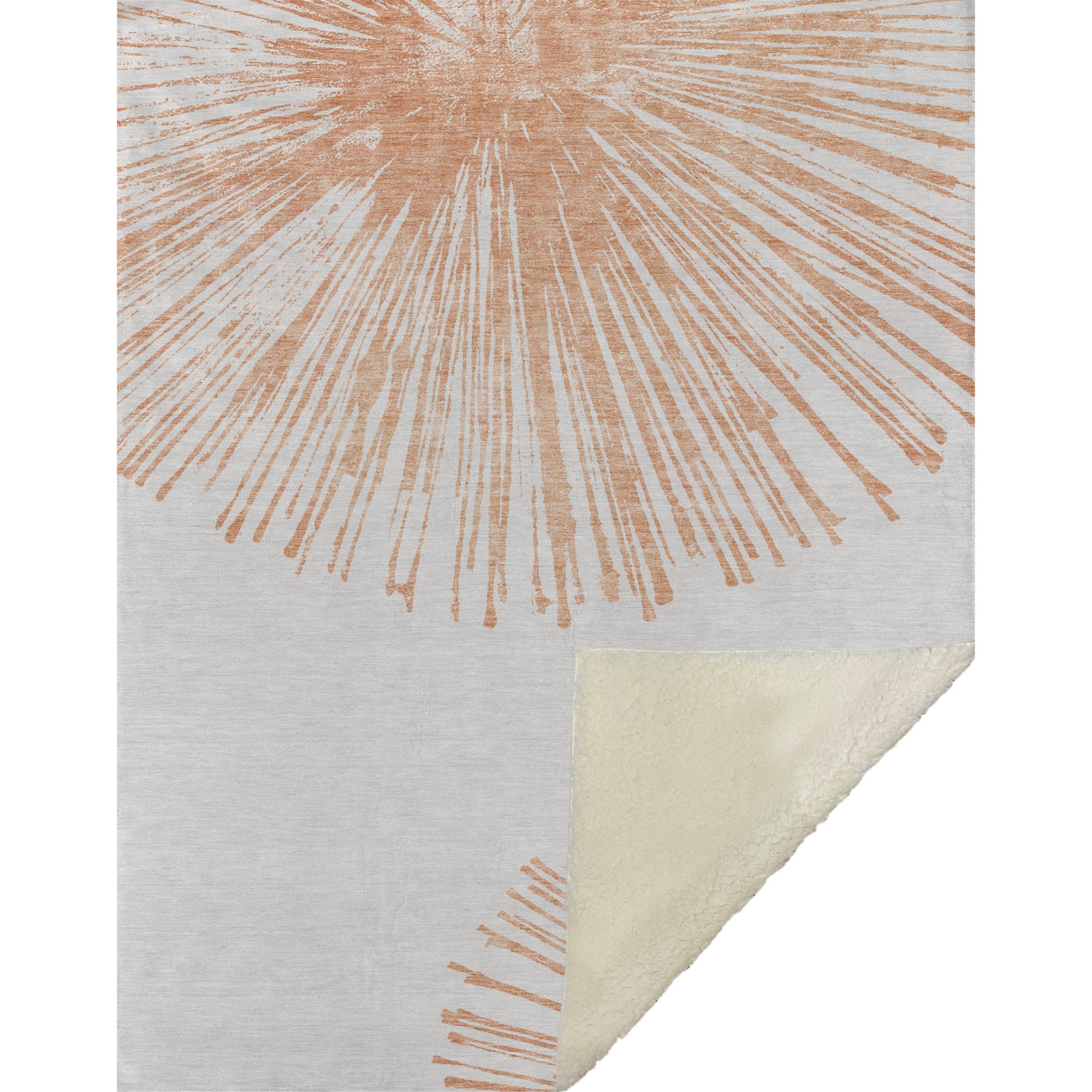 Breathe life into your decor with an oversized spoke pattern that adds a burst of energy through dynamic circles. Crafted in a transitional style, its lively design seamlessly complements various aesthetics while offering luxurious softness with a sherpa backing in its 50" x 70" expanse. Resistant to fading with polyester microfiber construction, it's perfect for both indoor and covered outdoor areas, and its premium machine washable nature ensures easy care, making it a stylish yet practical addition to any space.