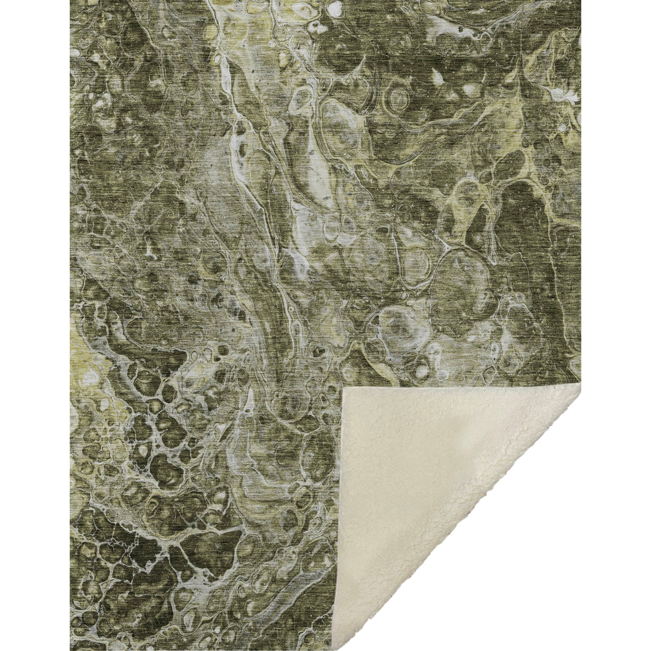 An artistic marvel awaits you with this oversized 50" x 70" throw, featuring a dazzling abstract pattern inspired by microscopic cells. The transitional style ensures it effortlessly complements a range of interiors, while its luxuriously soft-touch front and warm sherpa backing wrap you in pure comfort. Constructed from fade-resistant polyester microfiber, it's designed for durable use indoors and in protected outdoor settings, and its premium machine washable convenience ensures easy, fuss-free maintenance.
