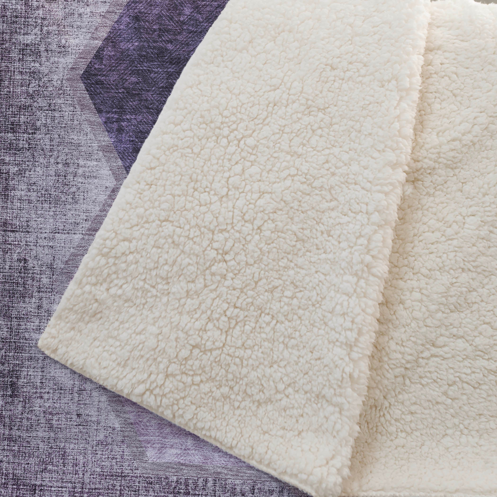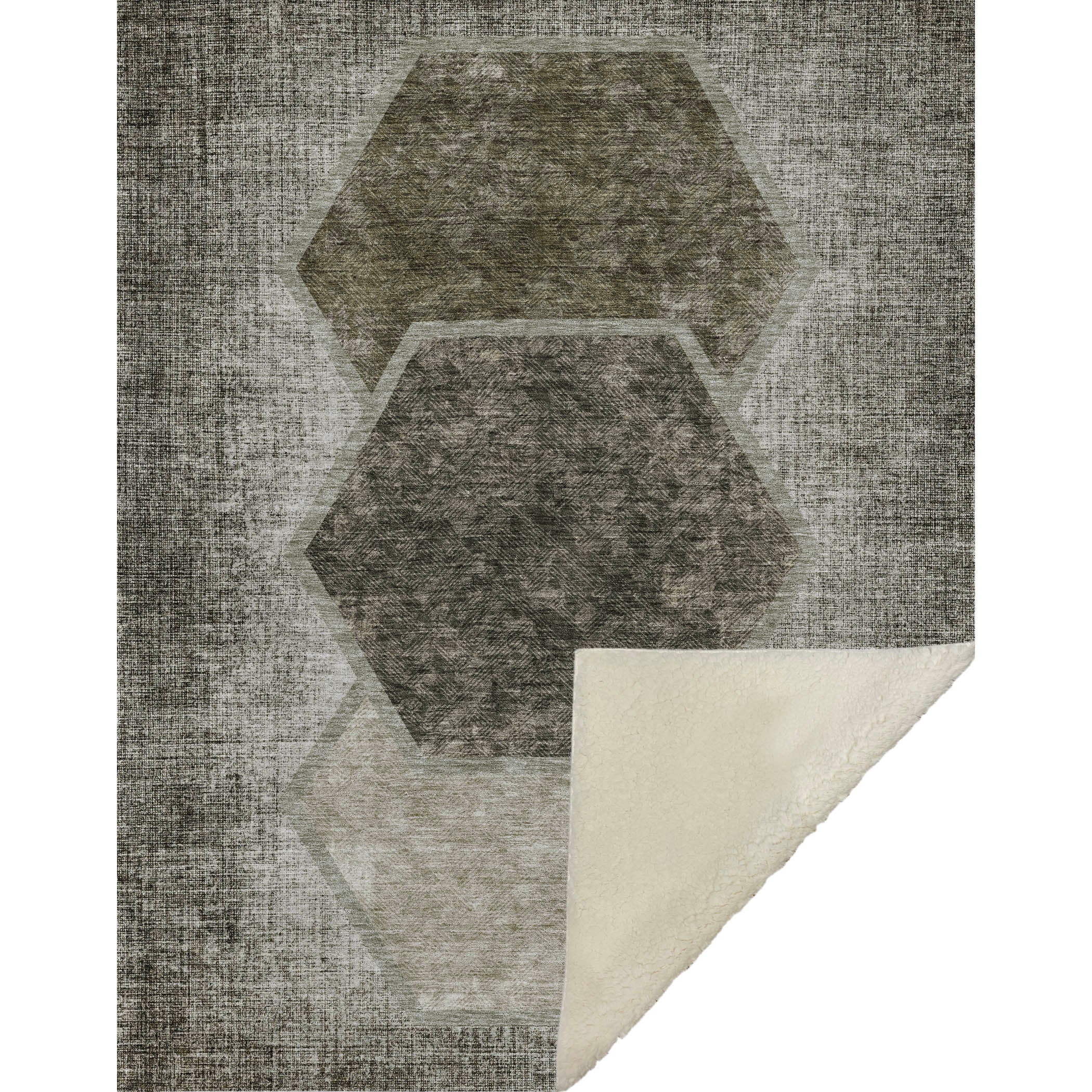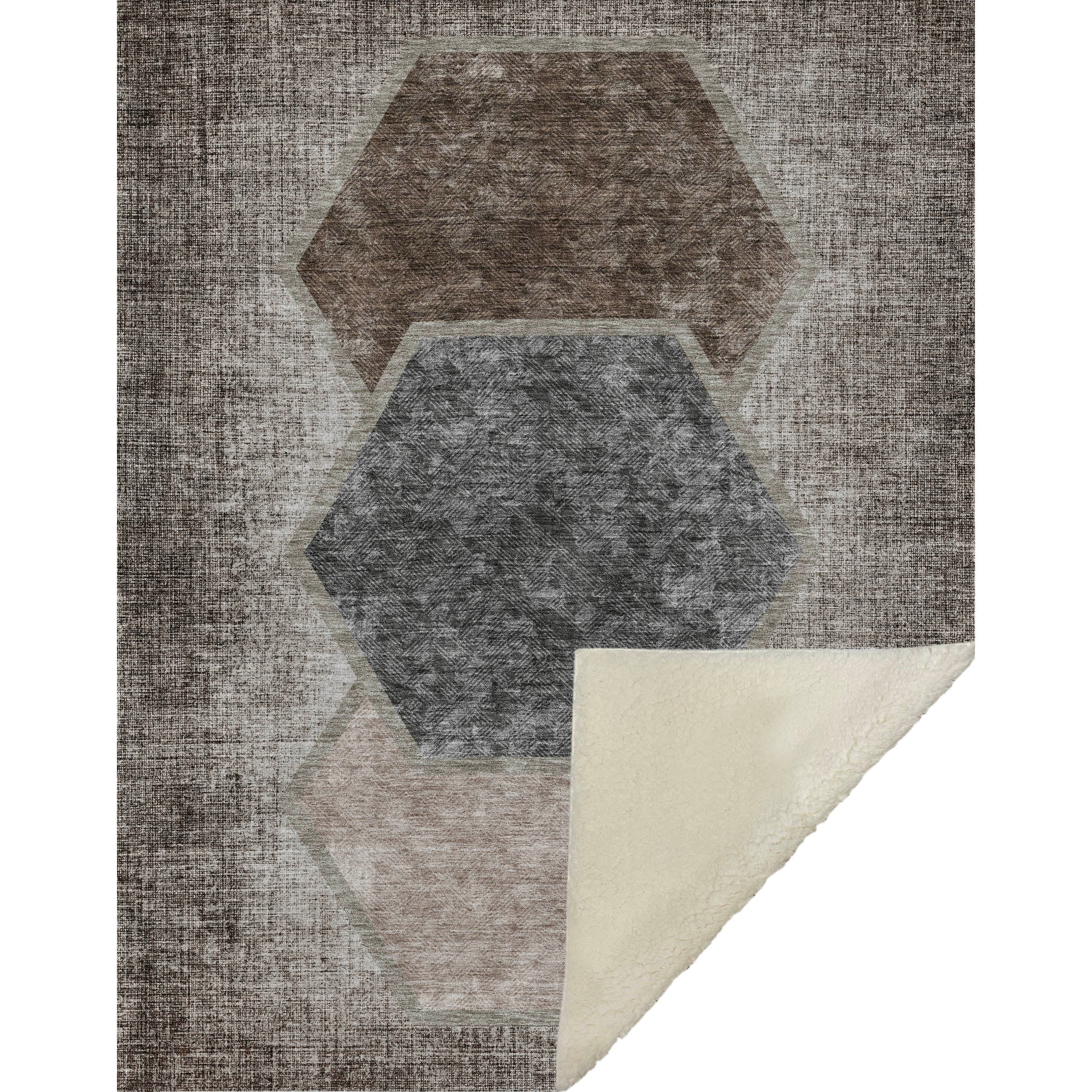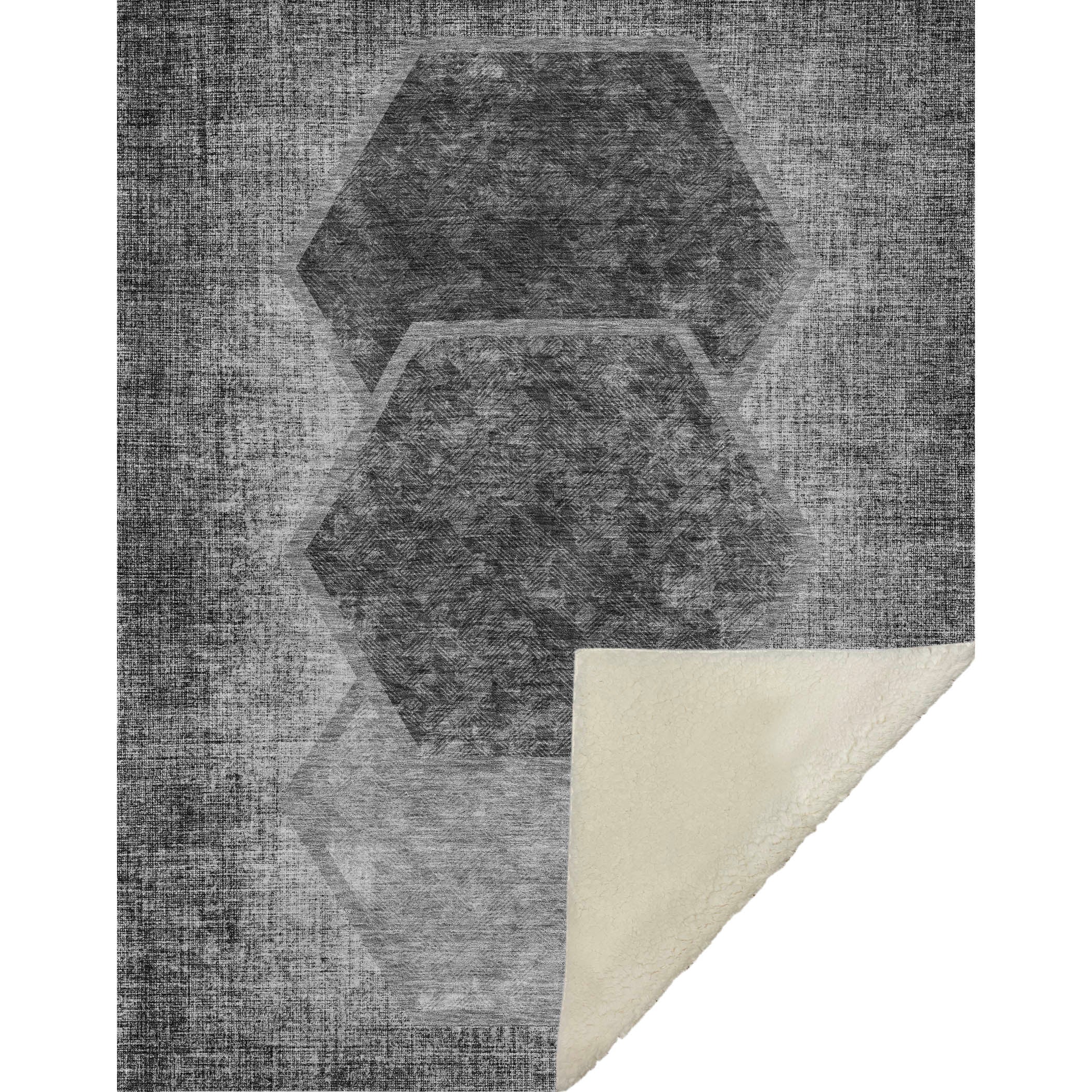Embrace the geometric allure of trio-centered hexagons that bring cozy flair and comfort to your space. Perfectly oversized at 50" x 70", its transitional style adapts seamlessly to a range of home aesthetics, offering a luxuriously soft-touch front with a warm sherpa backing for ultimate warmth. Crafted from fade-resistant polyester microfiber, it's designed for both indoor and covered outdoor settings and offers premium machine washable convenience for effortless upkeep.