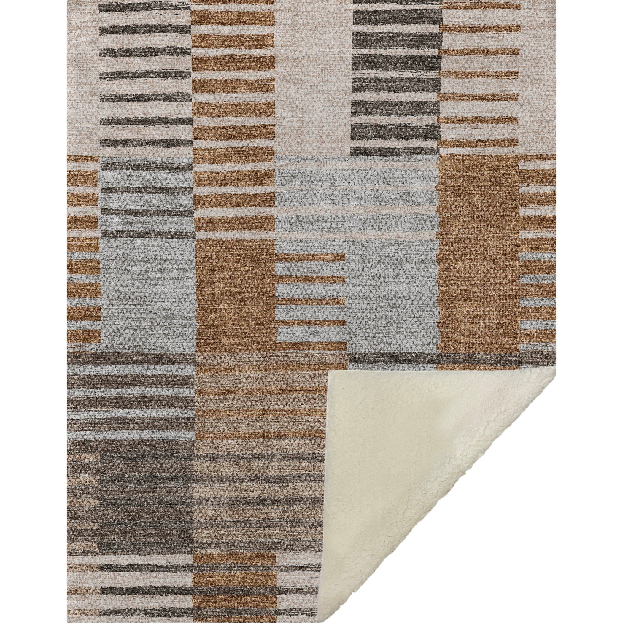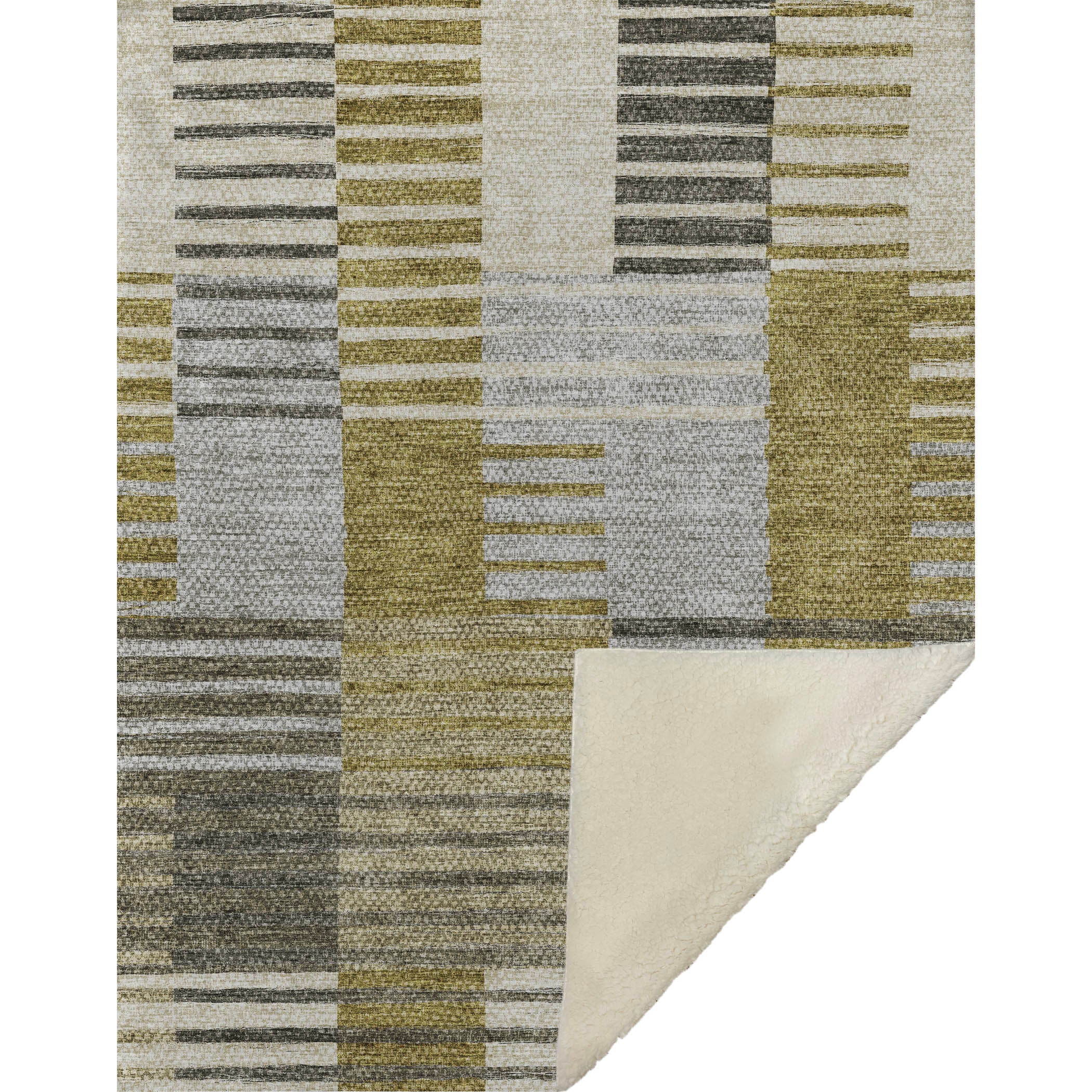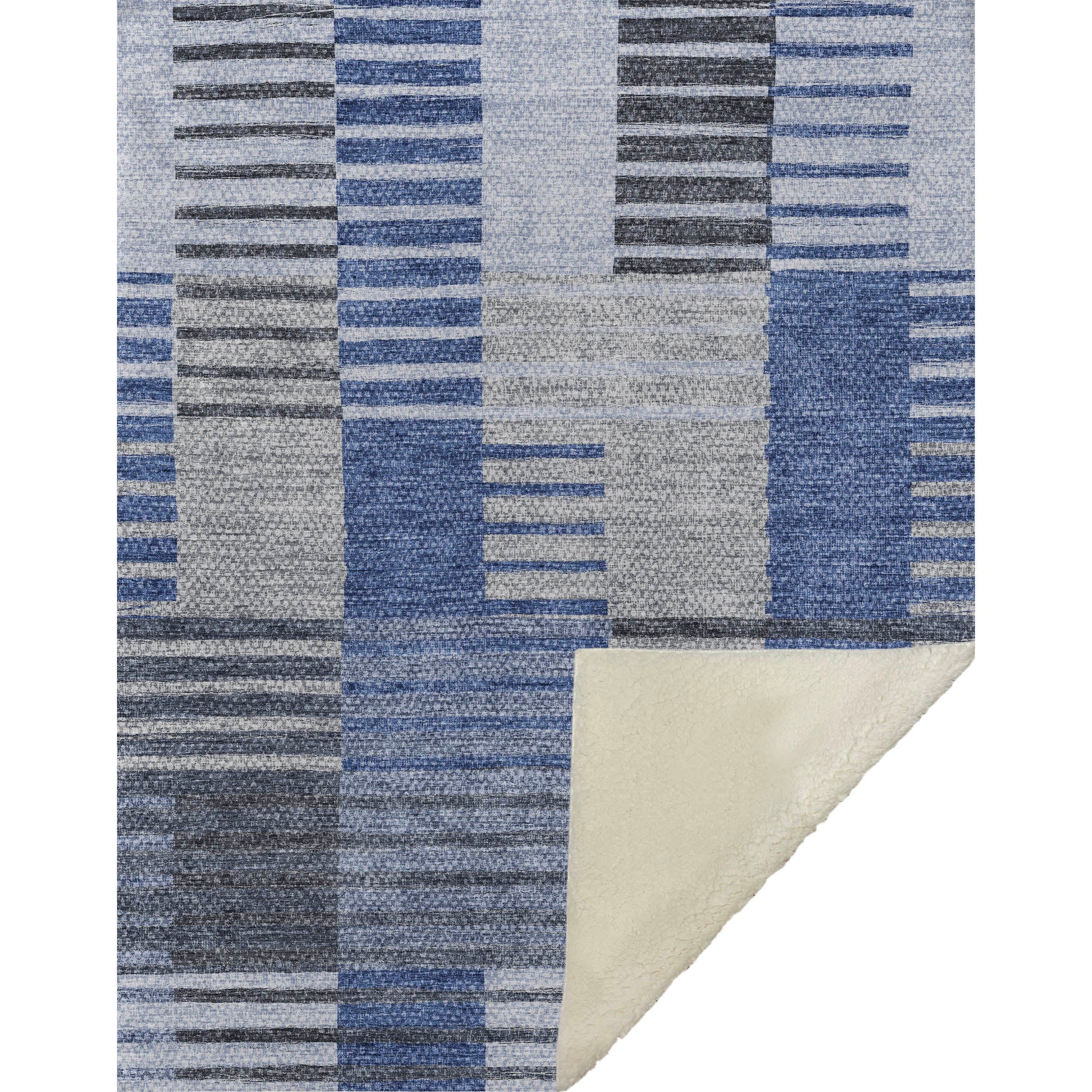 Embrace a dance of broken horizontal bars in soft tones, delivering a captivating touch to any transitional décor. With its striped pattern, this oversized 50" x 70" creation wraps you in a luxuriously soft-touch front and a warm sherpa backing for supreme comfort. Crafted from fade-resistant polyester microfiber, it’s ideal for both indoor and covered outdoor settings, and offers easy upkeep with its premium machine washable design.