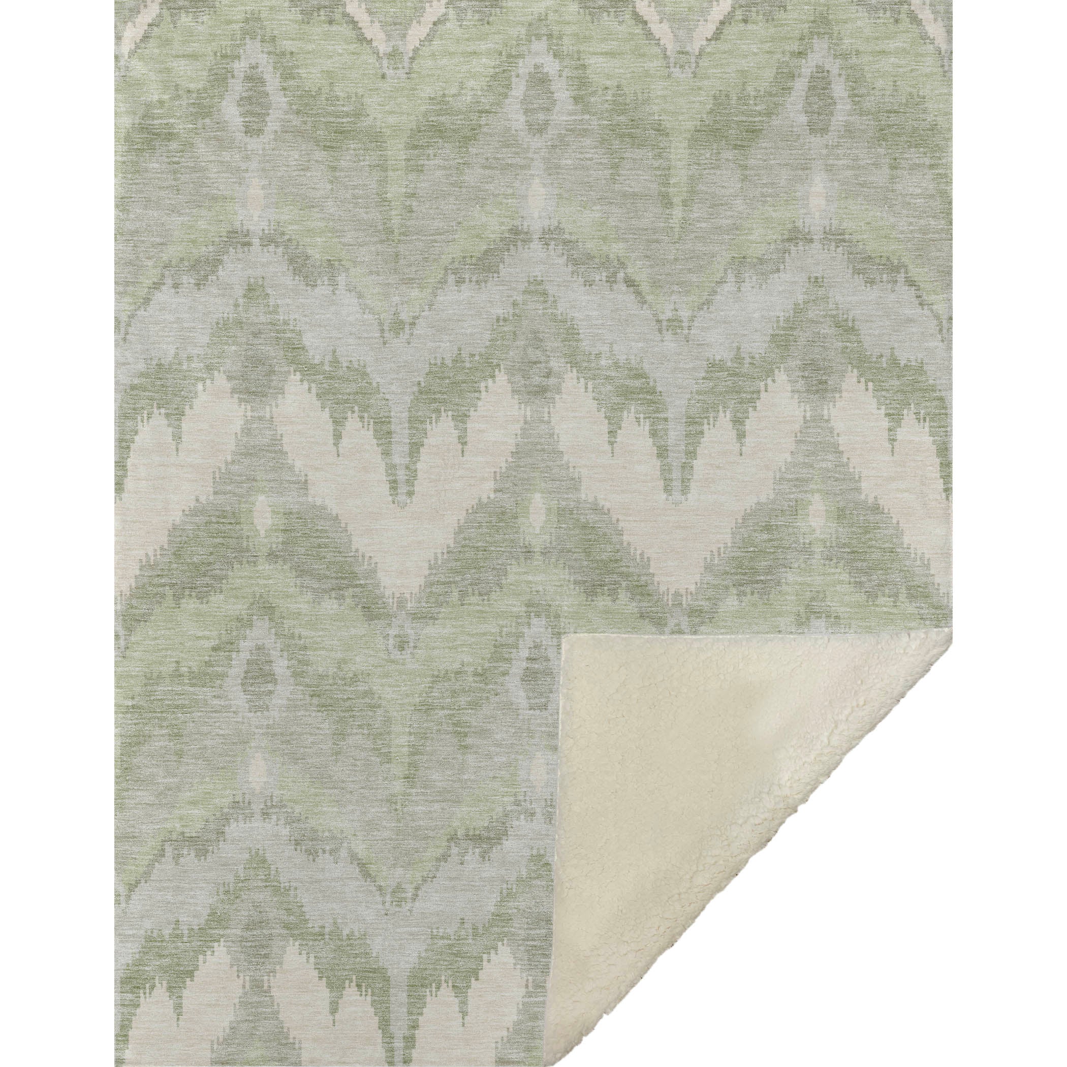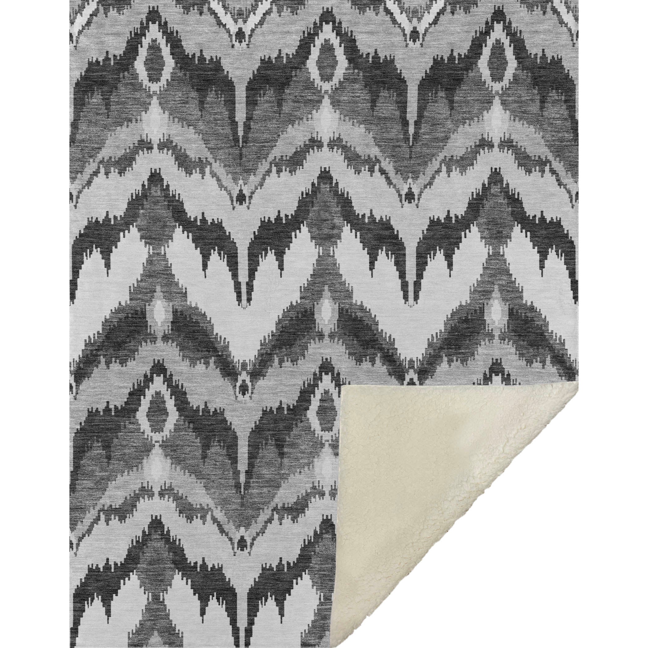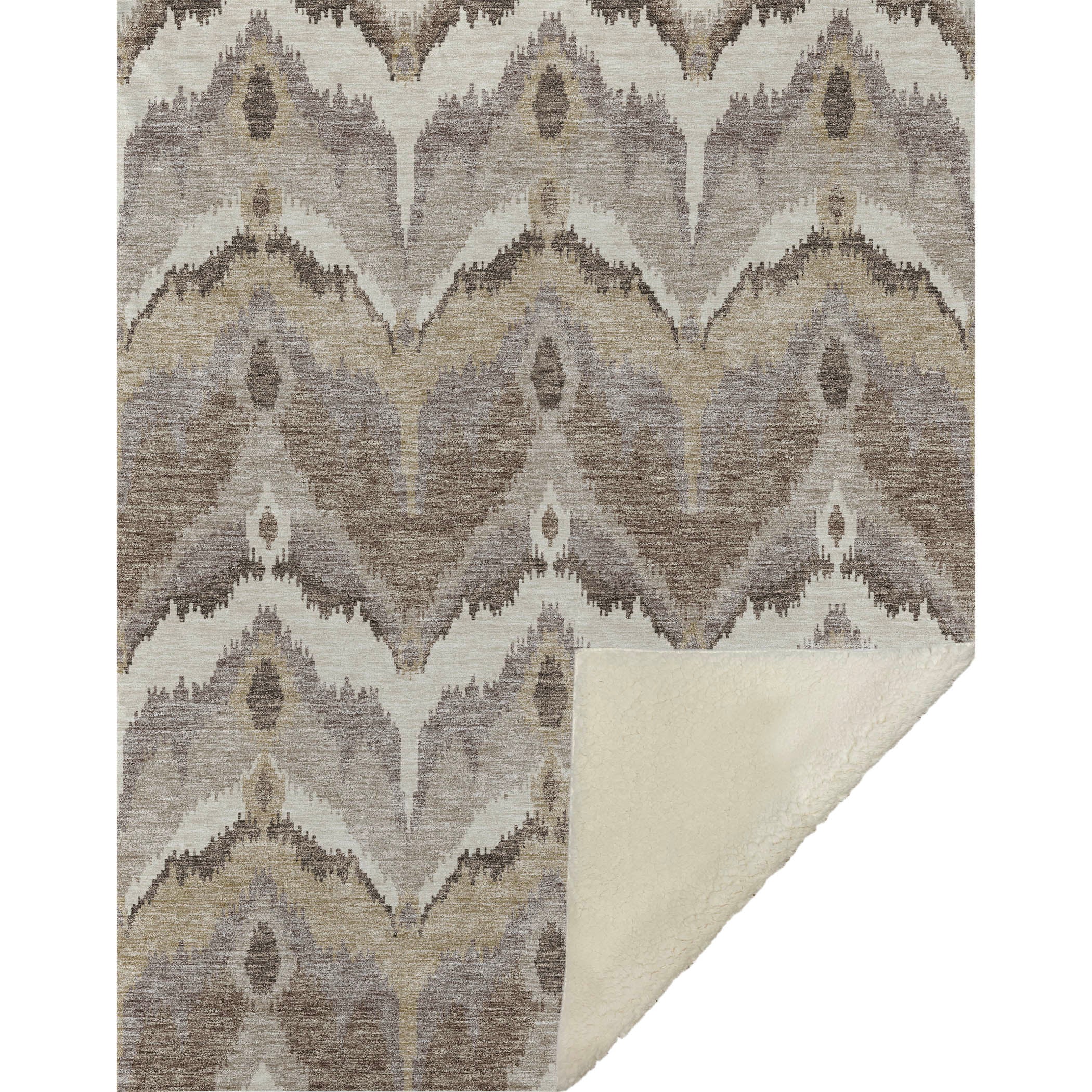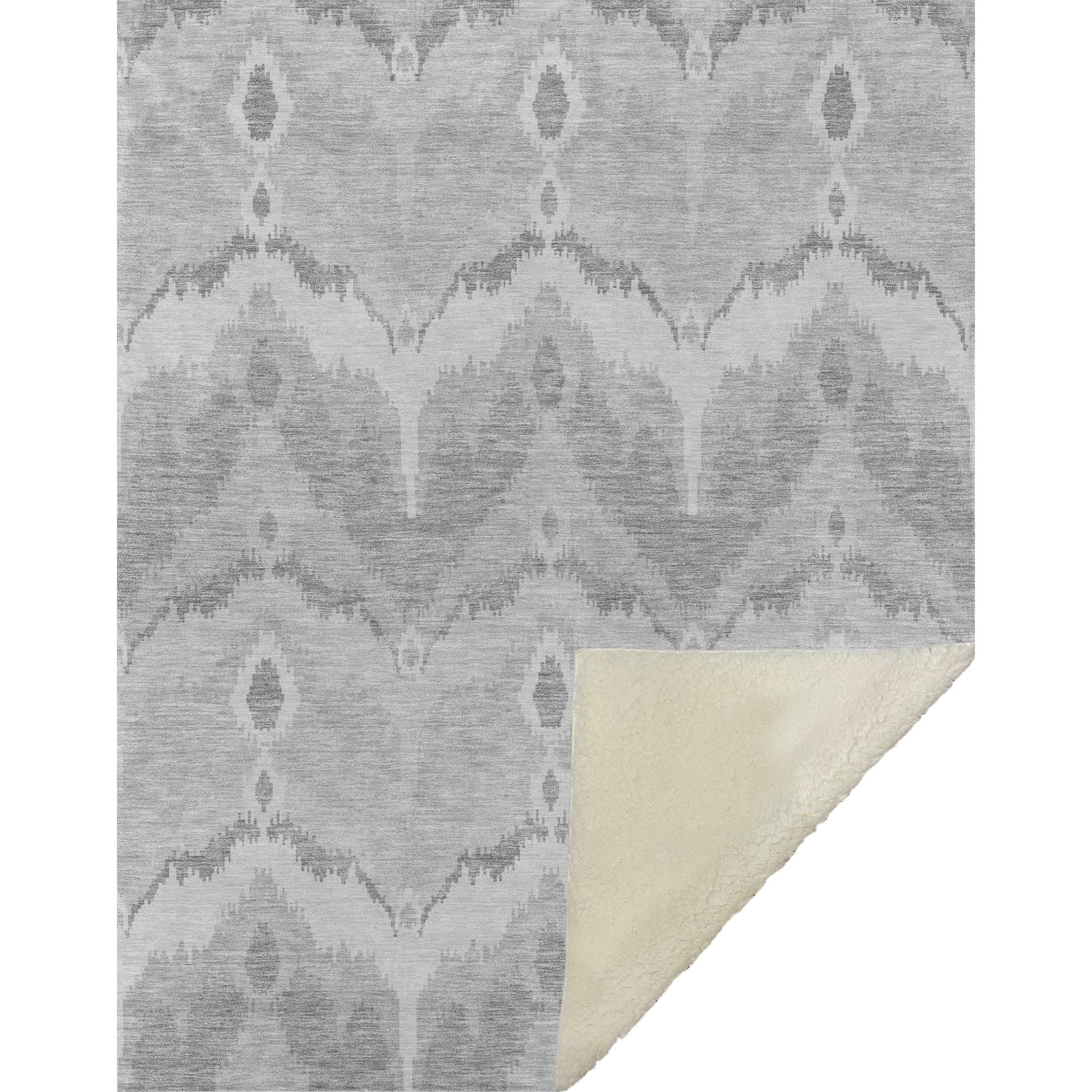 Immerse yourself in timeless allure with a transitional style, showcasing a distinctive blurred ikat pattern in gentle hues. With an oversized 50" x 70" size, its luxuriously soft-touch front and warm sherpa backing wrap you in cozy warmth. Fade-resistant polyester microfiber ensures it's suited for both indoor and covered outdoor spaces, and its Premium Machine Washable design allows for effortless maintenance.