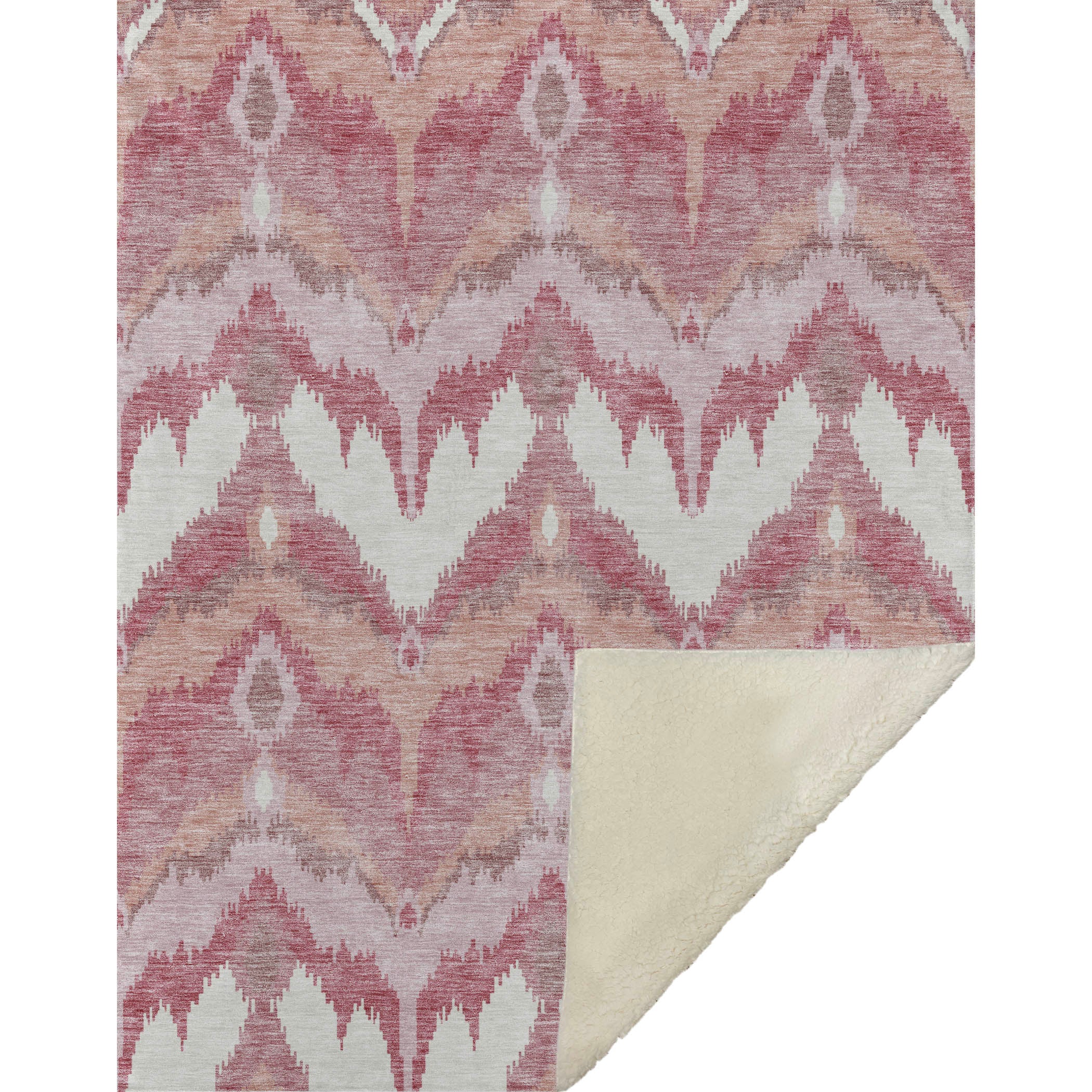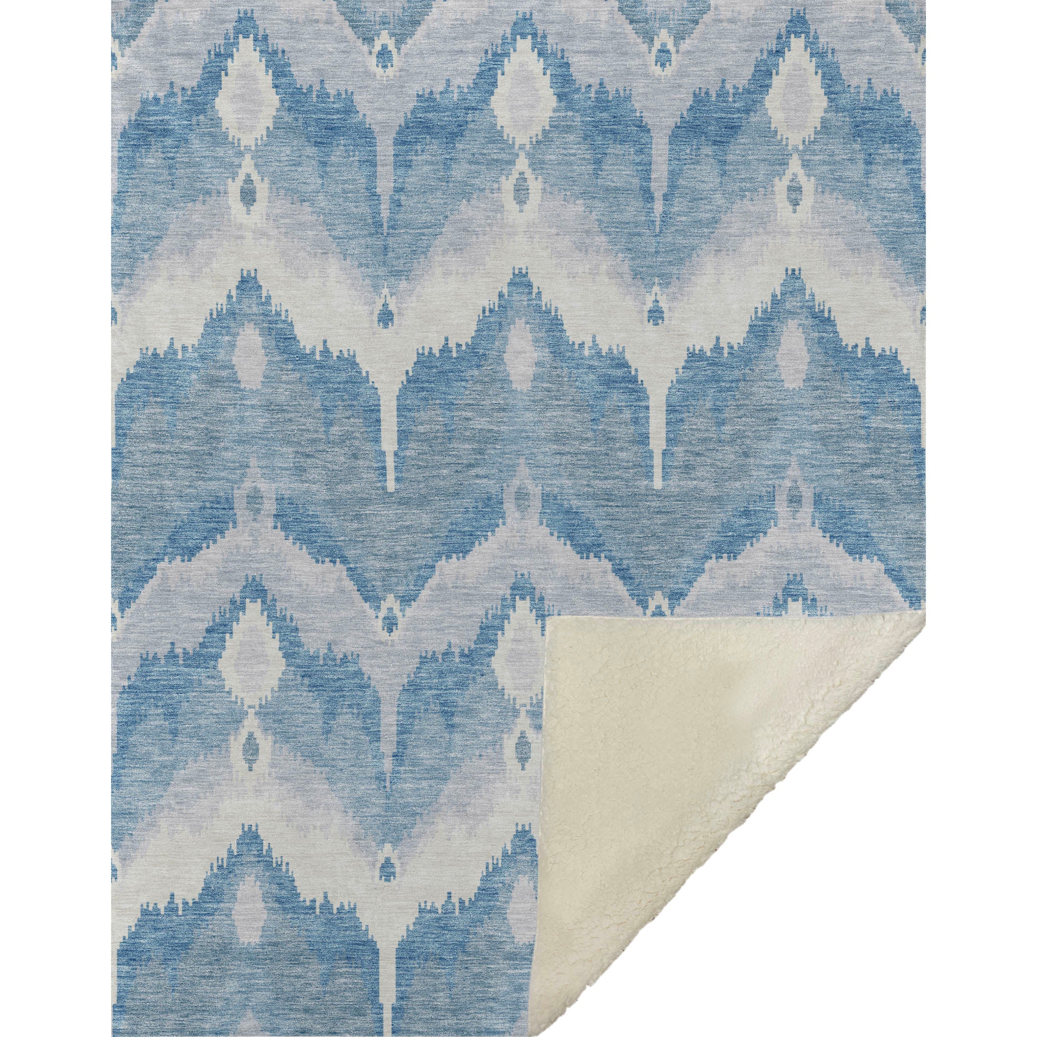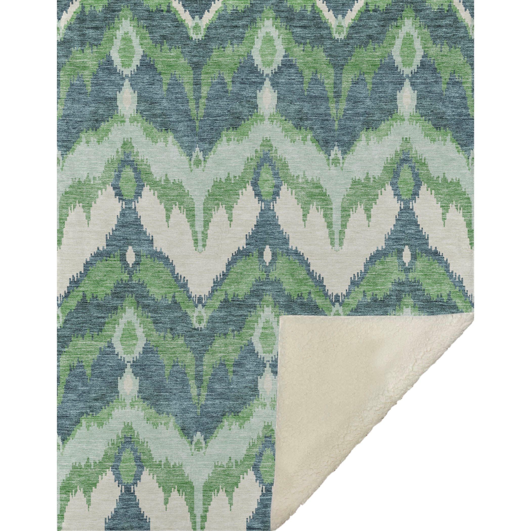 Immerse yourself in timeless allure with a transitional style, showcasing a distinctive blurred ikat pattern in gentle hues. With an oversized 50" x 70" size, its luxuriously soft-touch front and warm sherpa backing wrap you in cozy warmth. Fade-resistant polyester microfiber ensures it's suited for both indoor and covered outdoor spaces, and its Premium Machine Washable design allows for effortless maintenance.