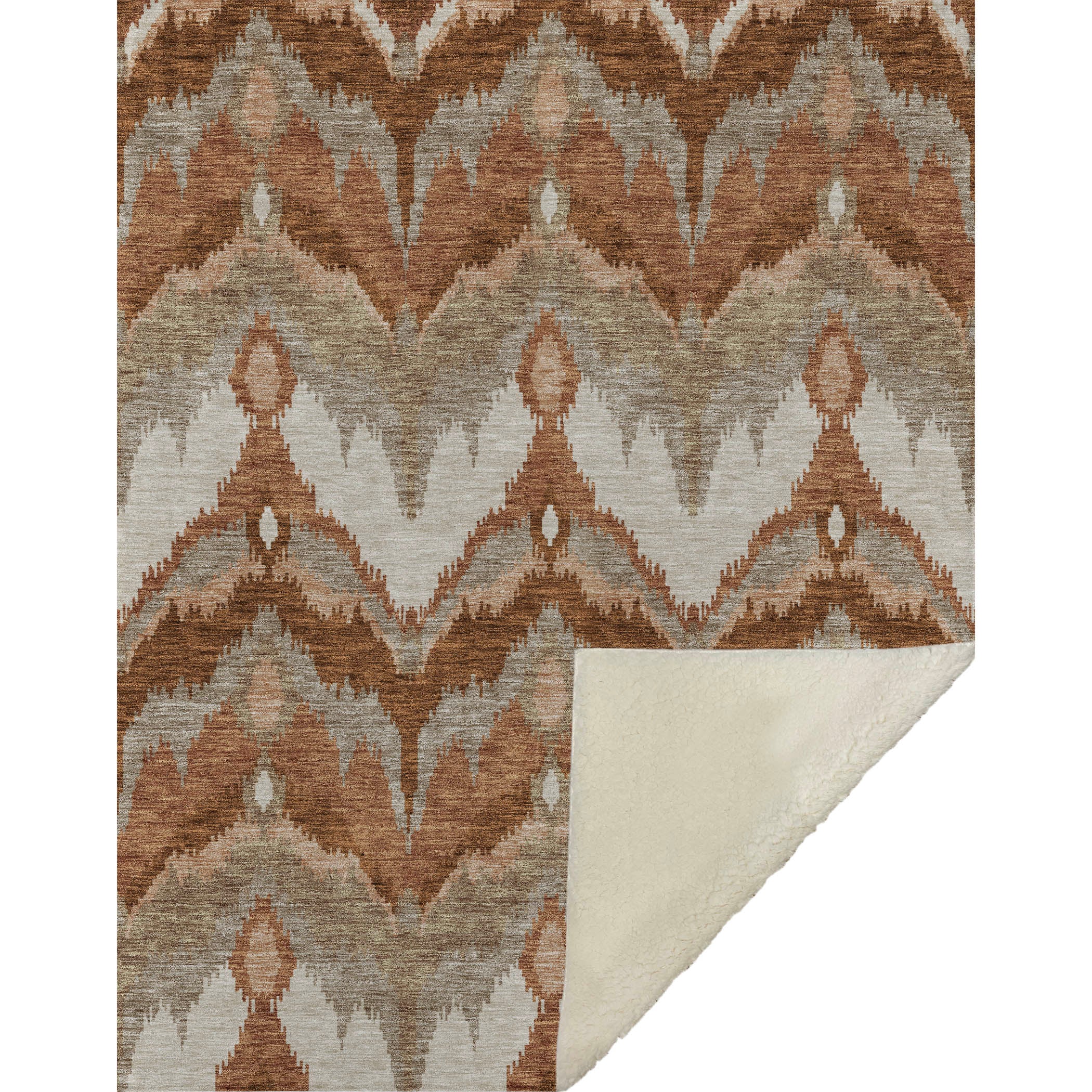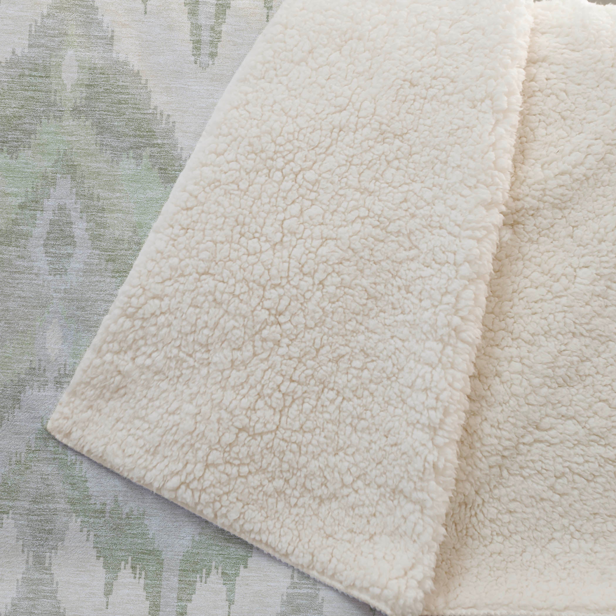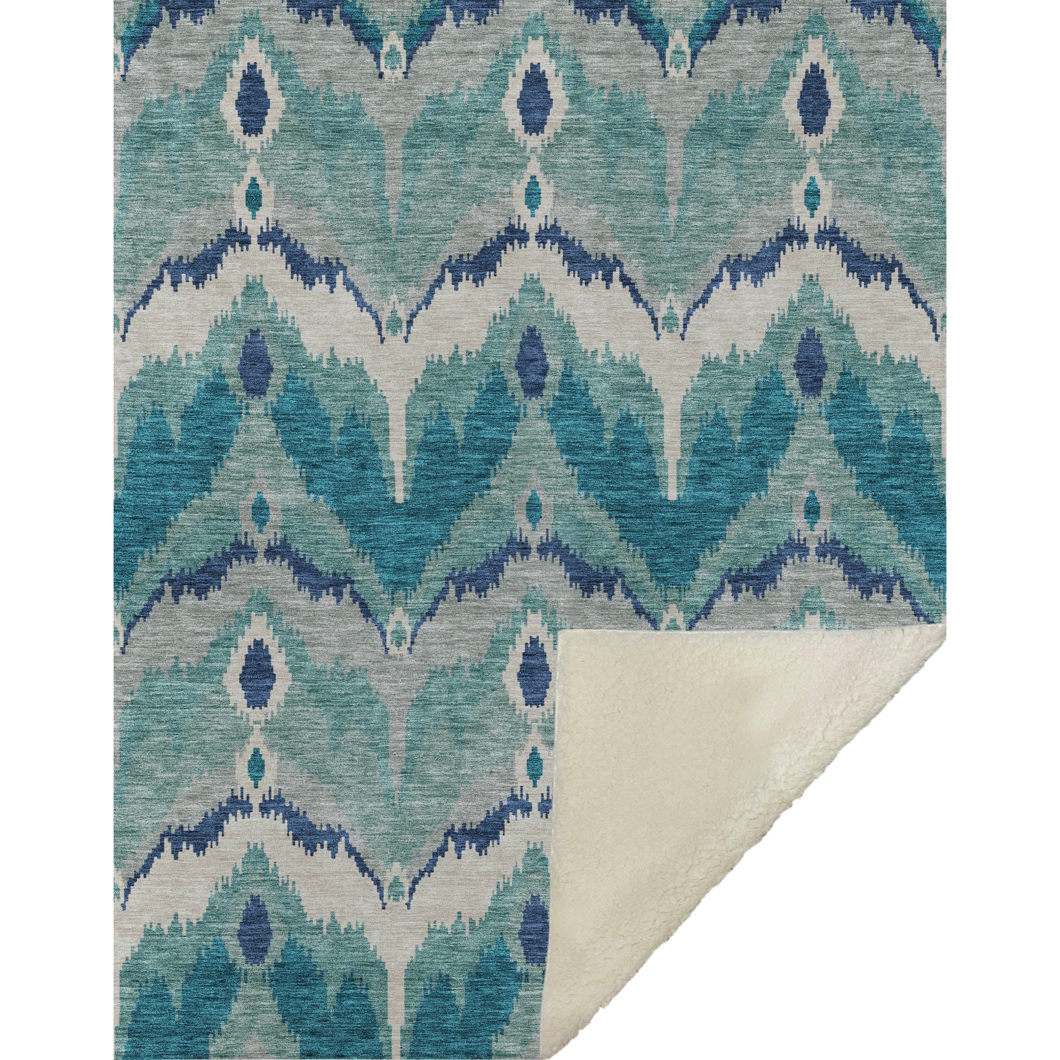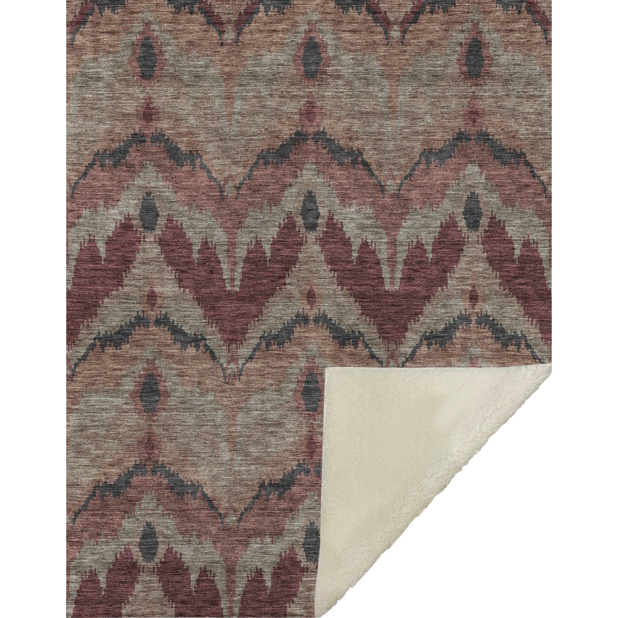 Immerse yourself in timeless allure with a transitional style, showcasing a distinctive blurred ikat pattern in gentle hues. With an oversized 50" x 70" size, its luxuriously soft-touch front and warm sherpa backing wrap you in cozy warmth. Fade-resistant polyester microfiber ensures it's suited for both indoor and covered outdoor spaces, and its Premium Machine Washable design allows for effortless maintenance.