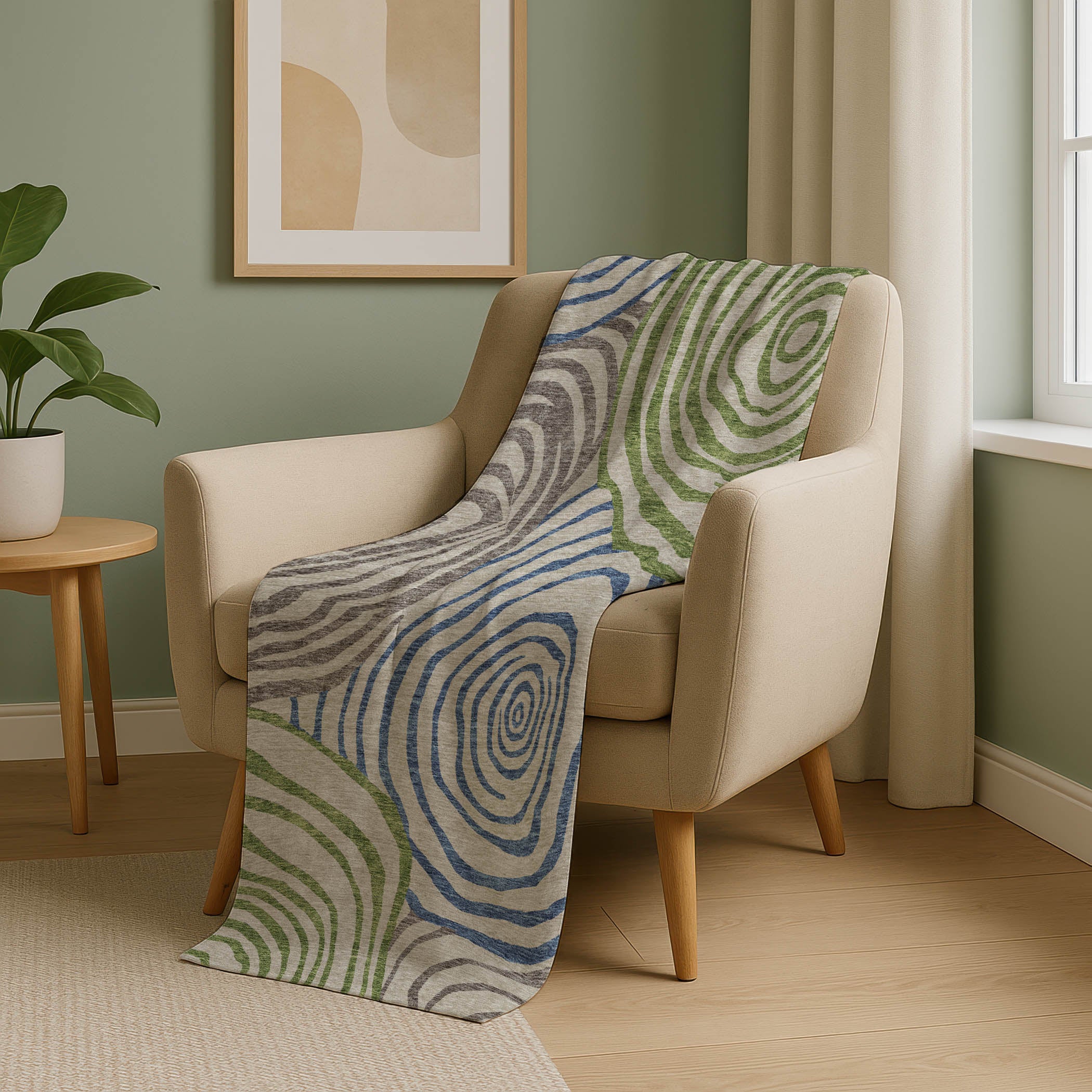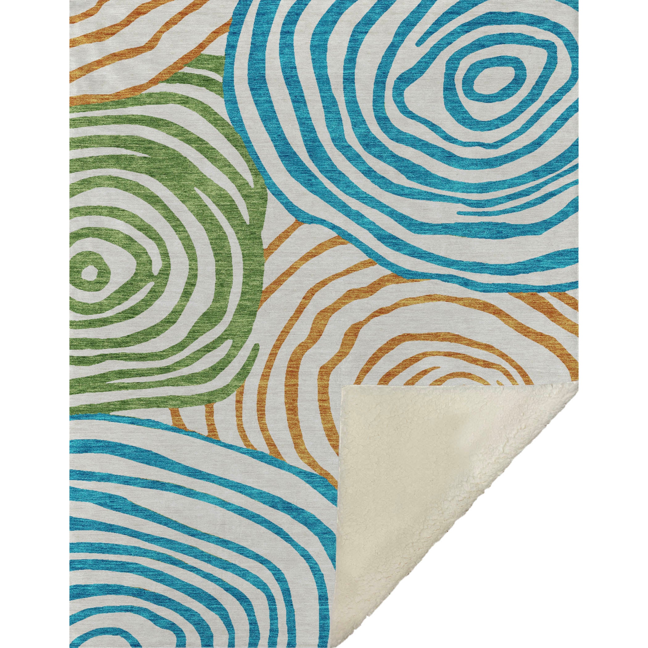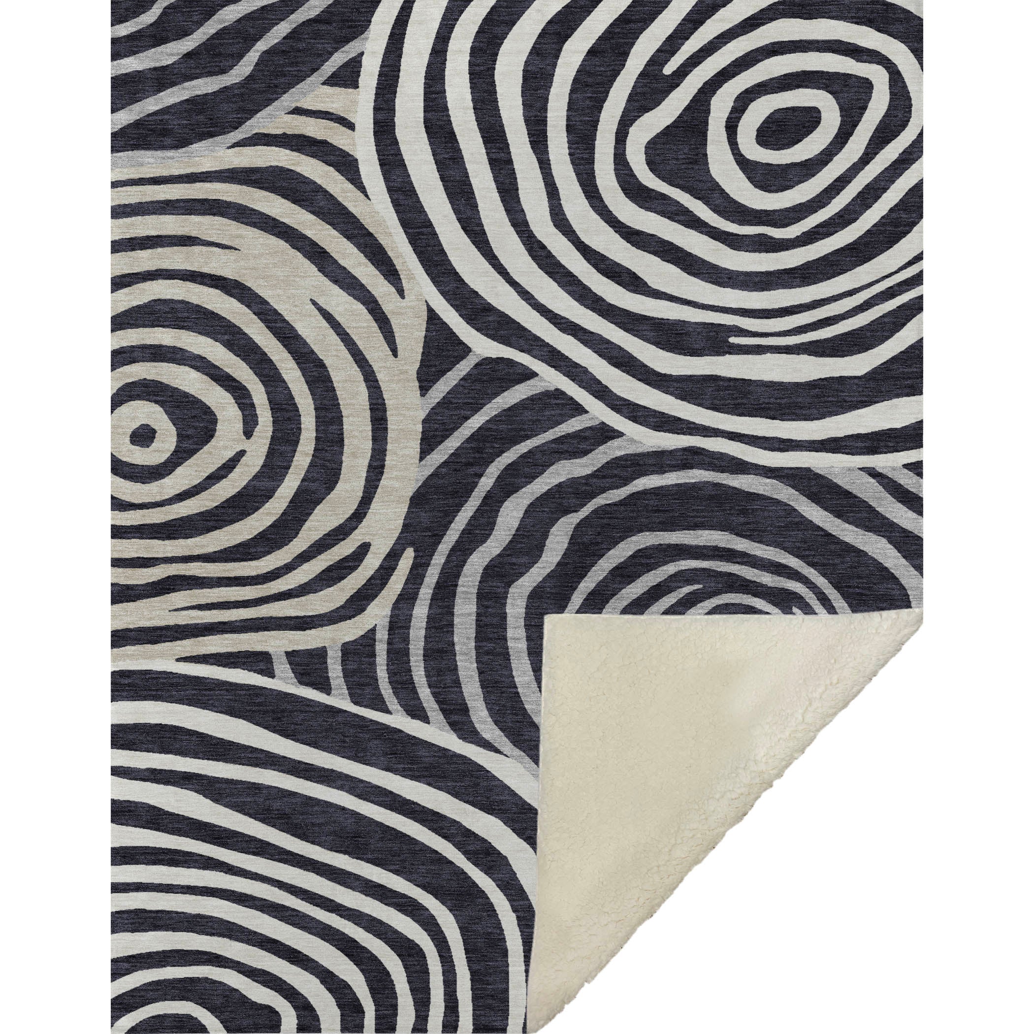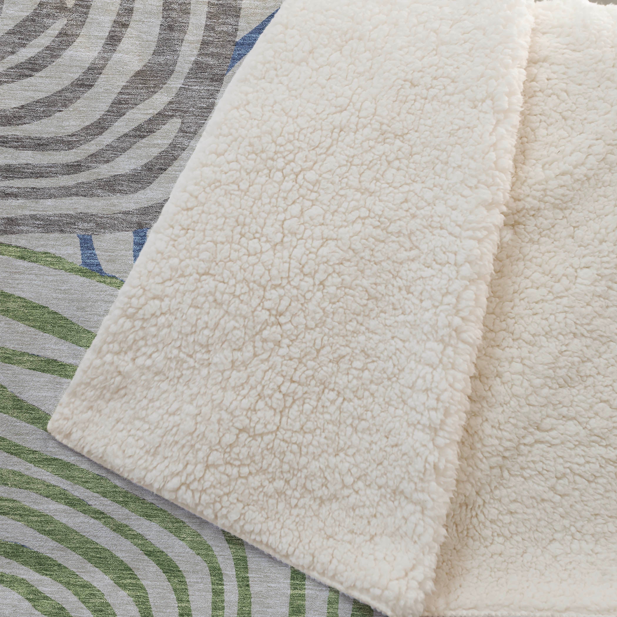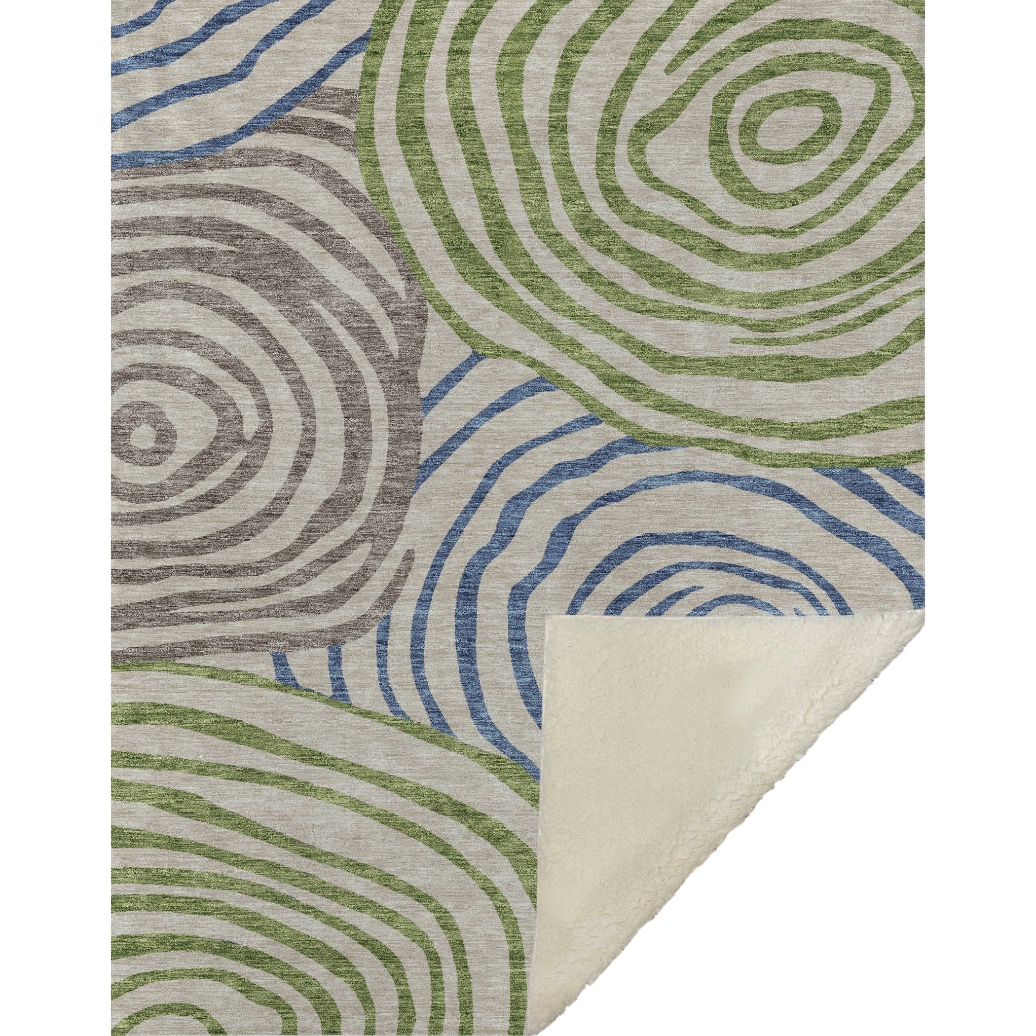 Immerse yourself in the beauty of free-form circles and swirls that define its transitional style, lending a contemporary vibe to any space. Measuring a generous 50" x 70", it offers a luxuriously soft touch front paired with a cozy sherpa backing, ensuring warmth and comfort. Crafted from fade-resistant polyester microfiber, it's suitable for use indoors and in covered outdoor areas, with the practicality of Premium Machine Washable care for effortless upkeep.