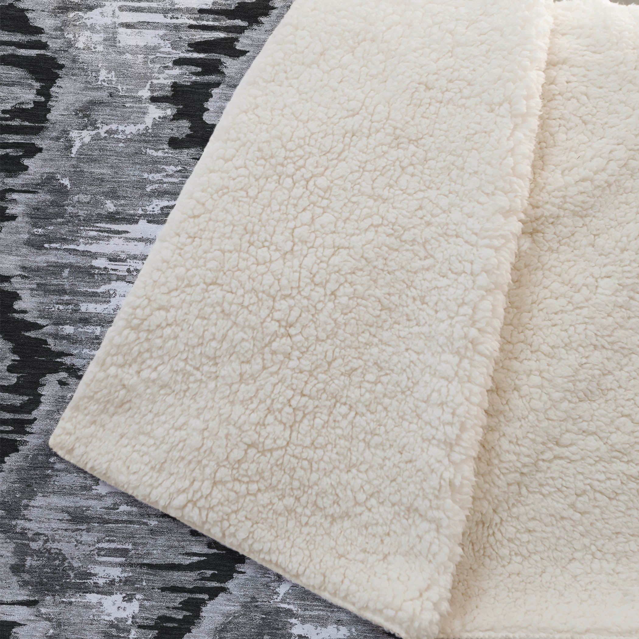 Embrace the transitional allure as diamonds cascade in brushed monotone hues, weaving visual intrigue into your space. The luxuriously soft-touch front pairs with a warm sherpa backing to offer a haven of comfort, while the oversized 50" x 70" dimensions provide generous coziness. Composed with fade-resistant polyester microfiber, it’s tailored for both indoor and covered outdoor enjoyment, and its Premium Machine Washable feature ensures stress-free care.