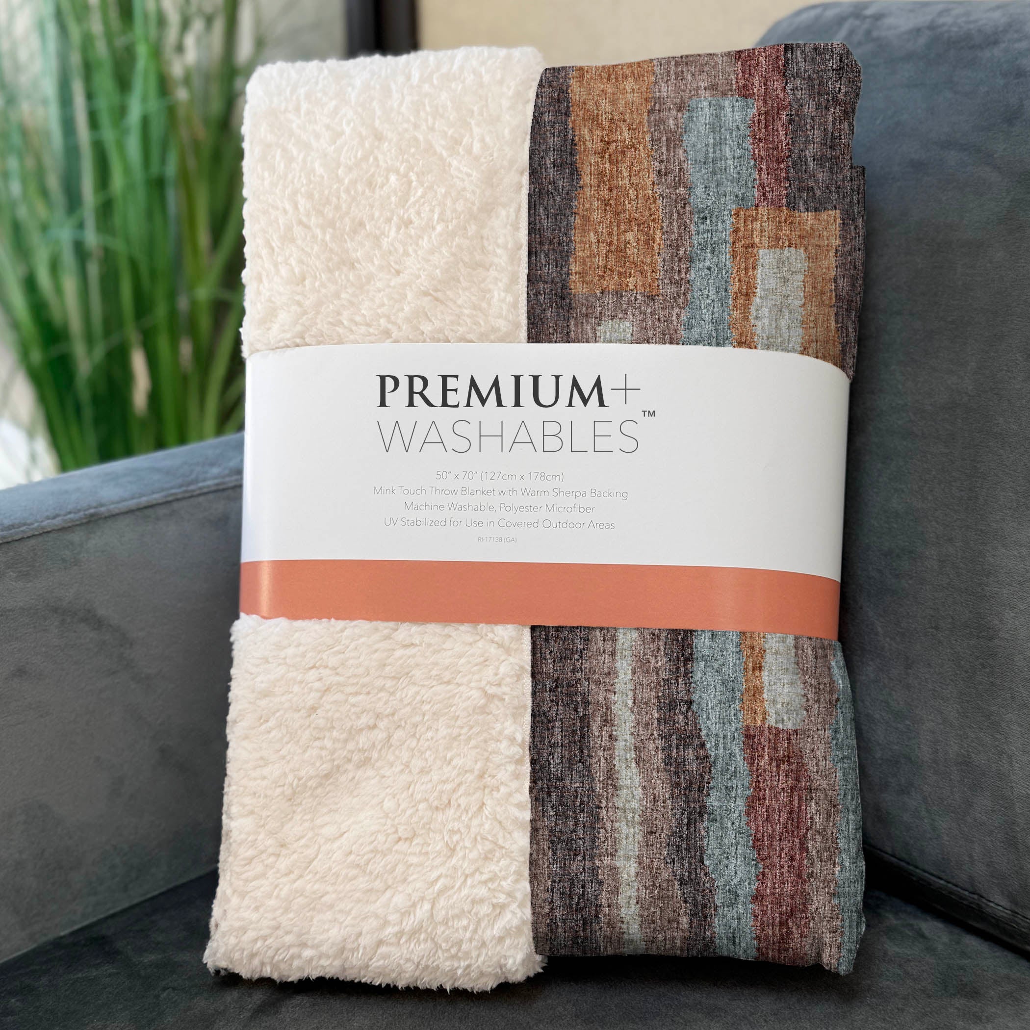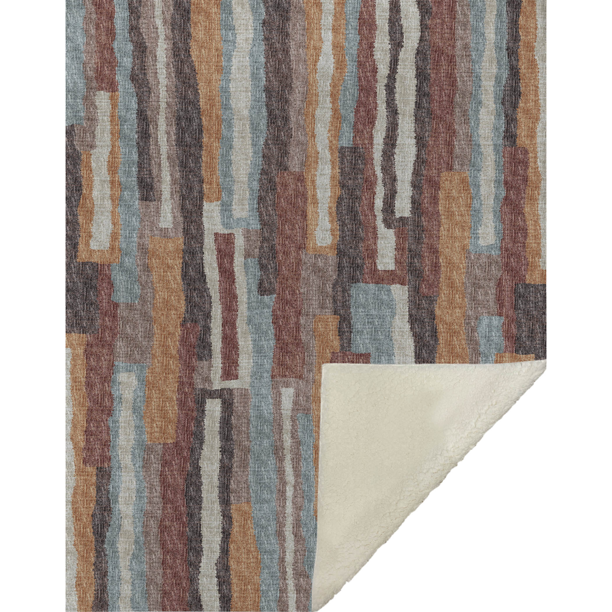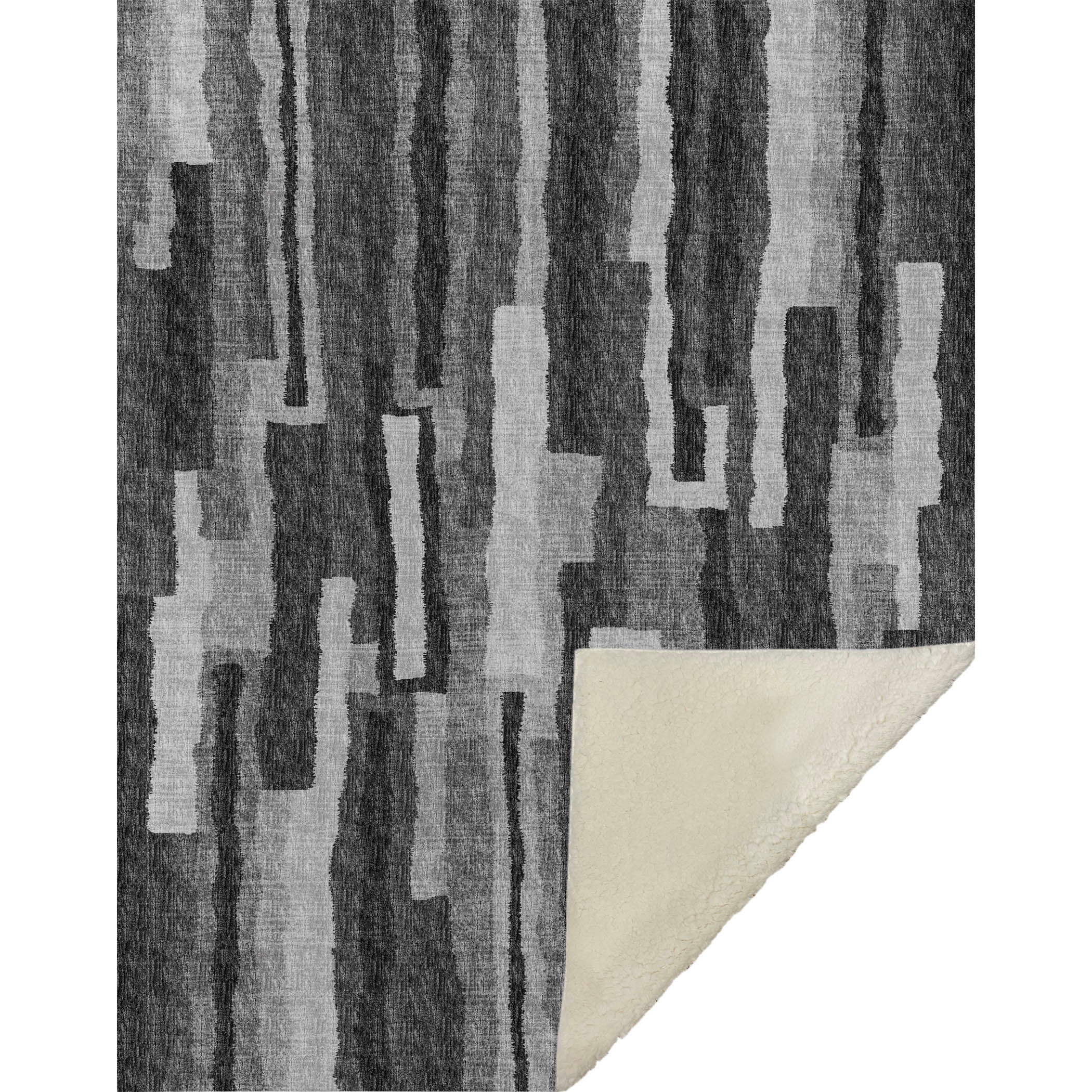 An artful play of vertical bars, each differing in size, dances across the surface, bringing a balance of spontaneity and charm to any space. The transitional style effortlessly adapts to both contemporary and classic interiors, ensuring it complements various decor themes. With an oversized 50" x 70" dimension, its luxuriously soft-touch front and warm sherpa backing guarantee unmatched comfort. Crafted from fade-resistant polyester microfiber, it's perfect for indoor and covered outdoor settings, and its machine-washable design ensures easy maintenance.