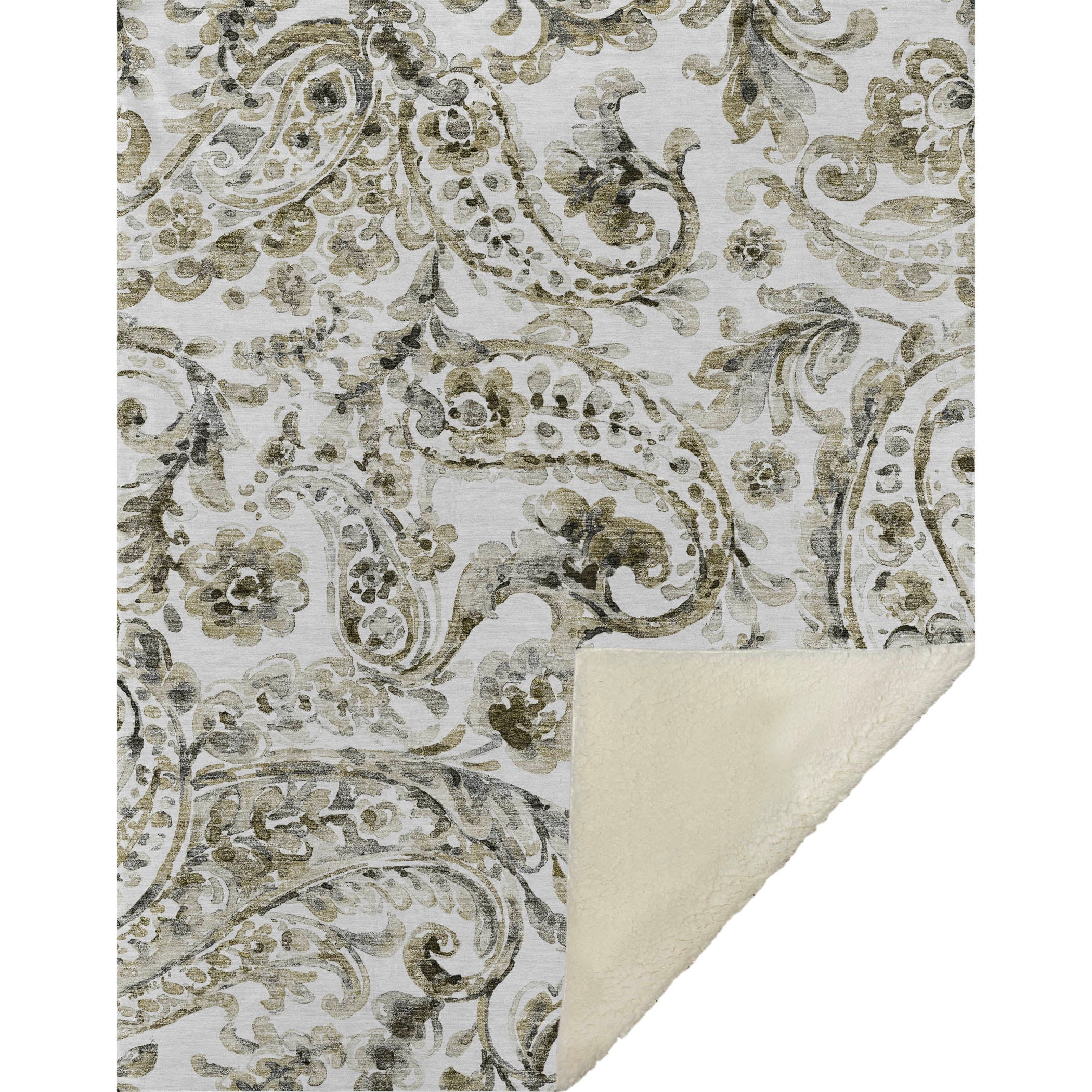 Immerse yourself in the charm of transitional style with flowing paisley motifs and floral accents. Oversized at 50" x 70", its delightful soft-touch front and warm sherpa backing envelop you in comfort. Crafted from fade-resistant polyester microfiber, it's perfect for indoor and covered outdoor settings, while its Premium Machine Washable nature ensures effortless care.
