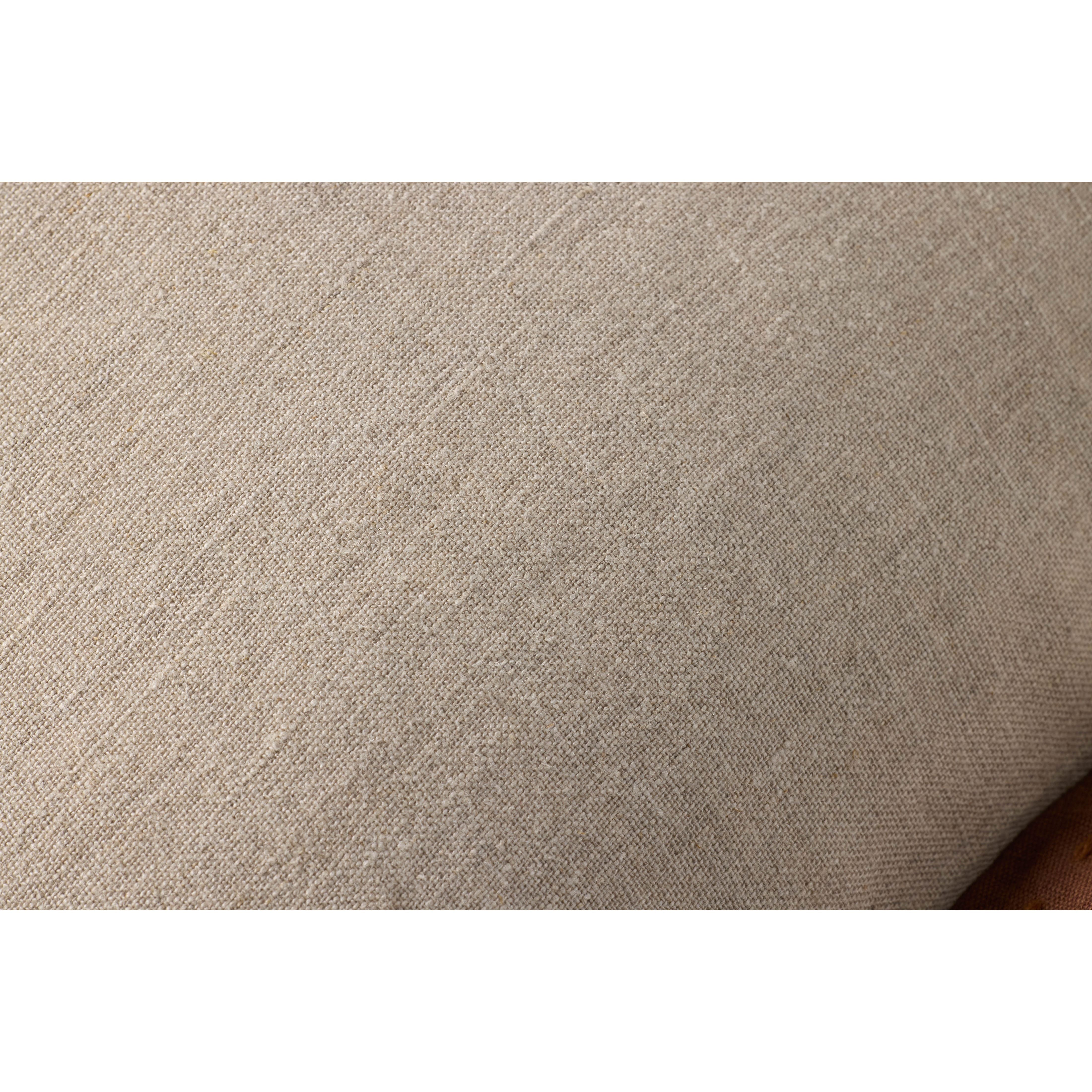 This grey linen throw pillow with rustic brown cotton flange edges adds an understated pop of color to living rooms, bedrooms, and more. The 18” x 18” square pillow is woven in India of linen and cotton.