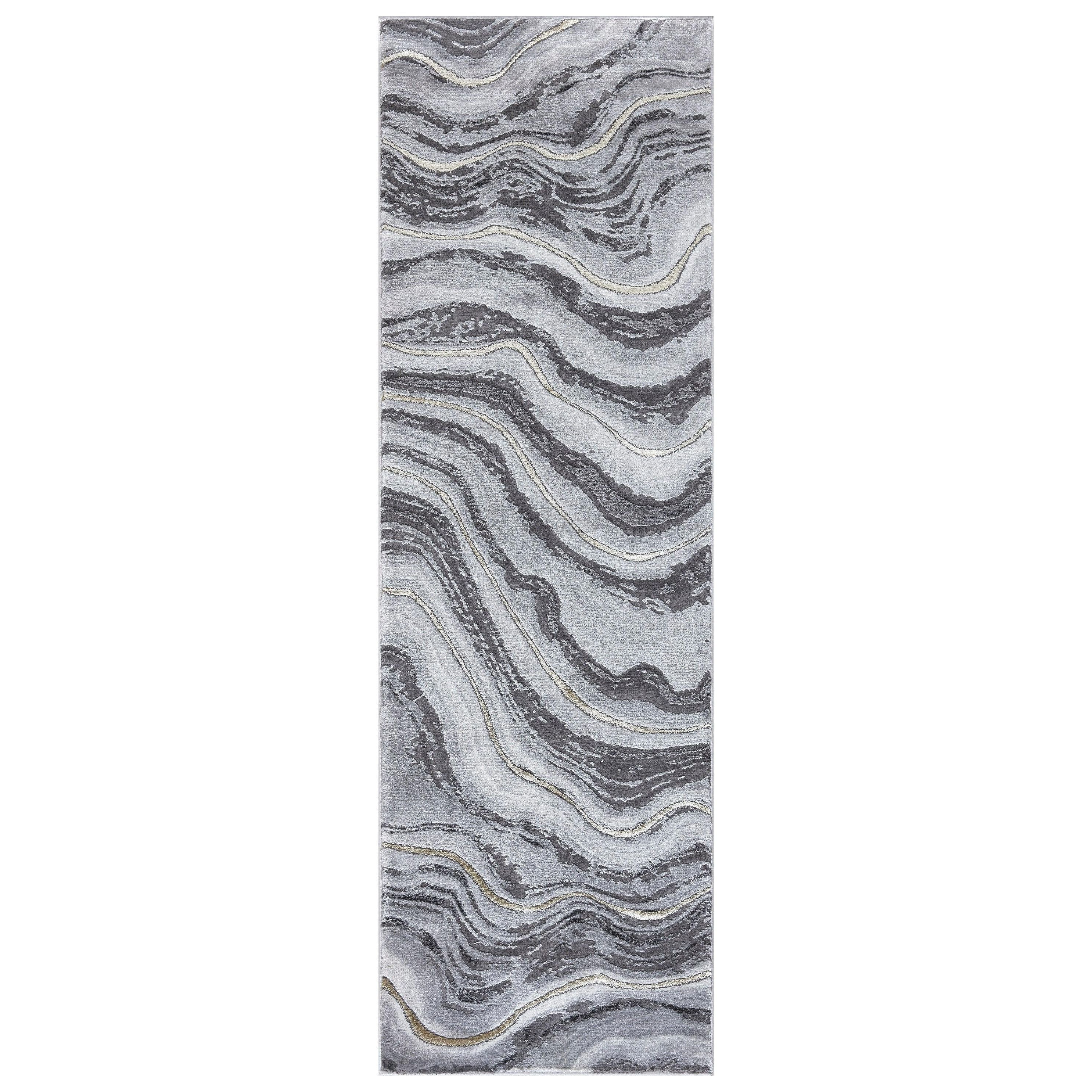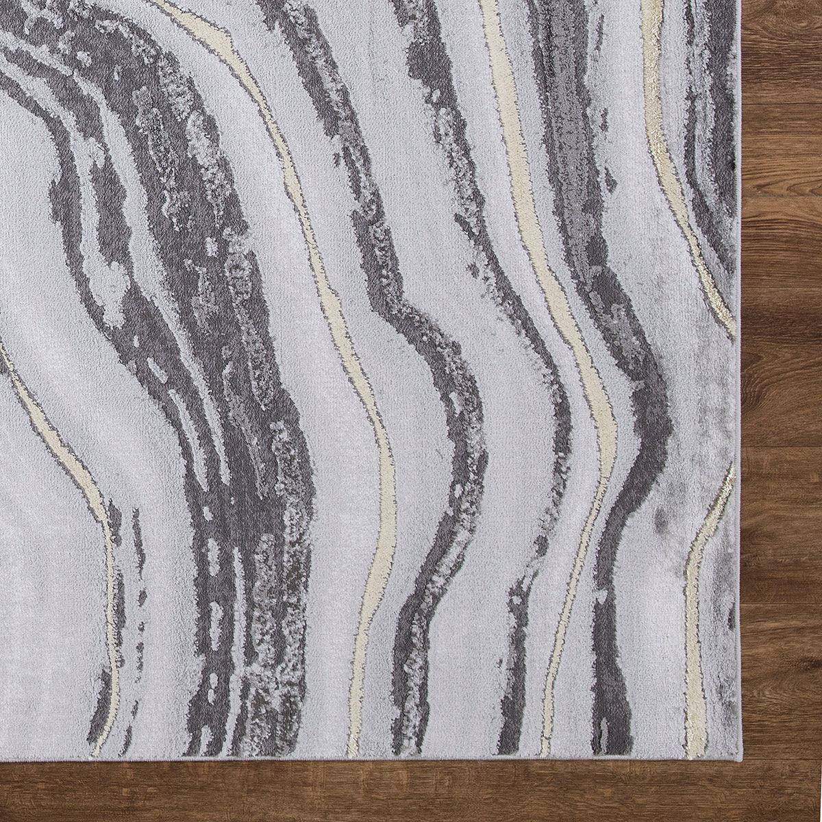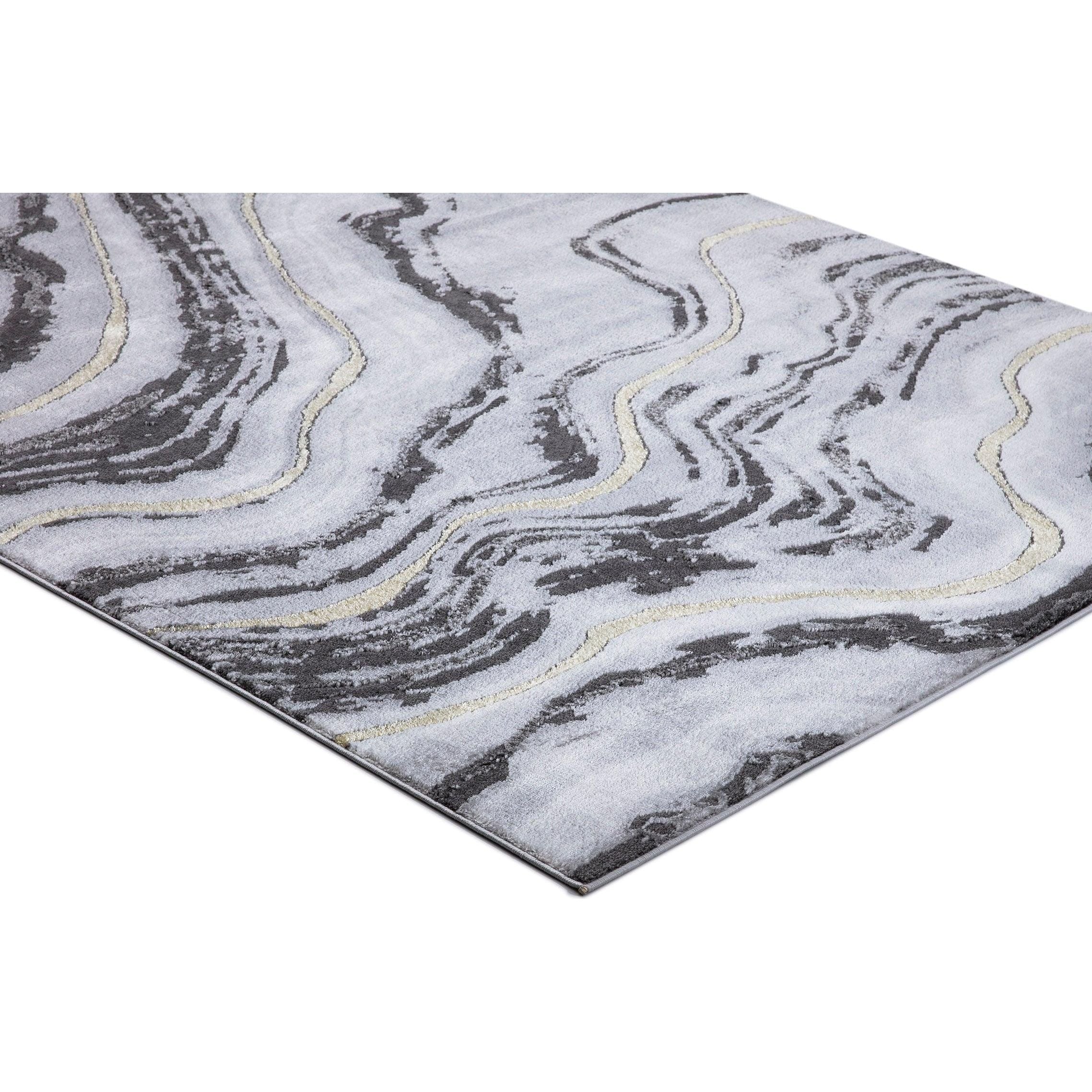 Brighton Marble Gray area rug - a perfect blend of style and durability. Crafted with stain-resistant fabrics and long-lasting materials, this rug is designed to maintain its pristine condition over time. The elegant marble-inspired designs and high/low textured pile create a sophisticated look for any room or office space.