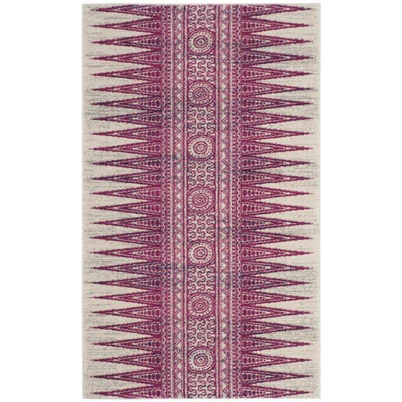 stunning Evoke EVK226F Ivory Fuchsia rug, a perfect blend of style and comfort for your home decor needs. Crafted by Safavieh, this contemporary rug features a captivating mix of patterns and colors to elevate any room's aesthetic.