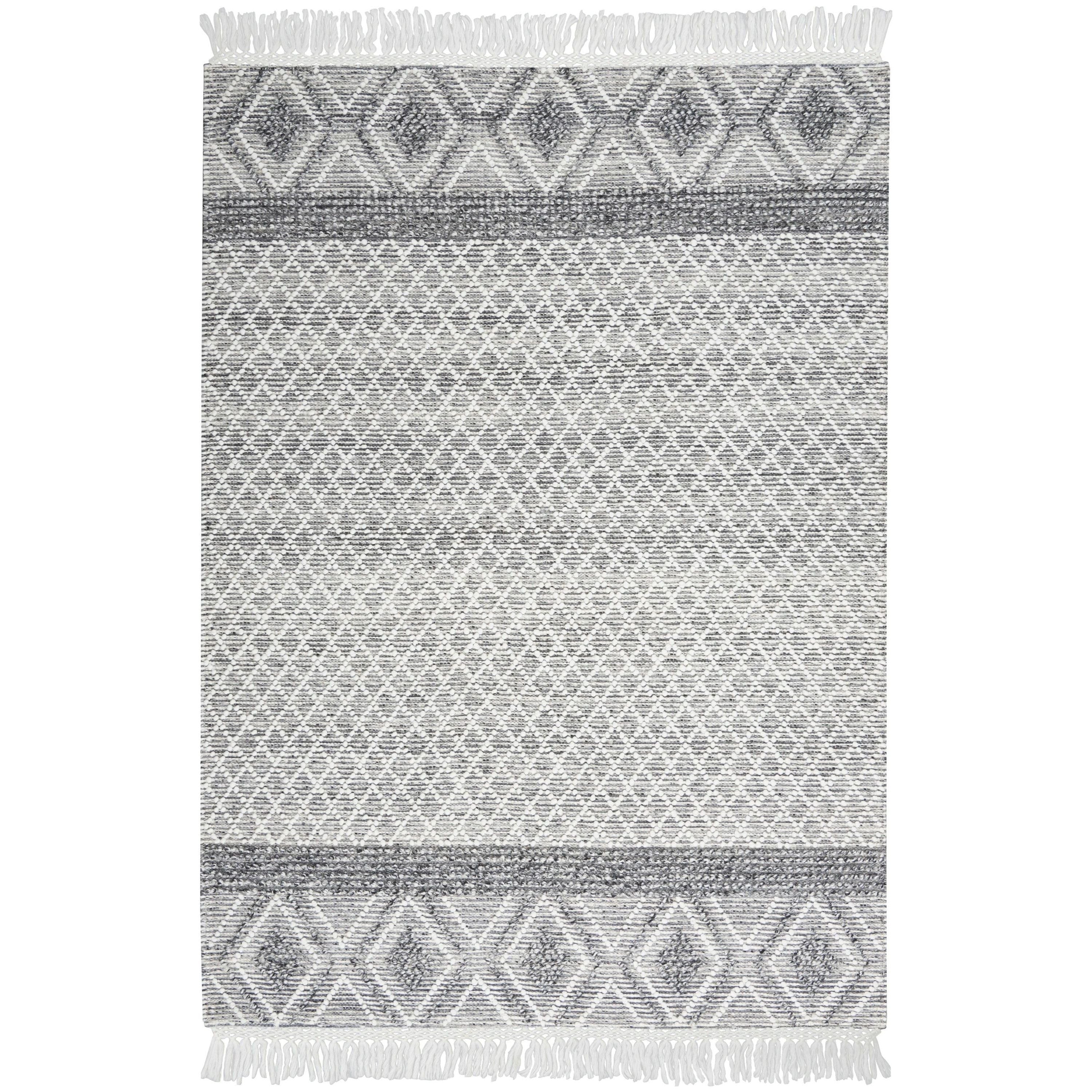 Elevate your home decor with the Nicole Curtis Machine Washable Series 3 SR303 Grey Ivory rug collection. Featuring chic geometric patterns and a versatile neutral color palette, these rugs are a perfect blend of style and functionality. The intricate textured accents and fringe edges add a touch of global-inspired charm to any room.
