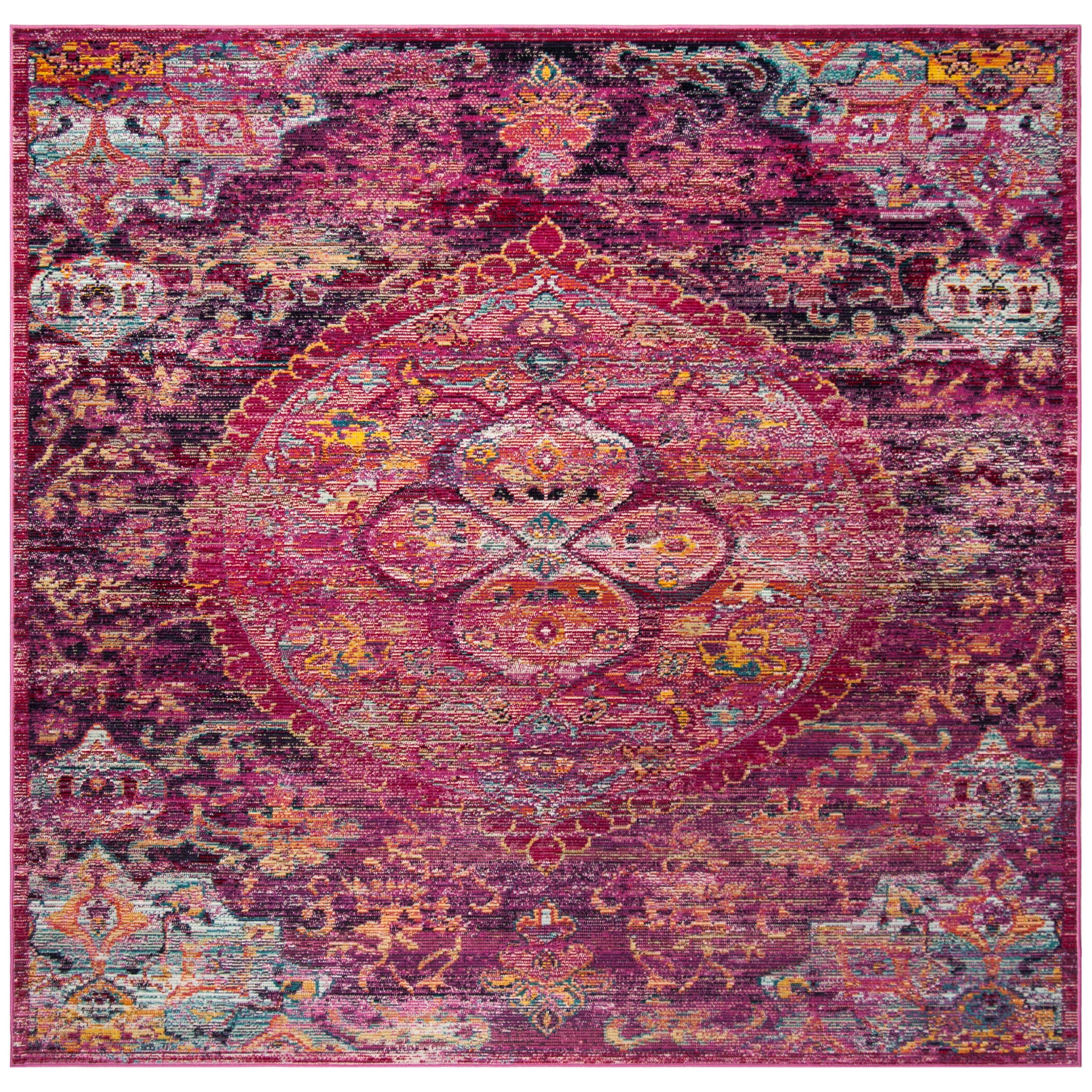 Elevate your living space with the Crystal CRS512S Fuchsia Purple rug from SAFAVIEH's Crystal Collection. This collection blends traditional Oriental motifs with contemporary abstract designs to bring a touch of boho chic to your home decor. Crafted from durable polypropylene fibers, these rugs are perfect for high-traffic areas, offering both style and functionality. With a thickness of approximately 0.25 inches, this rug adds texture and warmth to any room.