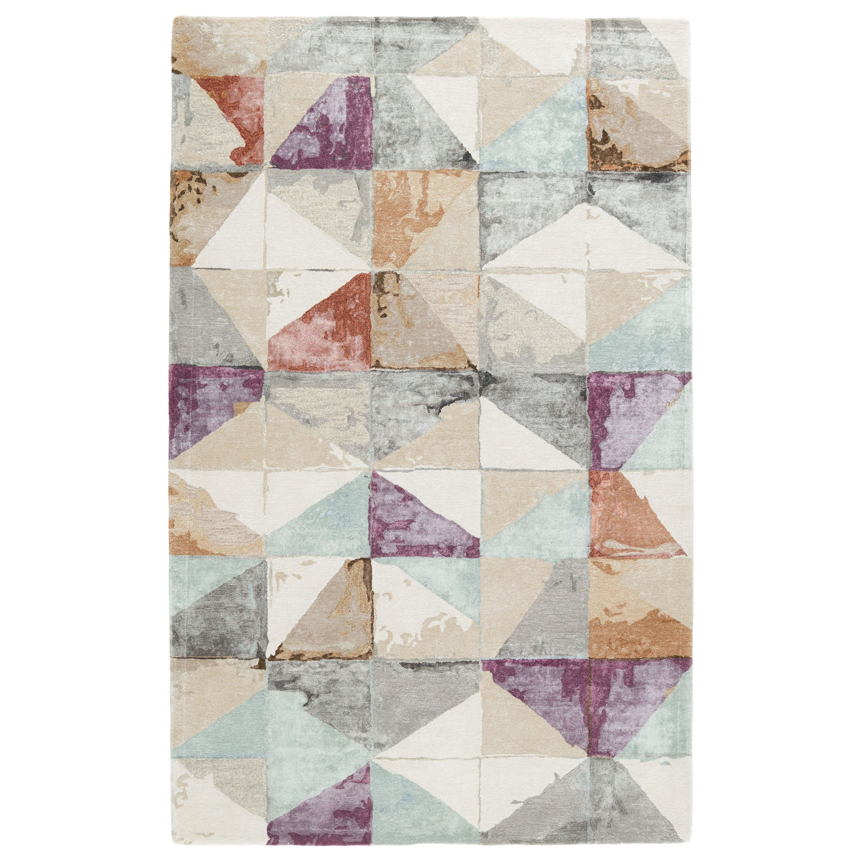 Genesis GES58 Ruban rug, a delightful addition to any modern living space. The Genesis collection offers a range of hand-tufted rugs that are both whimsical and sophisticated. The Ruban rug stands out with its striking geometric pattern, harmoniously combining neutral and vibrant colors. Featuring shades of gray, ivory, beige, gold, blue, purple, and clay, this watercolor-inspired design adds a unique touch to your decor.