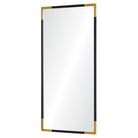 exquisite Osmond Mirror, a stunning addition to elevate any space. With its lavish proportions and luxurious finishes, this modern wall mirror is sure to capture admiration. The thin black edges and gilded gold leaf corners add a touch of glamour to the natural wood frame, creating a sophisticated look.