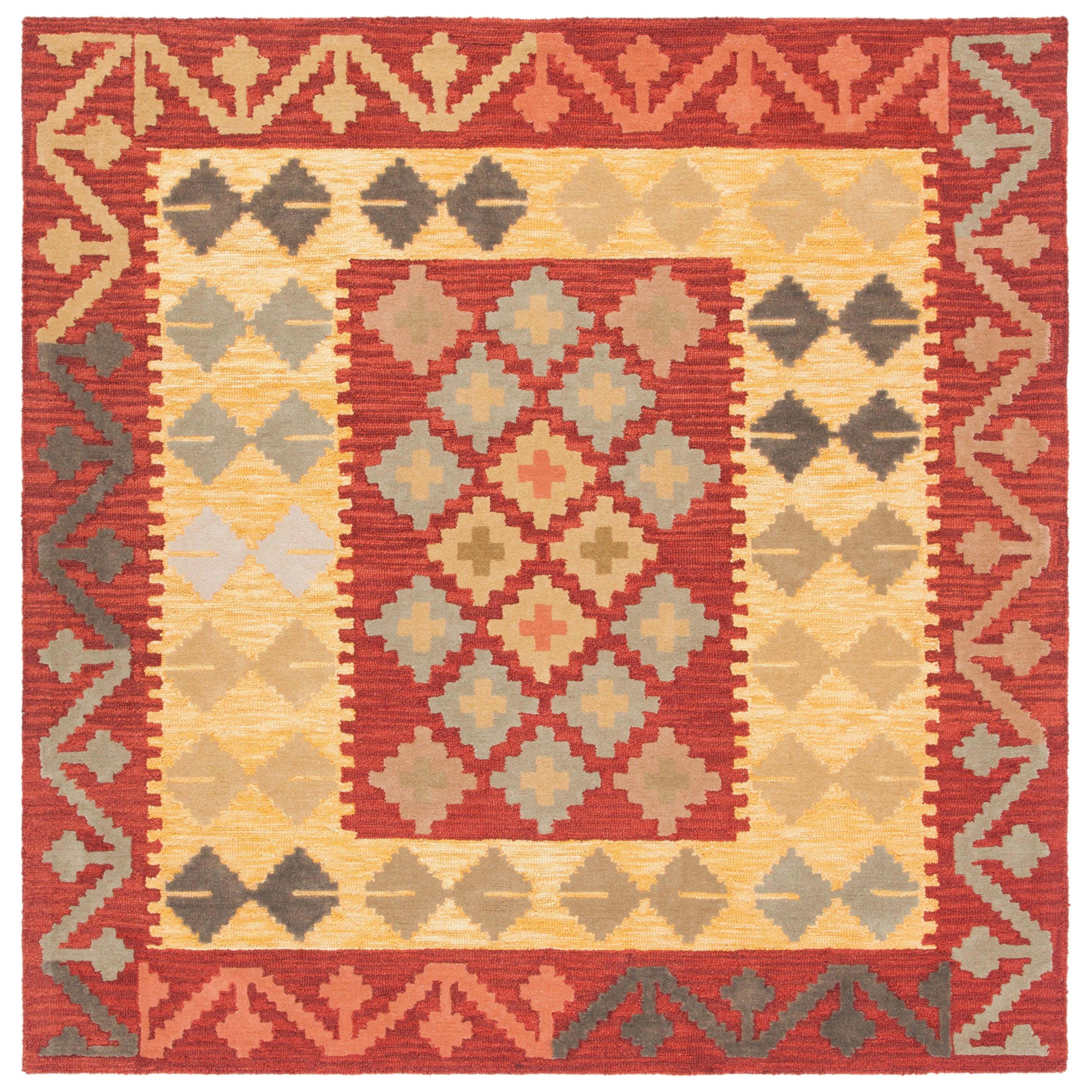 Aspen APN403Q, a stunning addition to your home decor inspired by the rustic-chic trend. The Aspen Collection beautifully blends tribal art motifs with a modern color palette, creating a simple yet expressive design that adds a touch of elegance to any room. Crafted from pure wool in a low loop pile, these rugs offer both style and comfort underfoot, making them perfect for casual yet classy settings. With an approximate thickness of 0.5 inches, the Aspen rug is sure to enhance your living space.