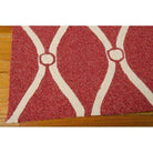 exquisite Portico POR02 Red carpet, featuring a timeless latticework pattern that exudes elegance and sophistication. Crafted with Nourison's advanced technology, this broadloom showcases a stunning open grid design in a neutral tone that beautifully complements its richly pigmented colors. The dense tufted pile not only adds plushness but also comes with UV protection to preserve its vibrant hues, ensuring long-lasting beauty for your space. Made from 100% polyester pile on a 70% poly/30% cotton backing, this carpet is both luxurious and durable. Power-loomed in China, it boasts a tufted loop texture that enhances its visual appeal while providing UV-resistant properties.