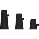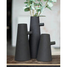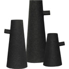 Combining organic inspiration with modern design, this set of three vases brings a designer quality to the home. Made of powder-coated iron with a texture matte black finish, the pieces feel timeless and chic. While the vases are similar in width, each one has a different height.