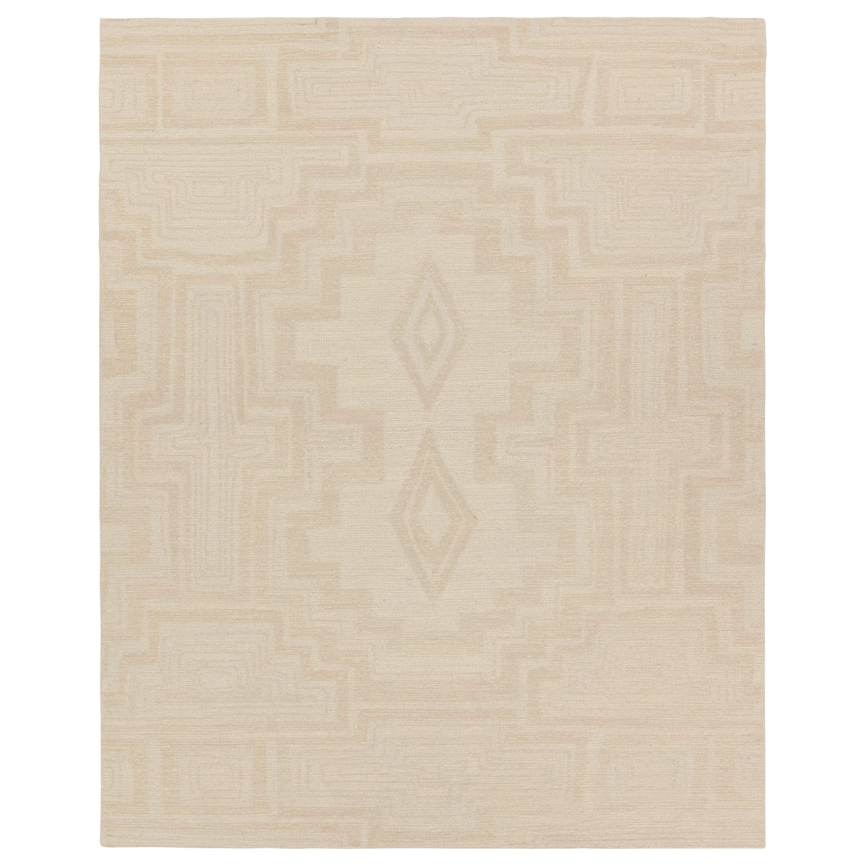 Cardamom COM16 Aterian, a stunning addition to your home decor. This hand-tufted collection features vibrant jewel tones and intricate Turkish patterns that mimic antique designs with a modern twist. The Aterian rug stands out with its open medallion and geometric motifs in a soothing light gray and cream color palette.
