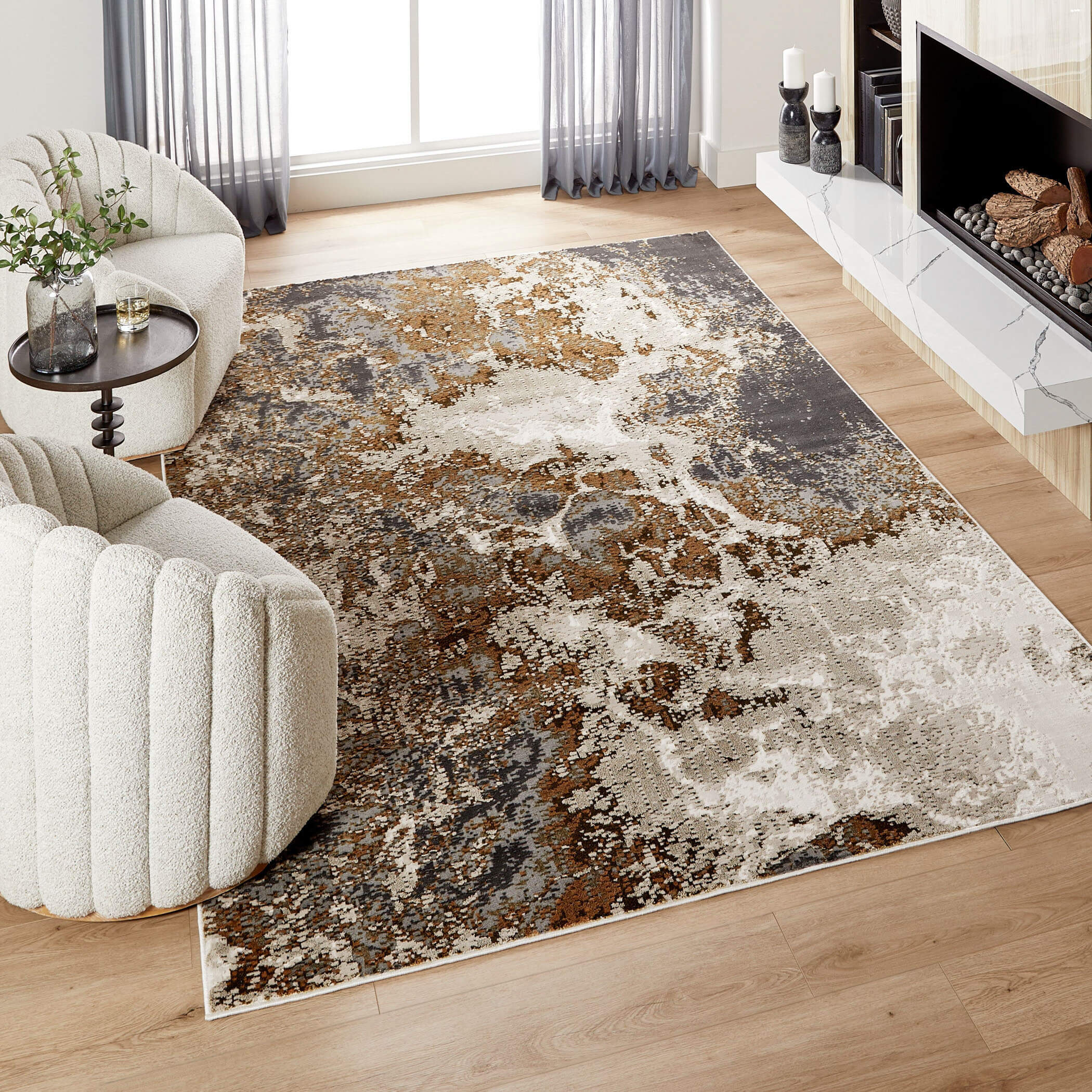 The Artema collection combines modern designs with textural craftsmanship. They are ideal for any high-traffic indoor rooms. These gold-marbled rugs, made from polypropylene, polyester, and soft materials, seamlessly fit into pet/kid-friendly spaces. Mildew-resistant and stain-resistant, the Artema collection is also durable, power-loomed, and eco-friendly.