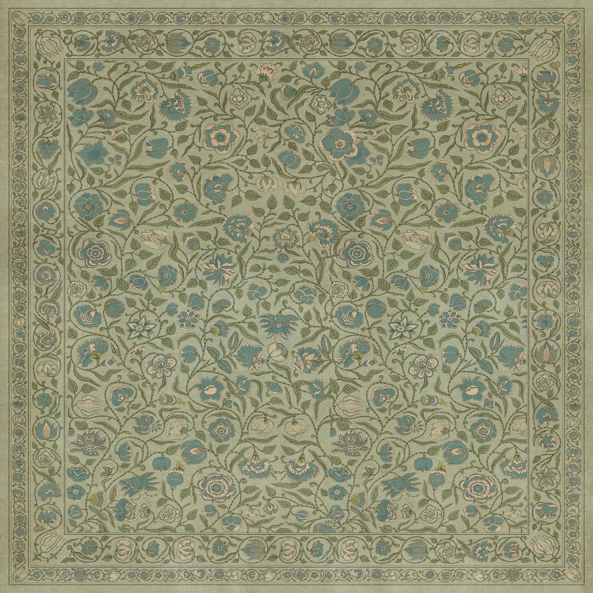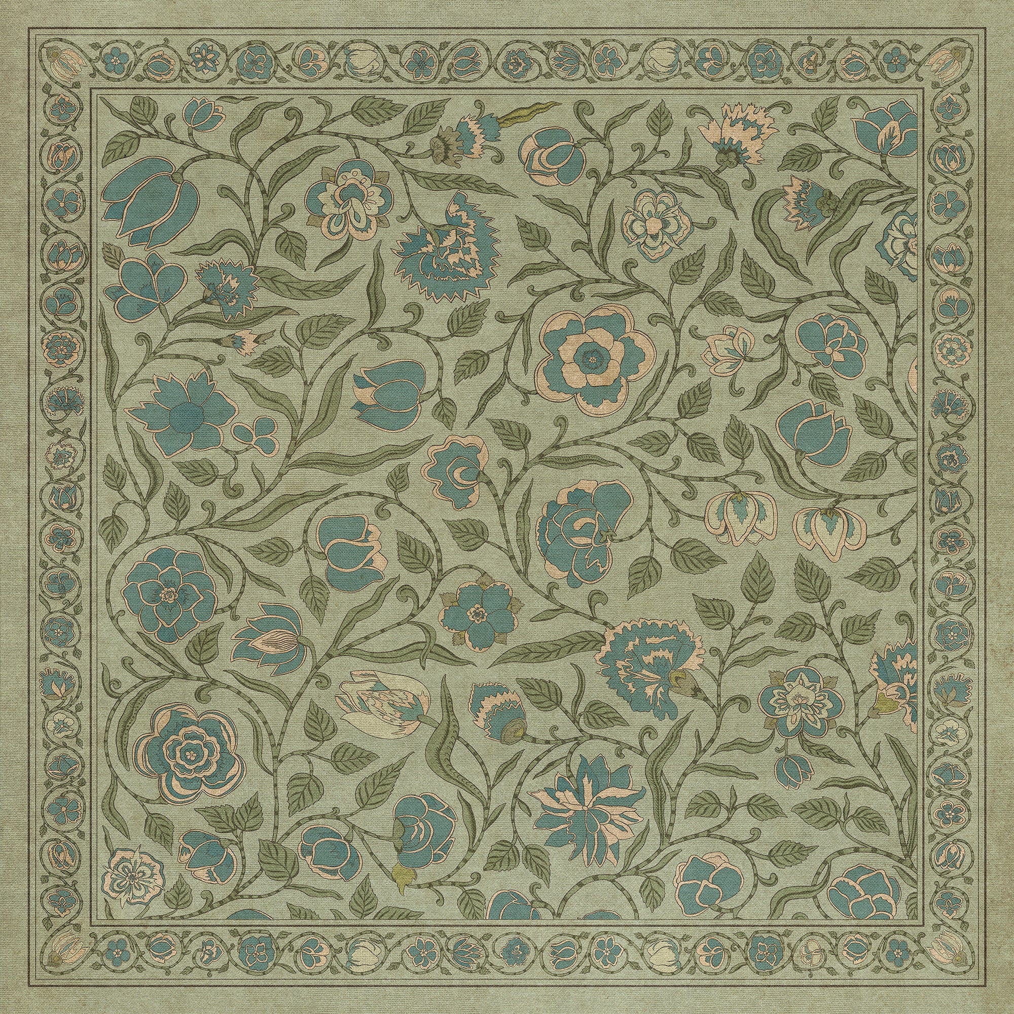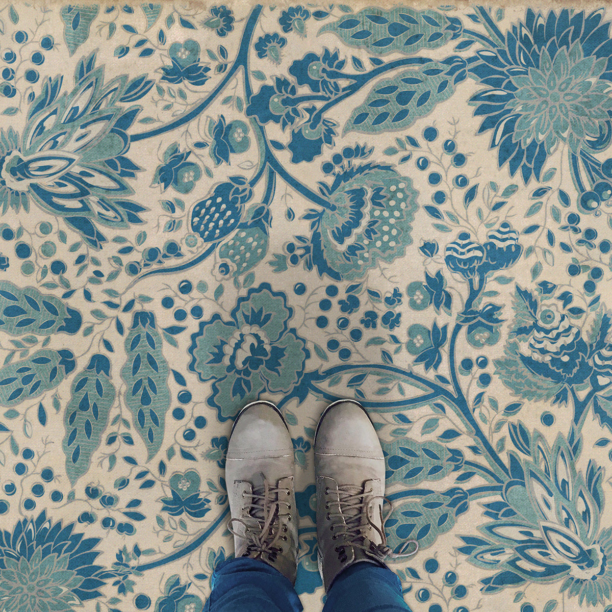 Vintage Vinyl Floorcloth Mat (Williamsburg - Antique Floral - A Chilly Peace)