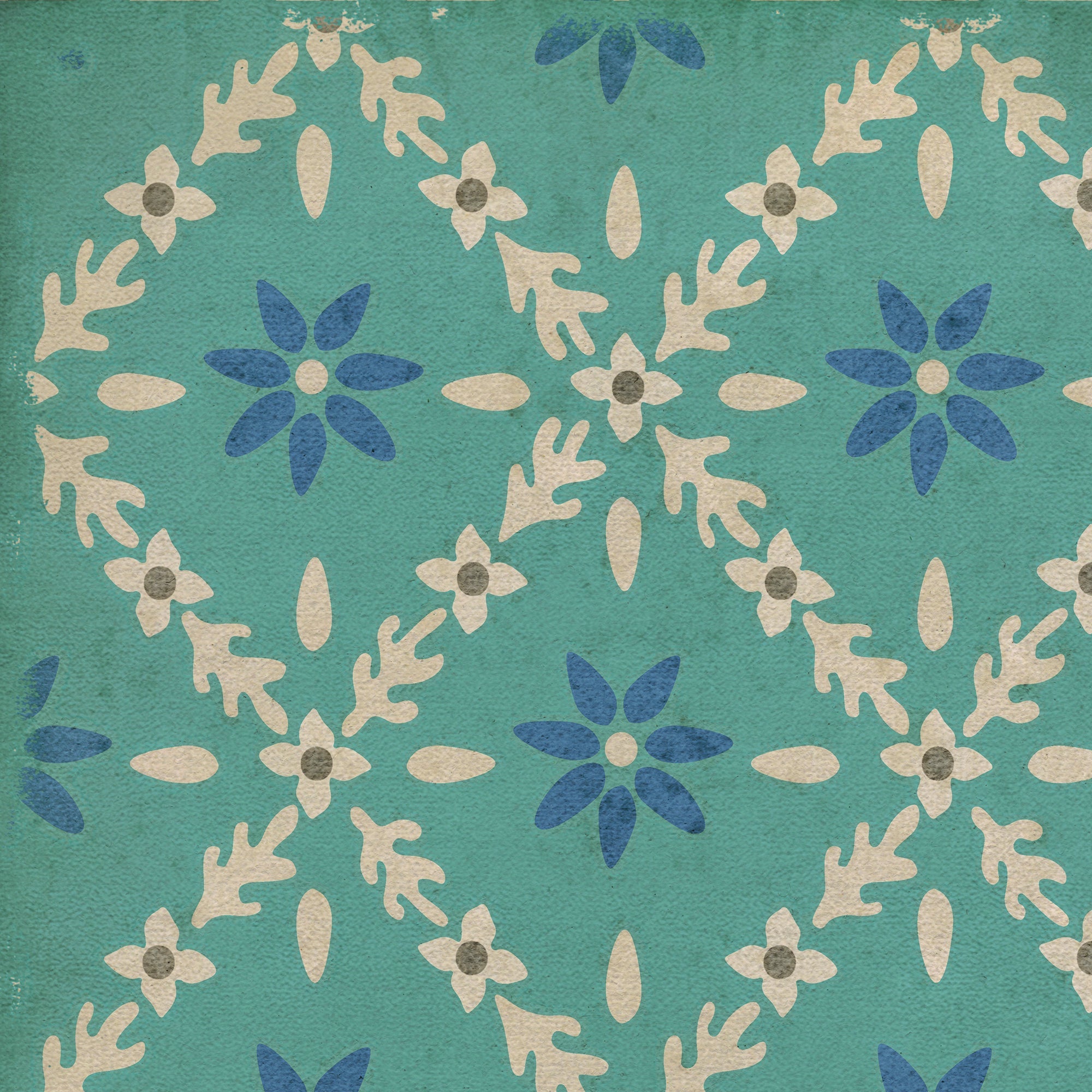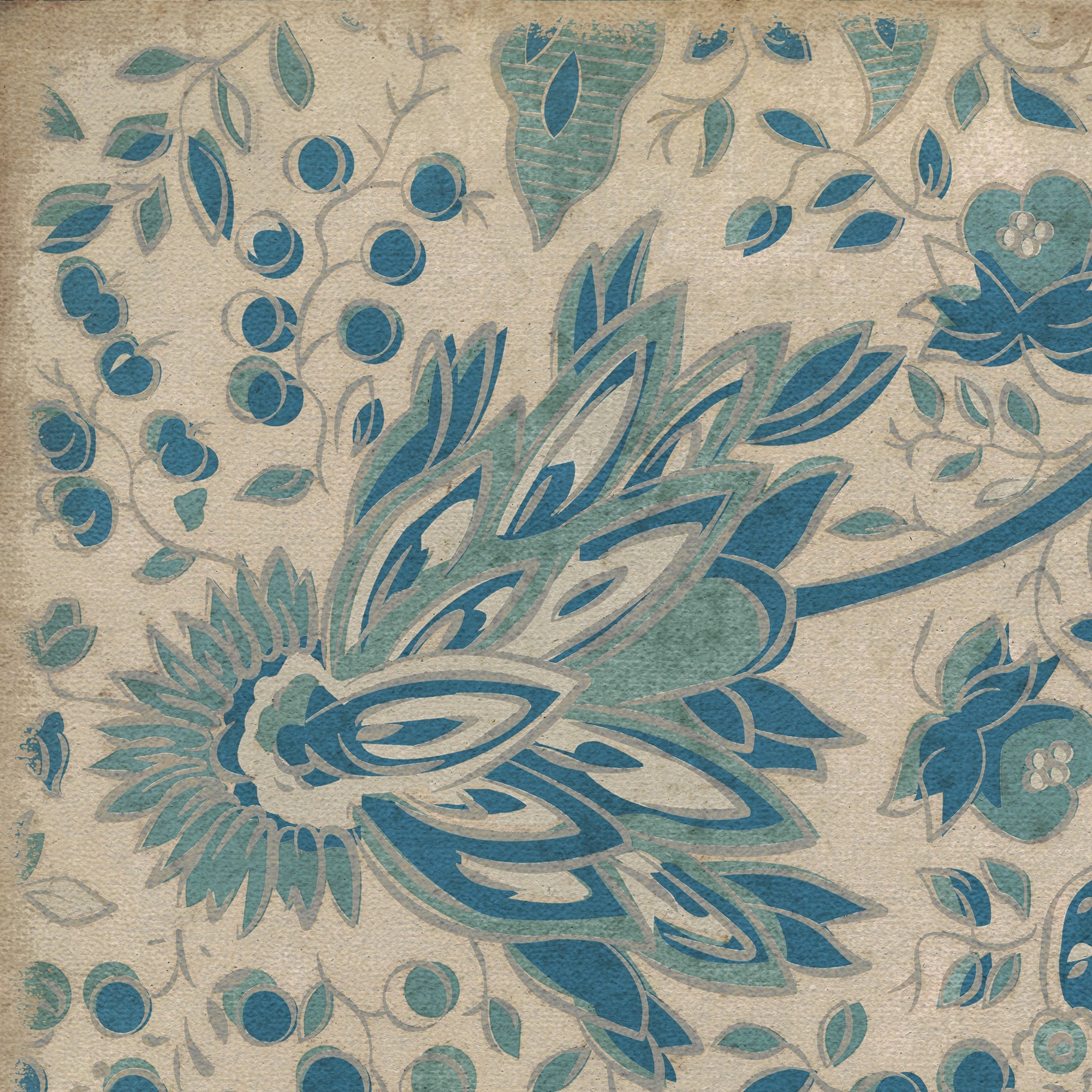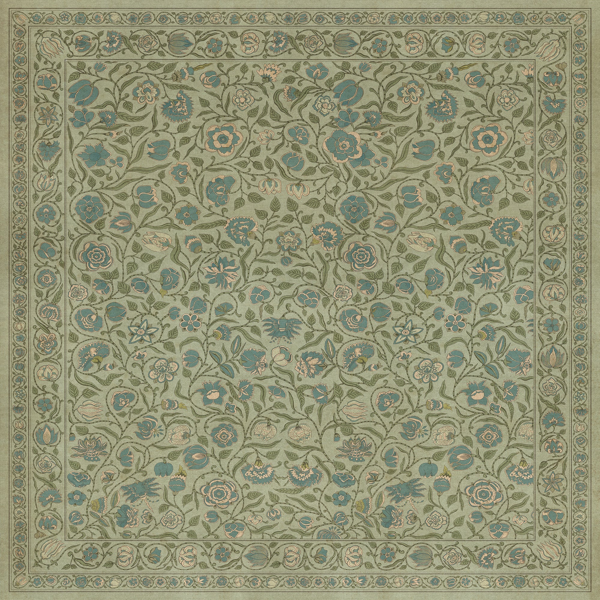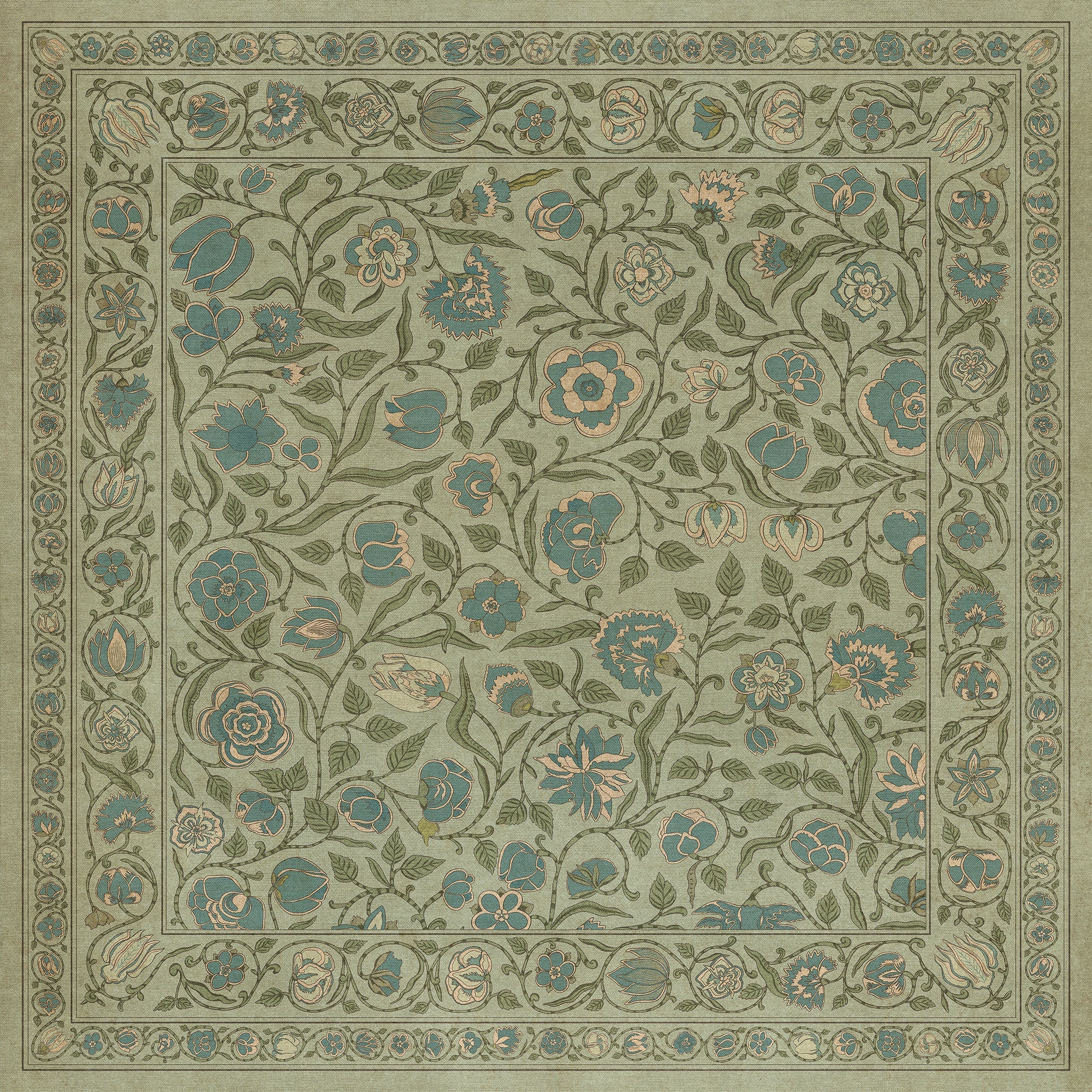 Vintage Vinyl Floorcloth Mat (Williamsburg - Antique Floral - A Chilly Peace)