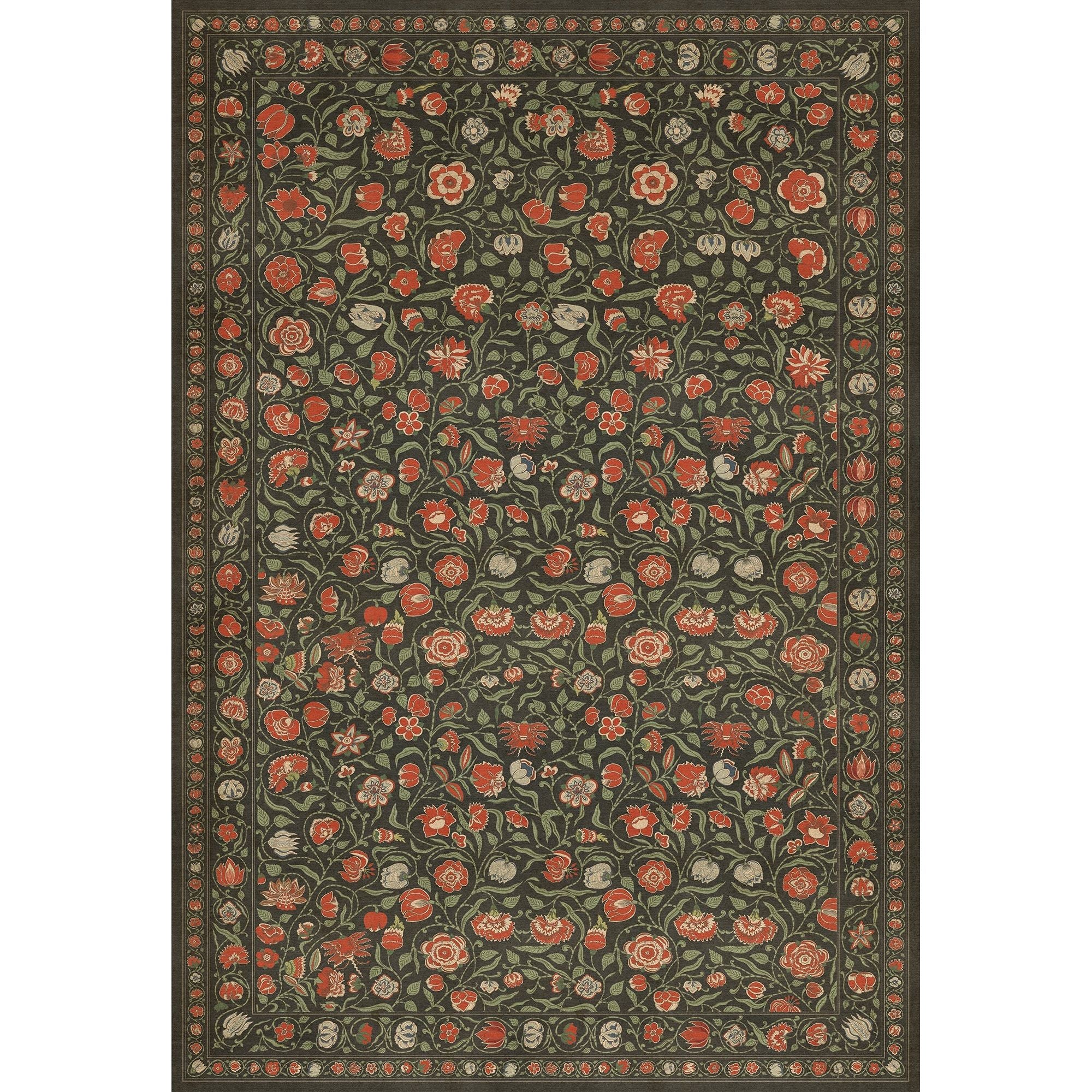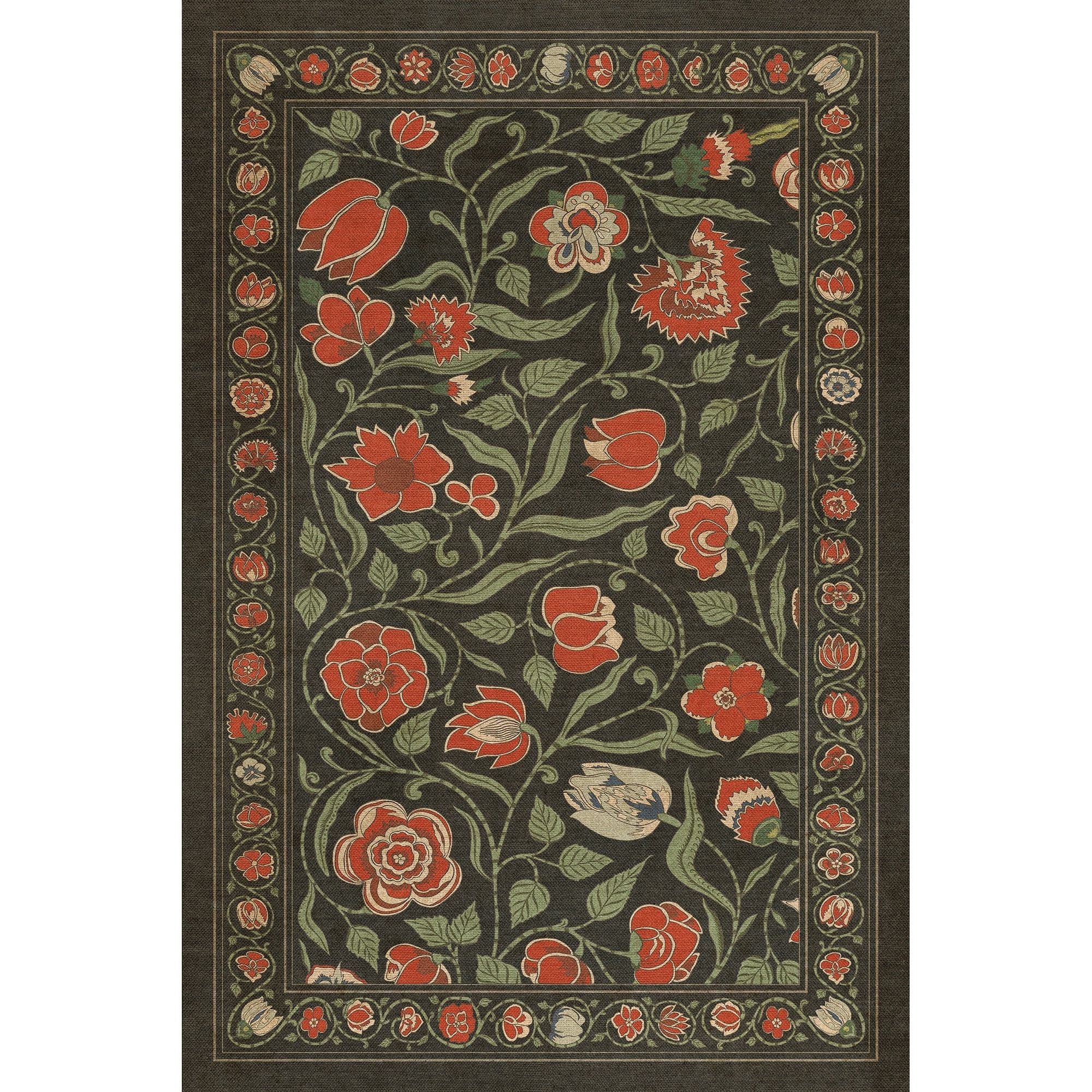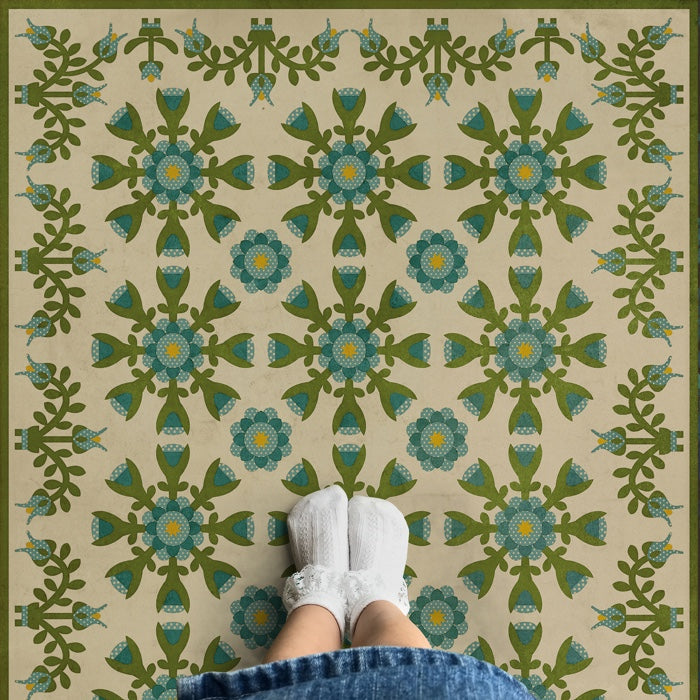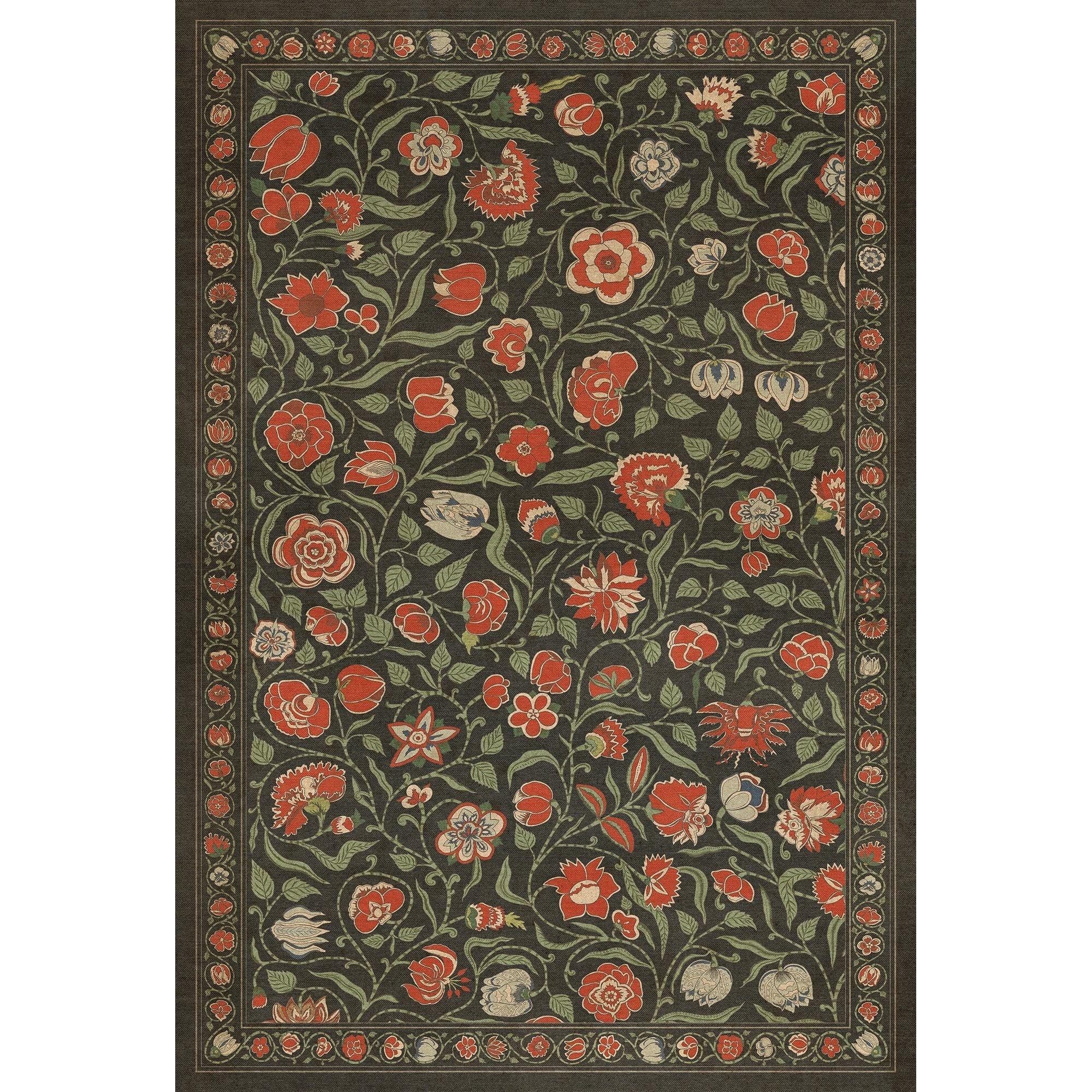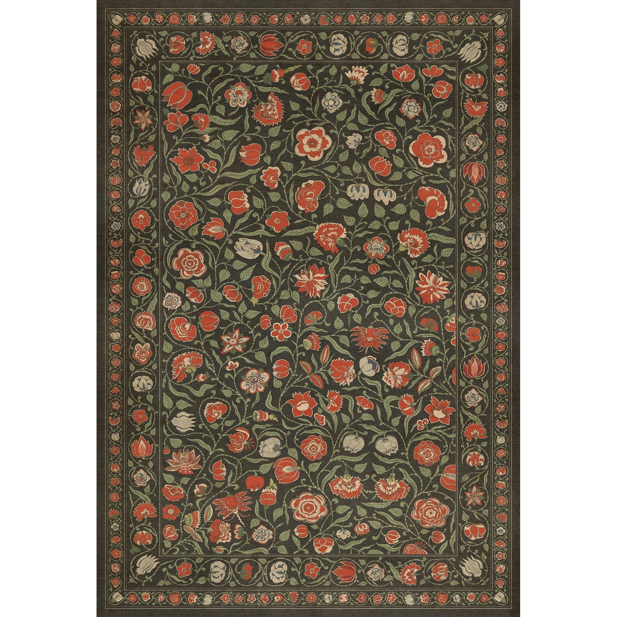 Vintage Vinyl Floorcloth Mat (Williamsburg - Antique Floral - A Solemn Soul)