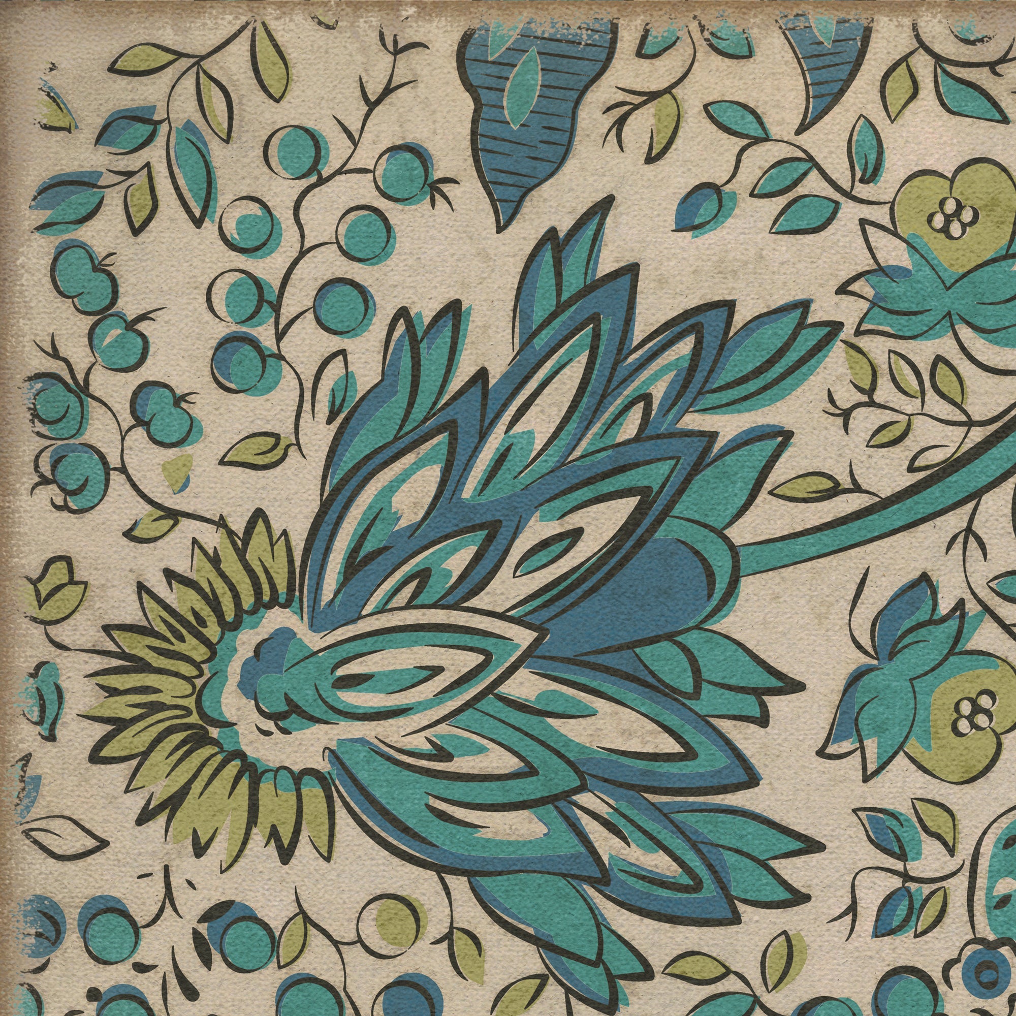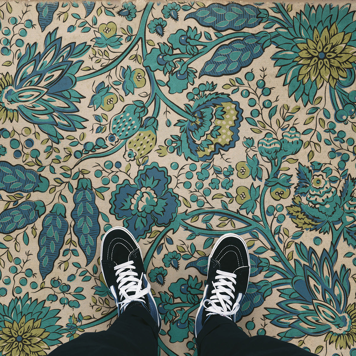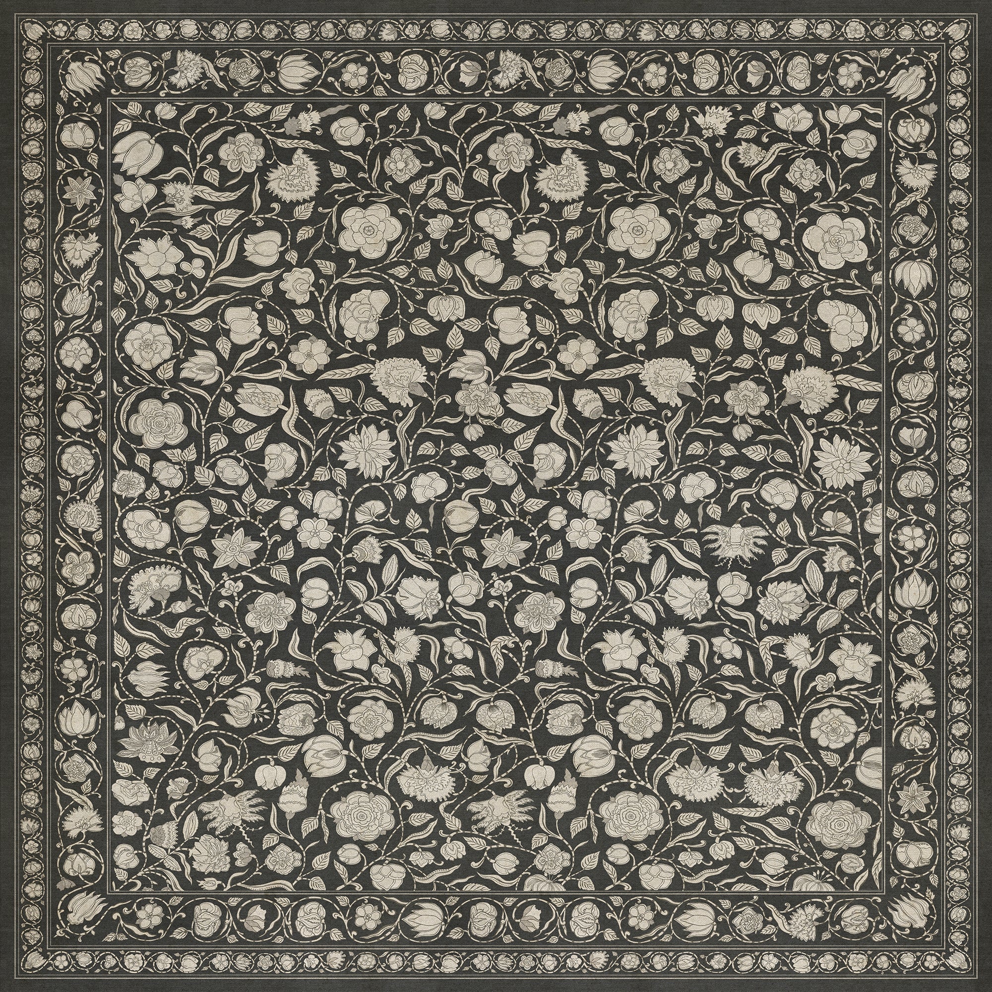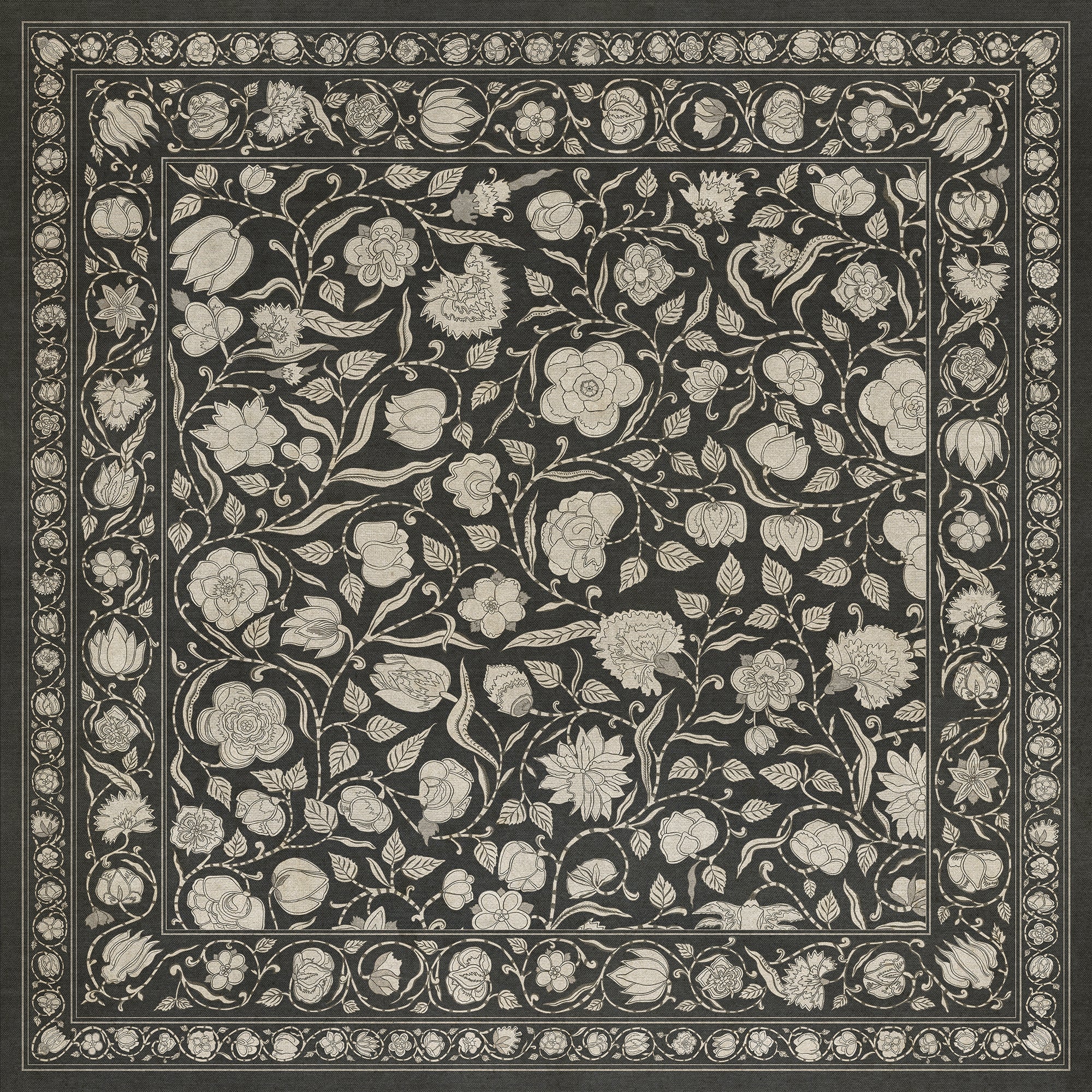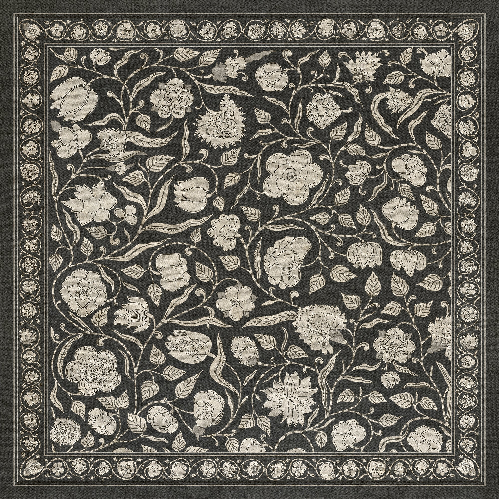 Vintage Vinyl Floorcloth Mat (Williamsburg - Antique Floral - A Solemn Soul)