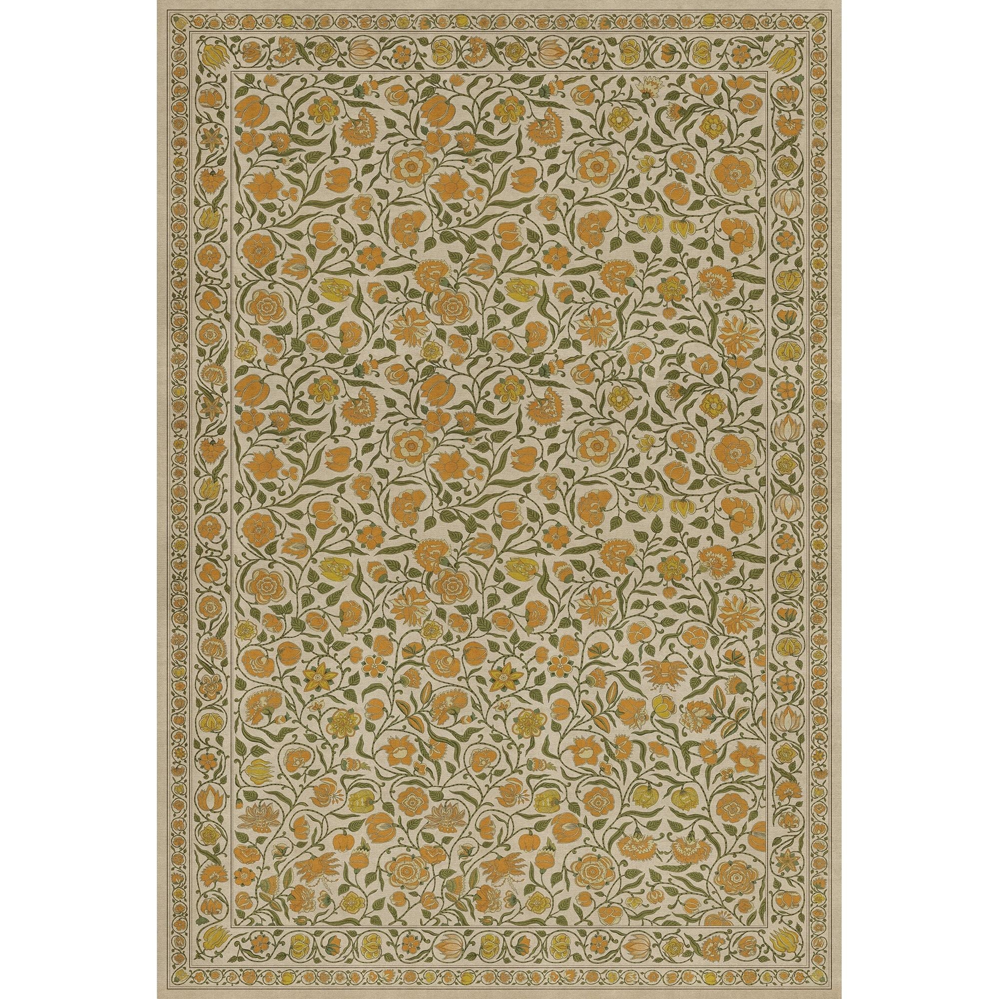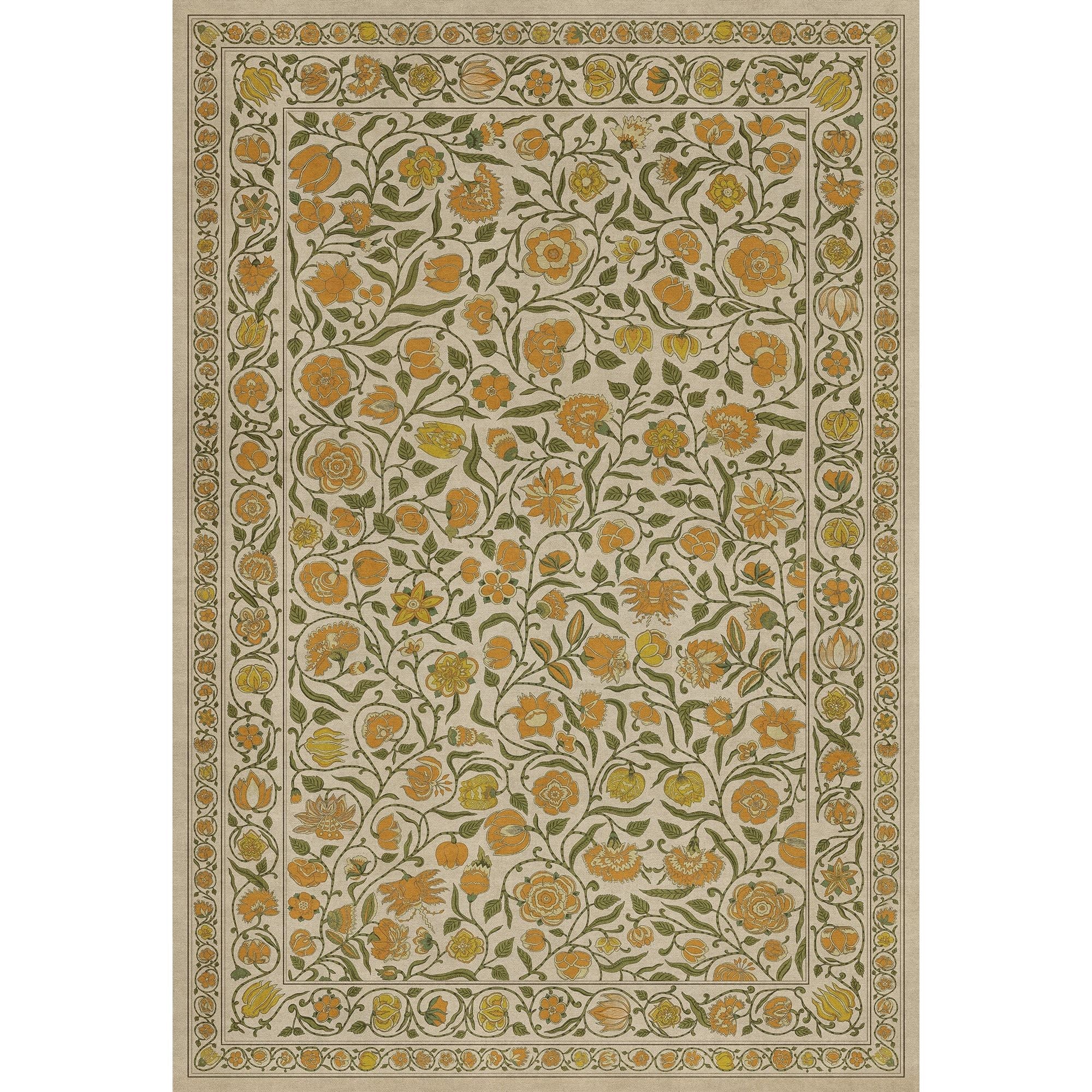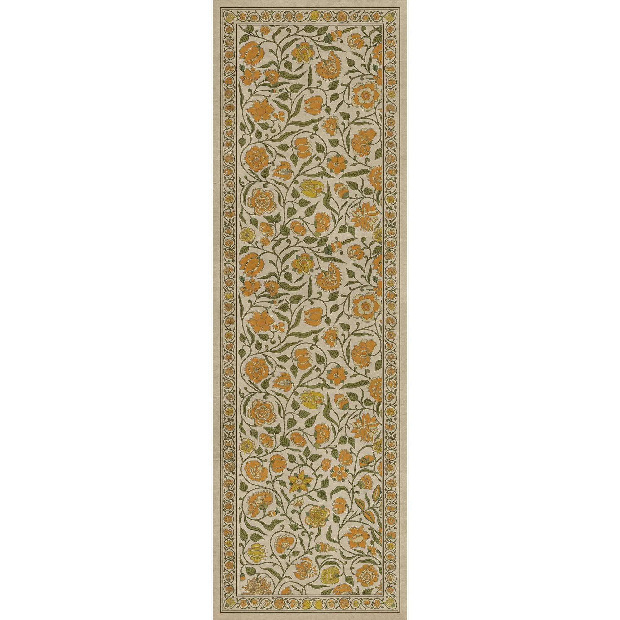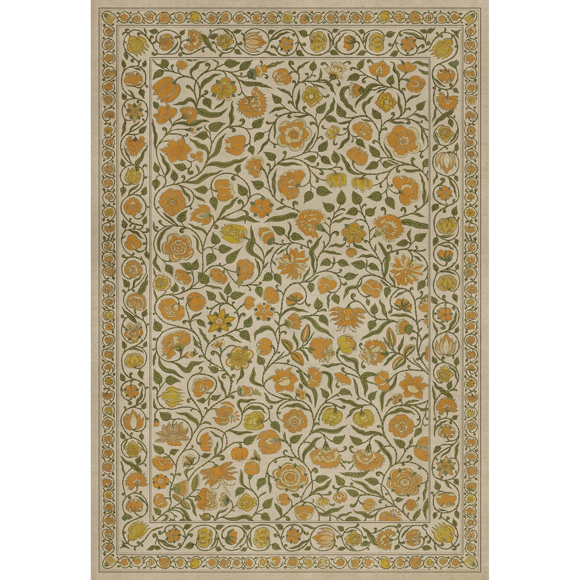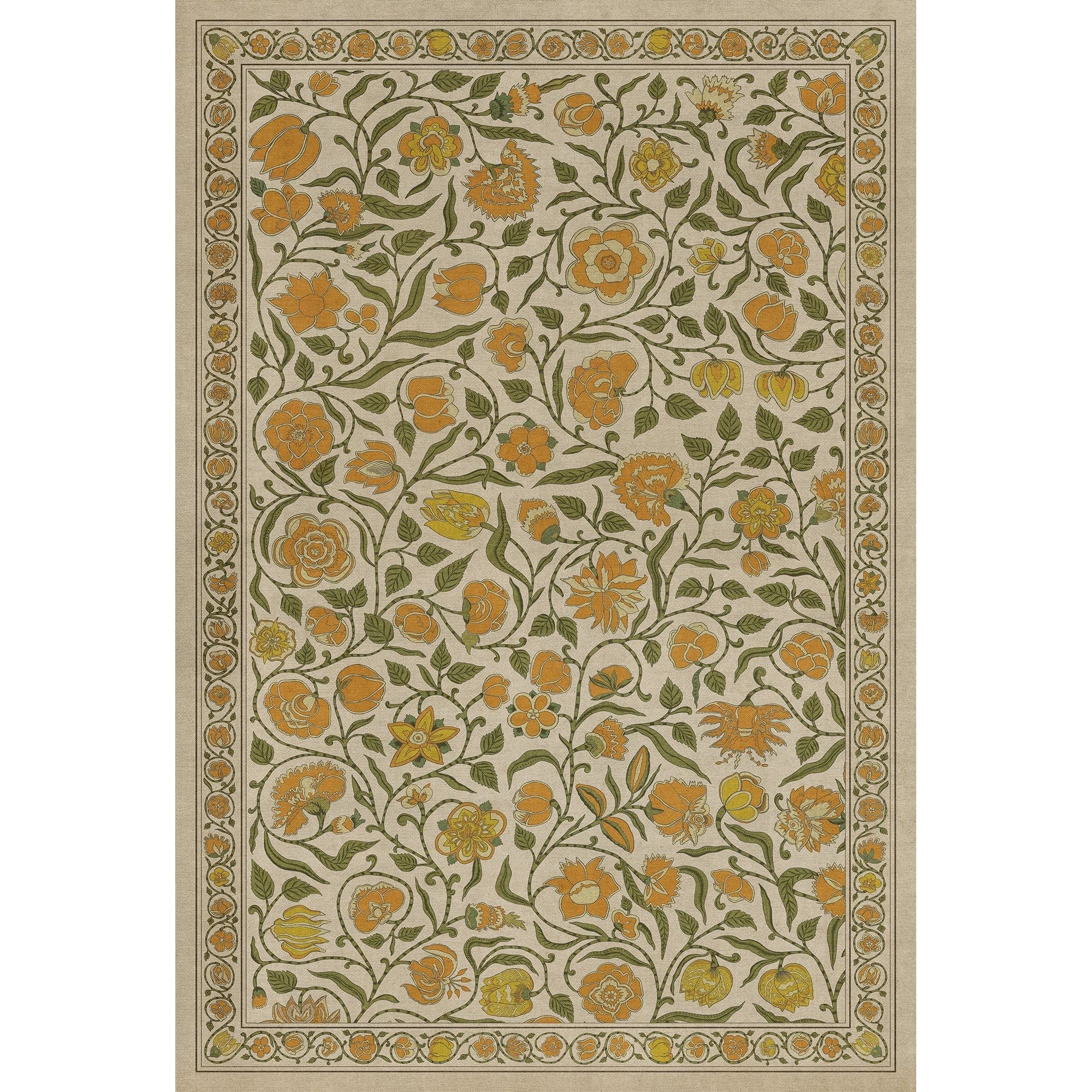 Vintage Vinyl Floorcloth Mat (Williamsburg - Antique Floral - A Lane Of Yellow)