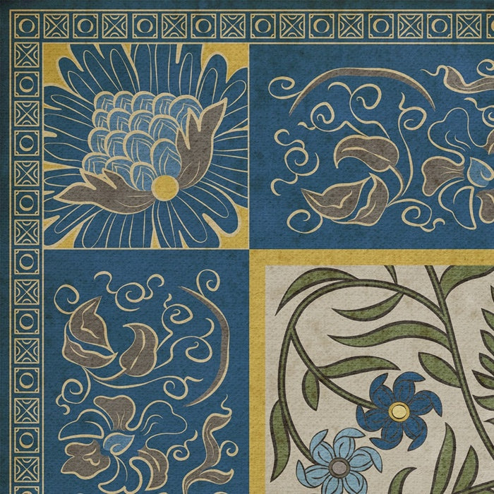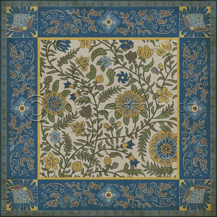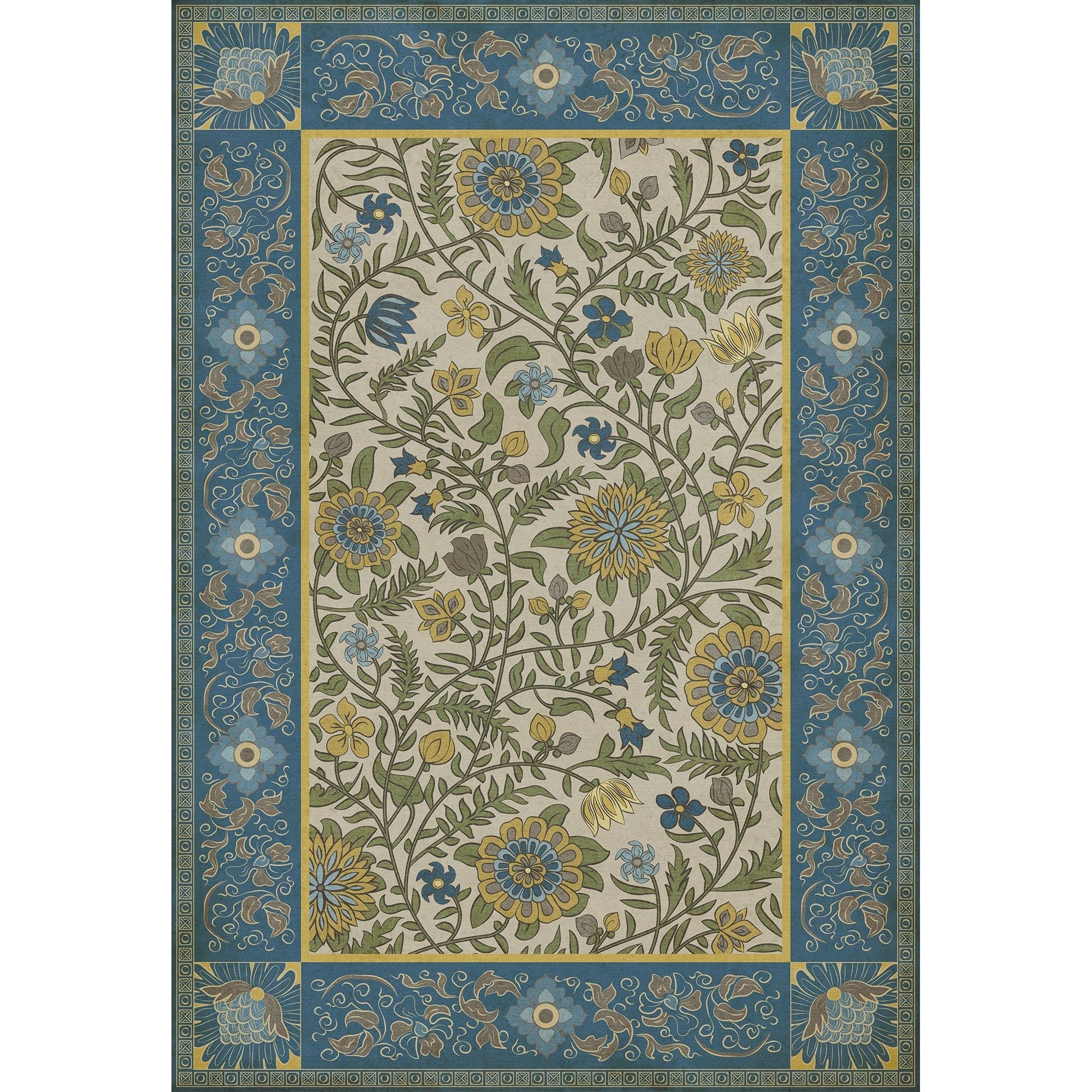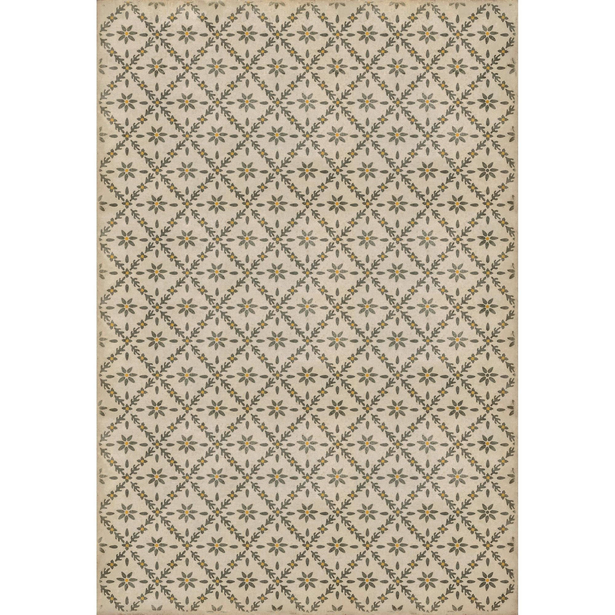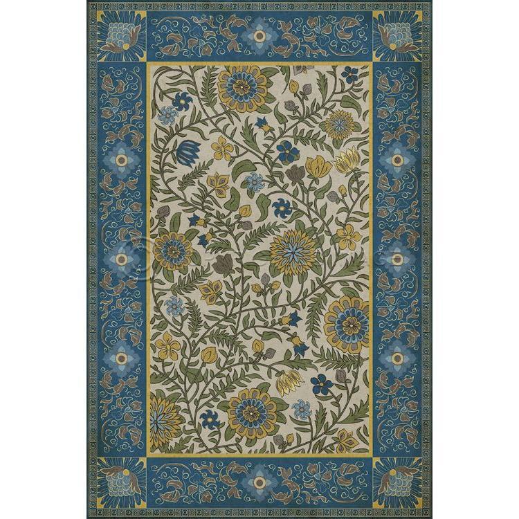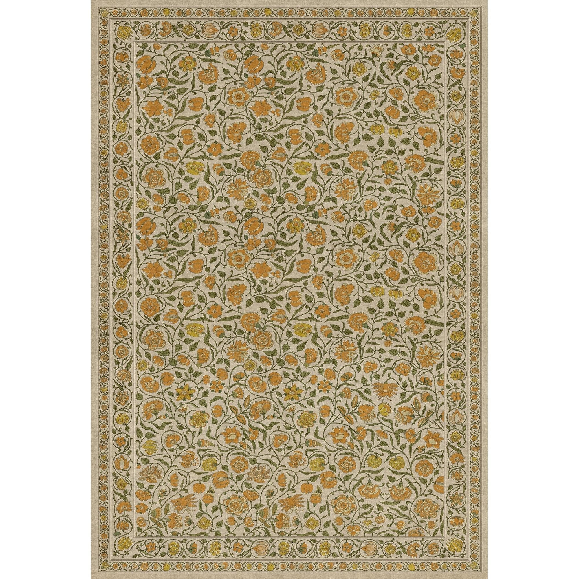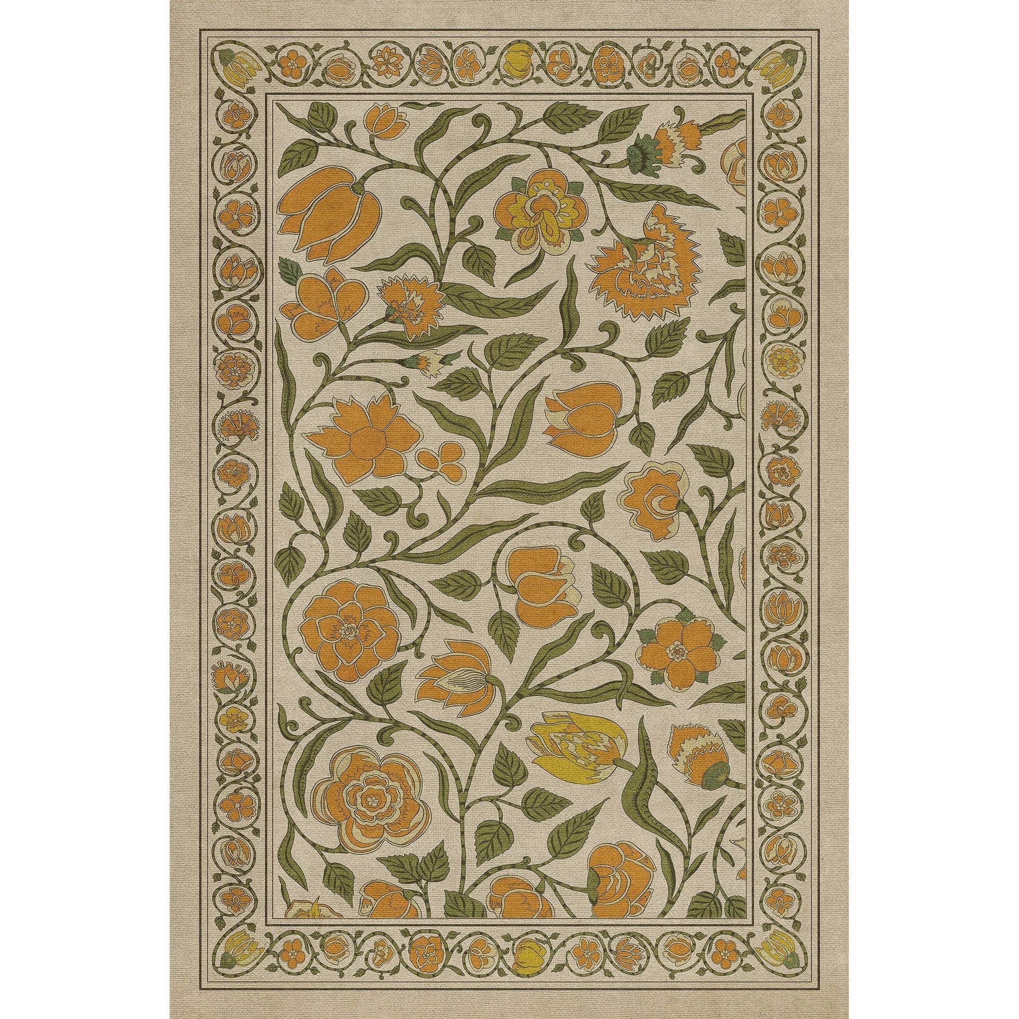 Vintage Vinyl Floorcloth Mat (Williamsburg - Antique Floral - A Lane Of Yellow)