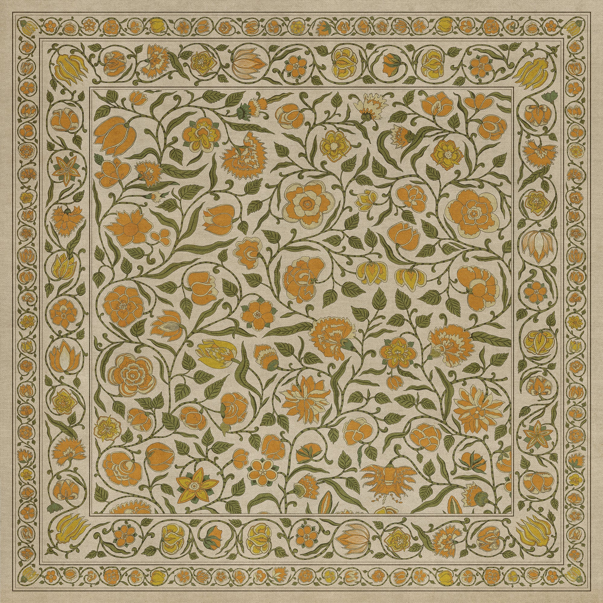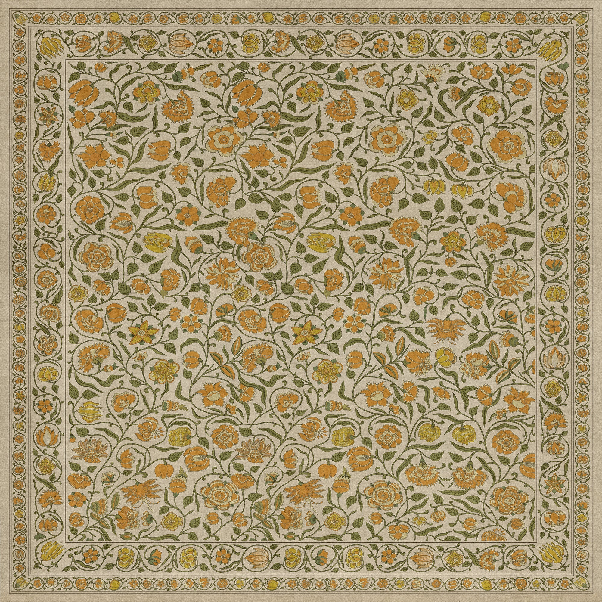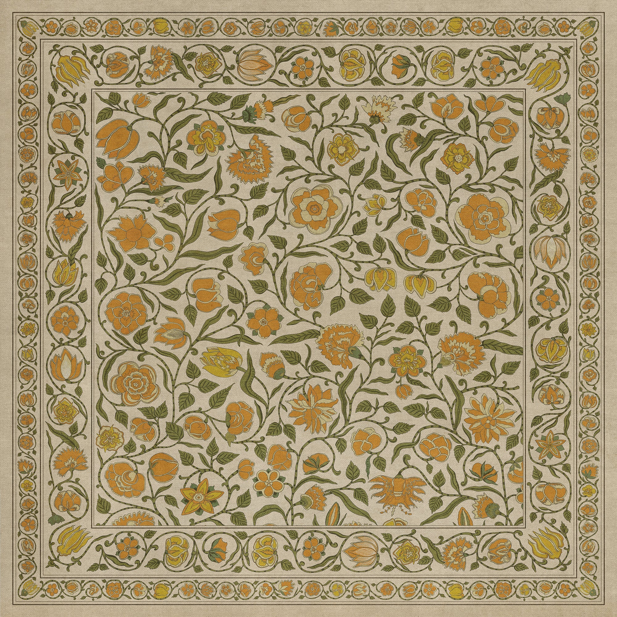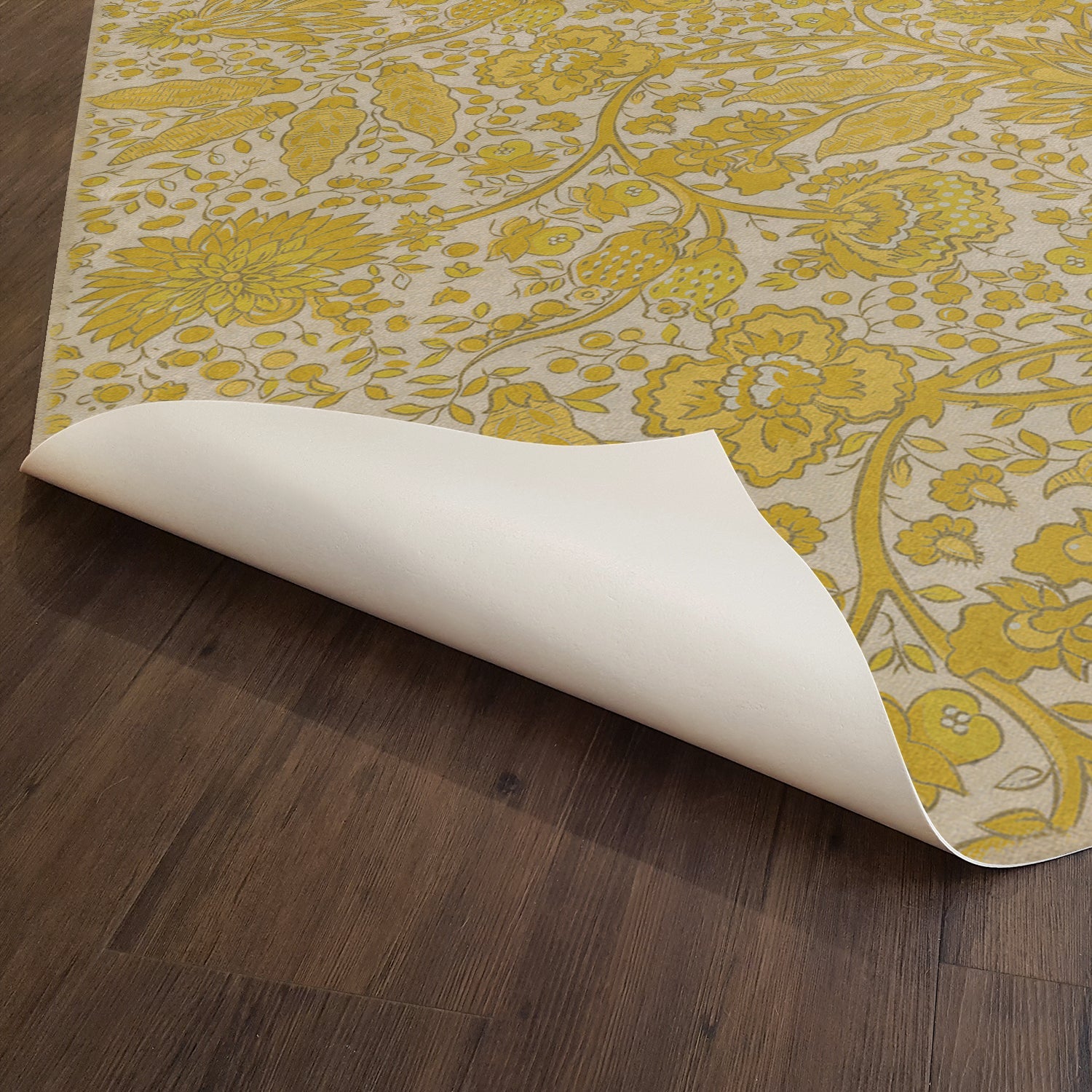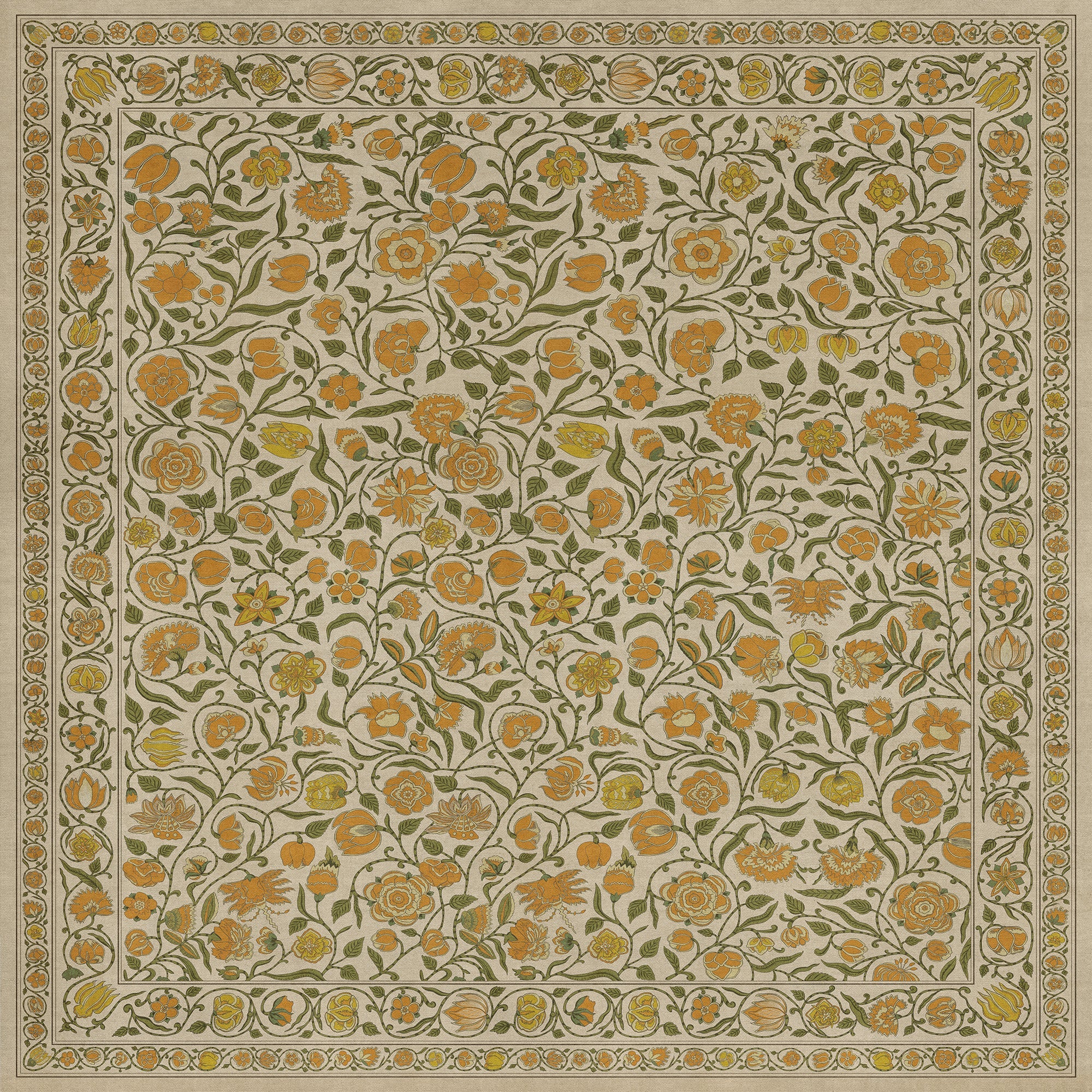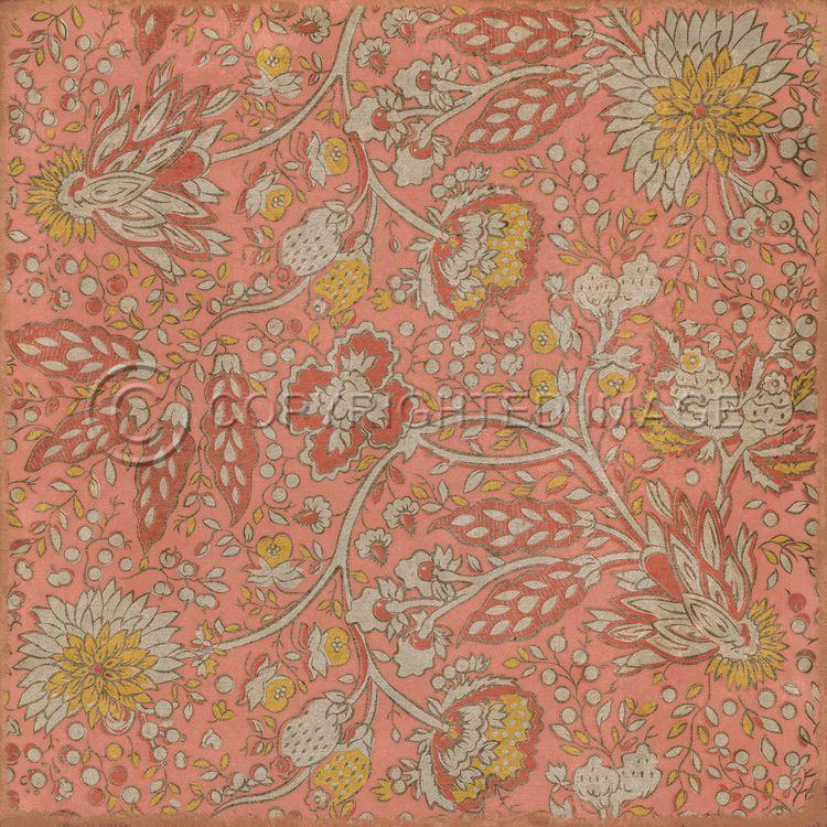 Vintage Vinyl Floorcloth Mat (Williamsburg - Antique Floral - A Lane Of Yellow)