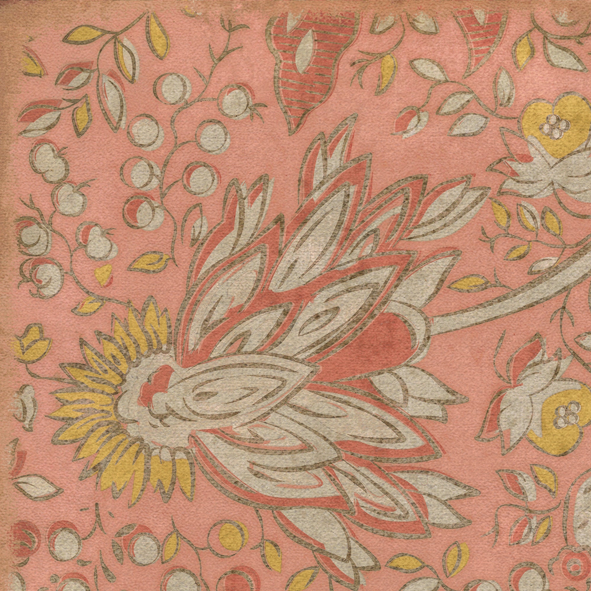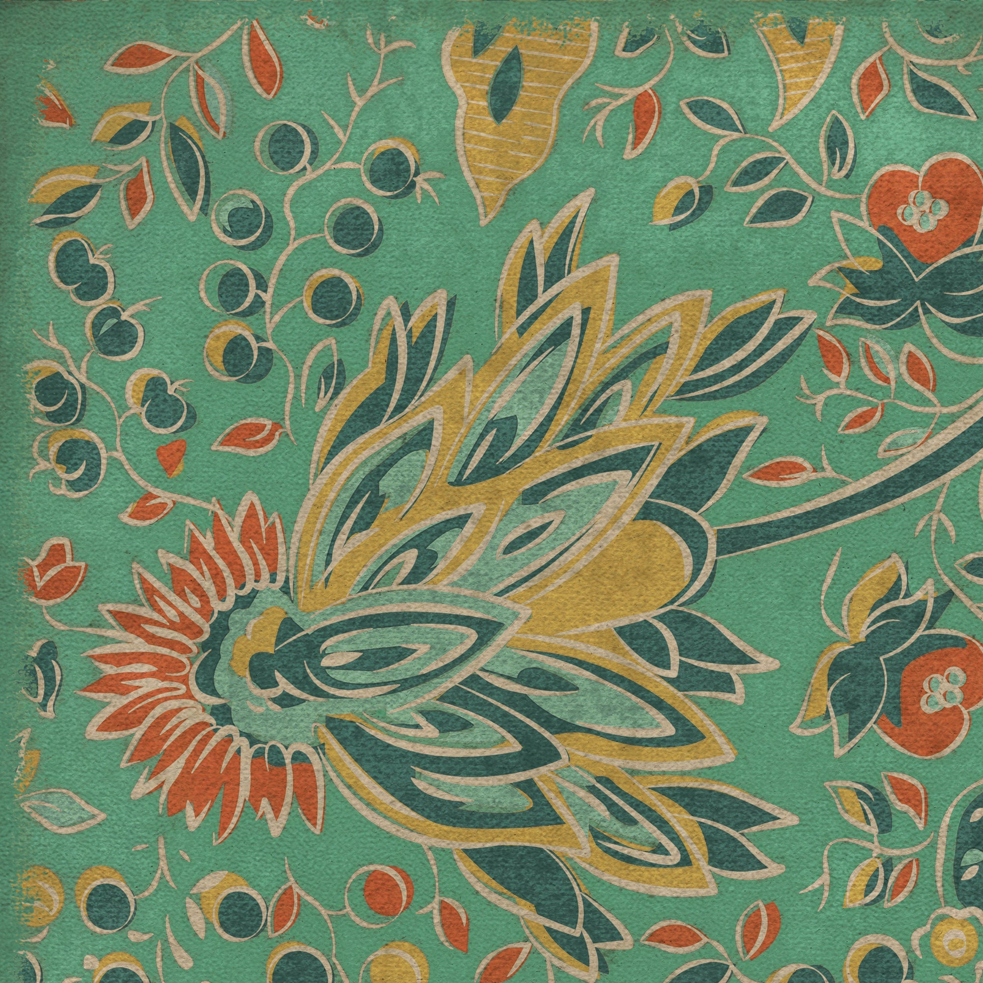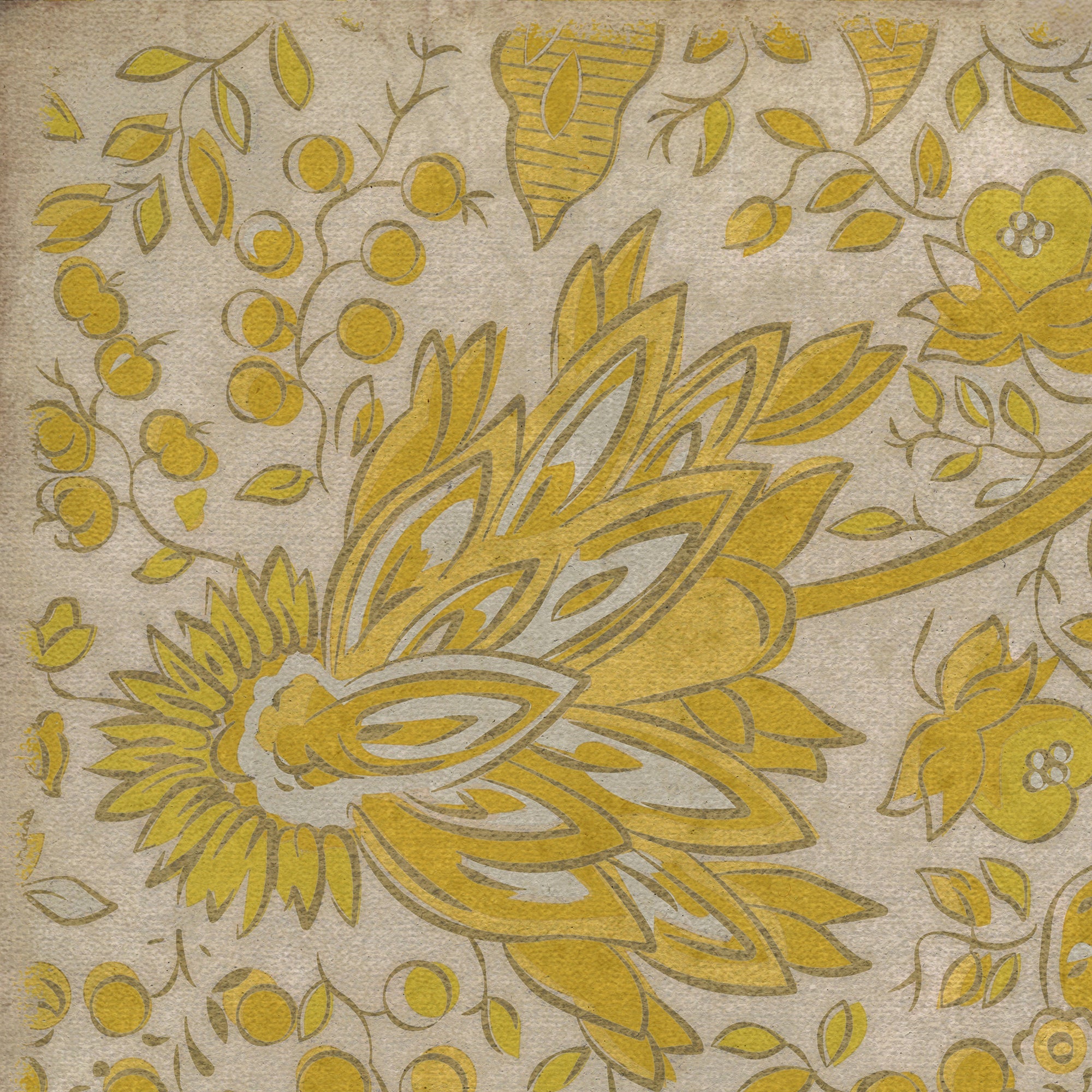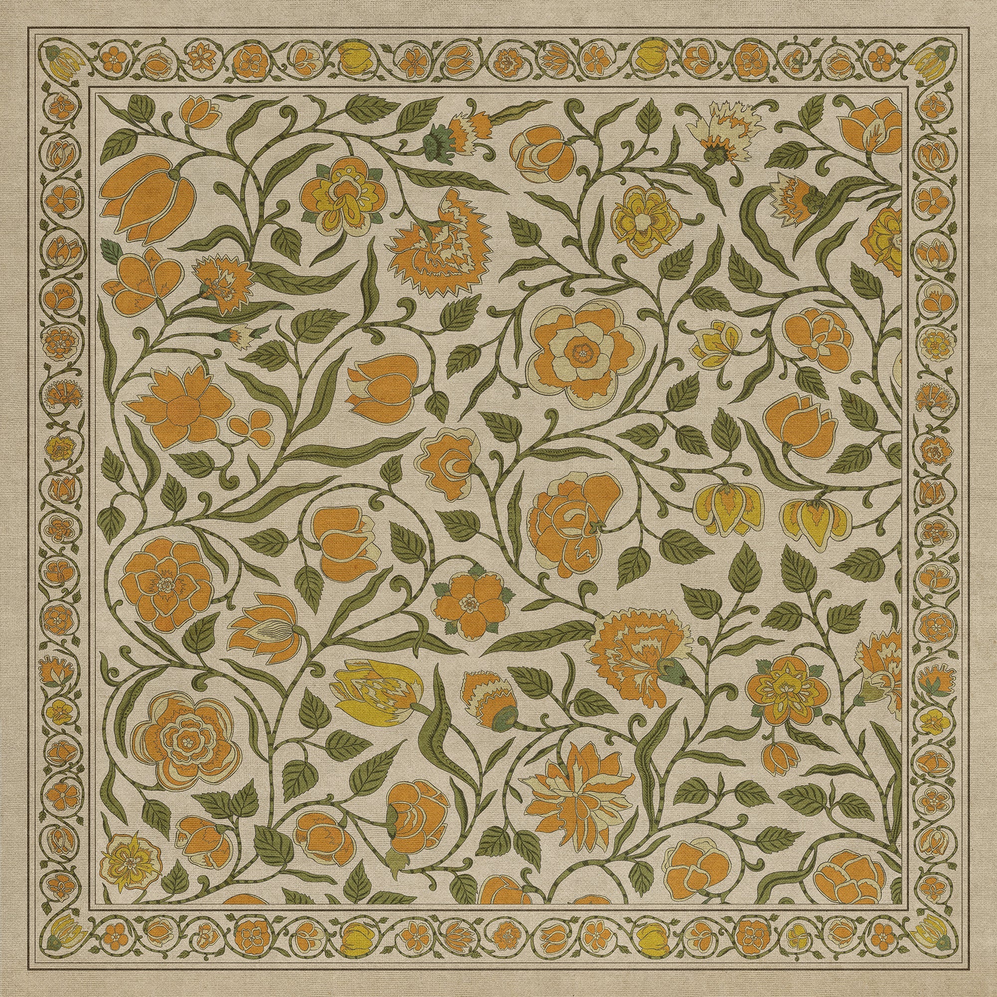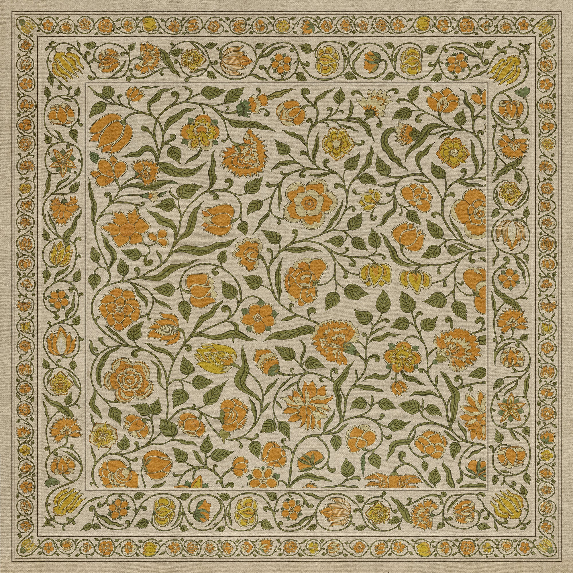 Vintage Vinyl Floorcloth Mat (Williamsburg - Antique Floral - A Lane Of Yellow)