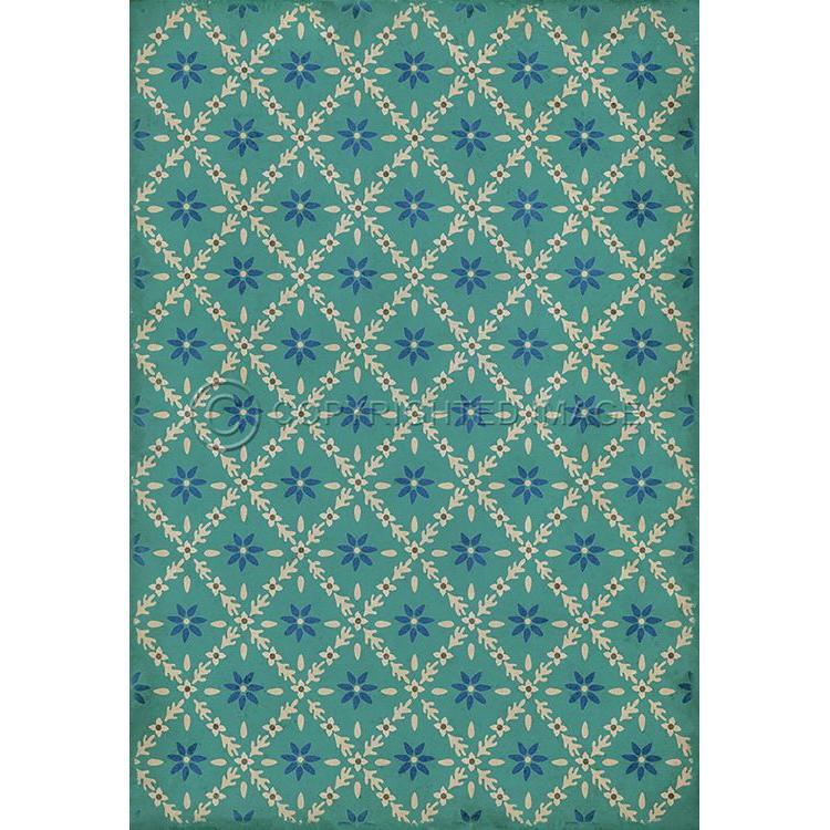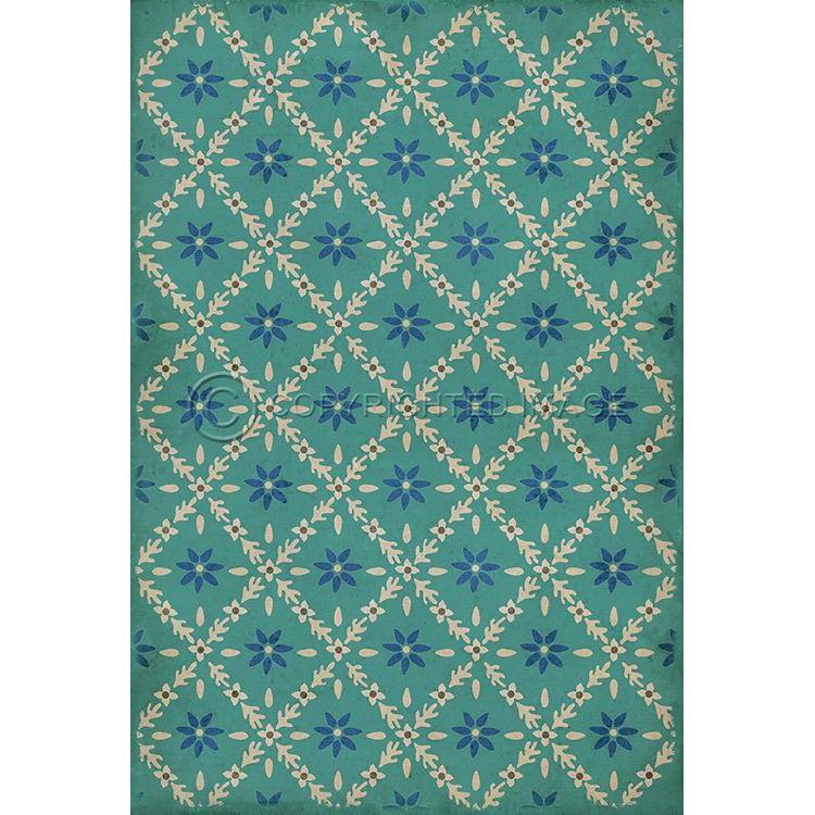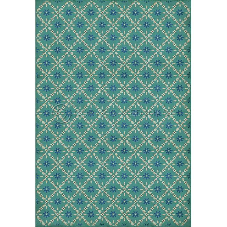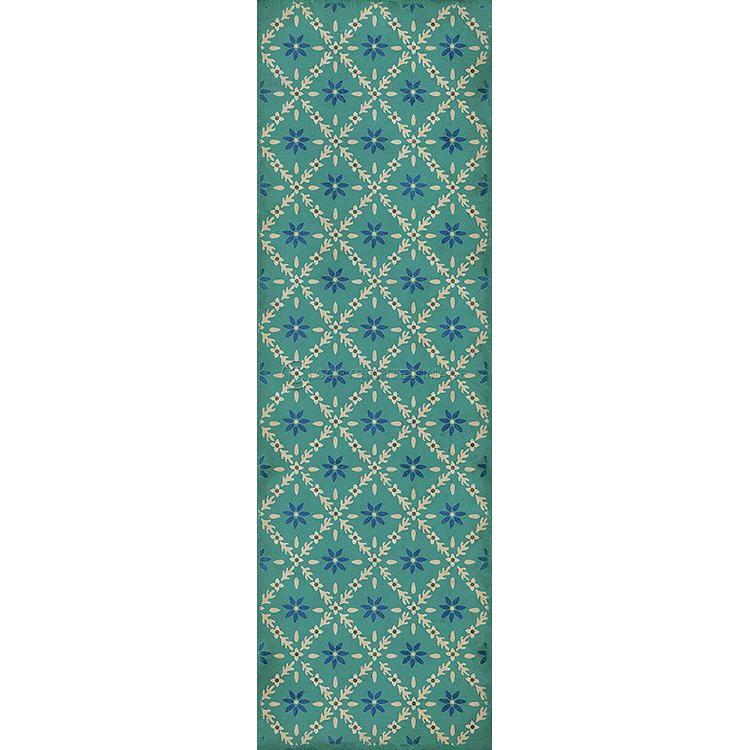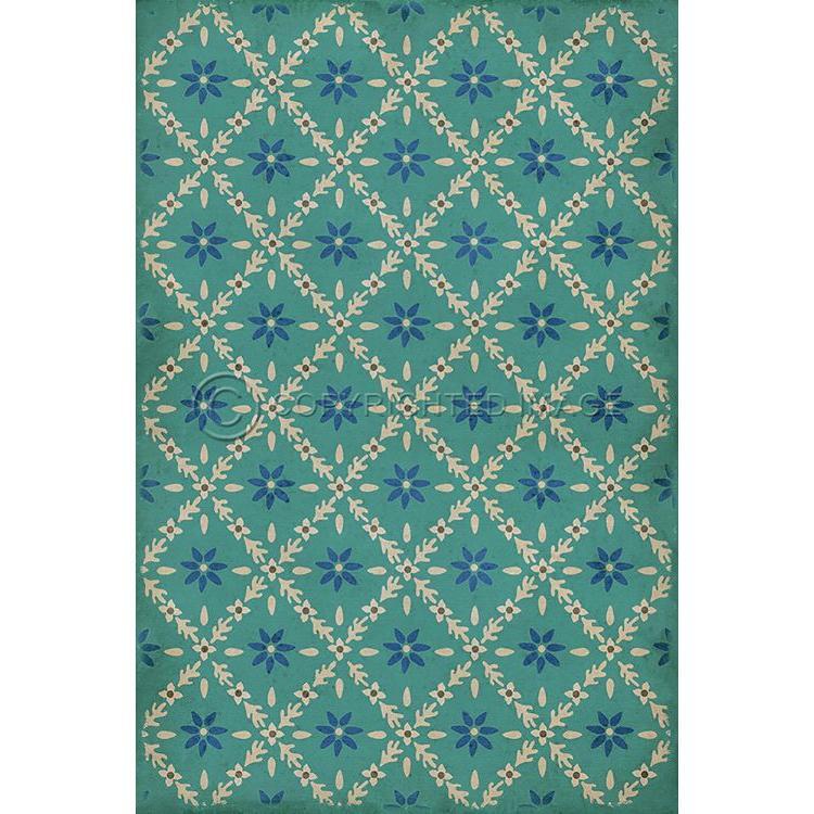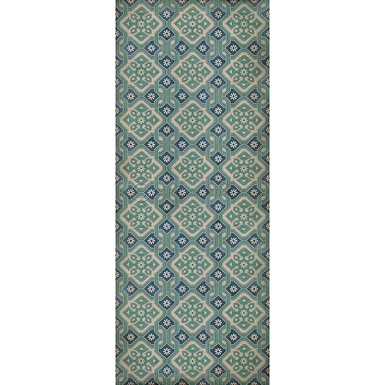 Vintage Vinyl Floorcloth Mat (Williamsburg - Garden Gate - A Slash Of Blue)