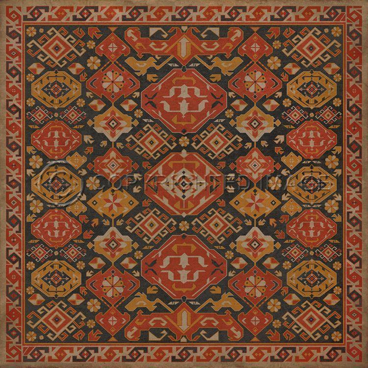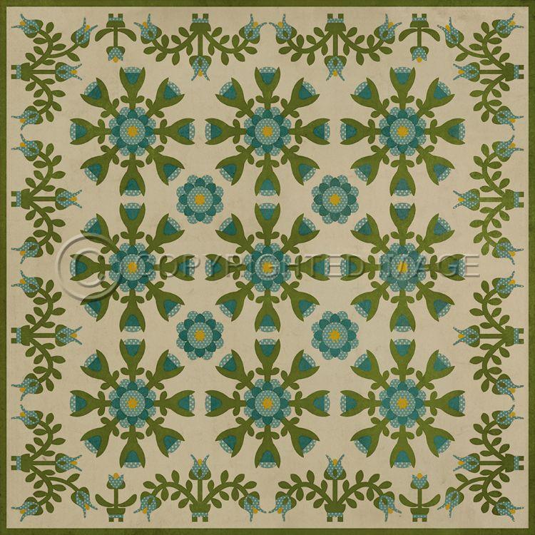 Vintage Vinyl Floorcloth Rug (Williamsburg - Indian Quilt - Cochin)