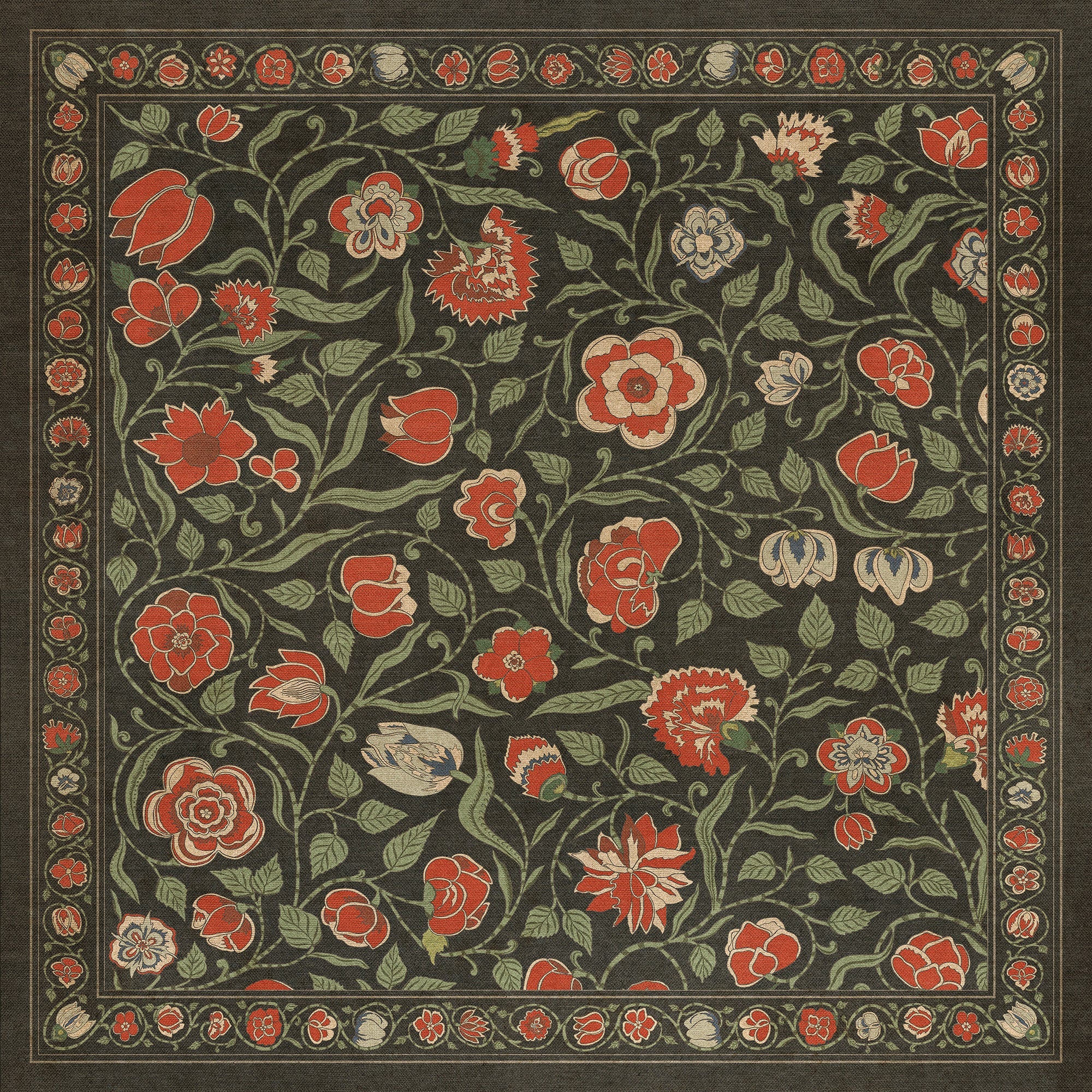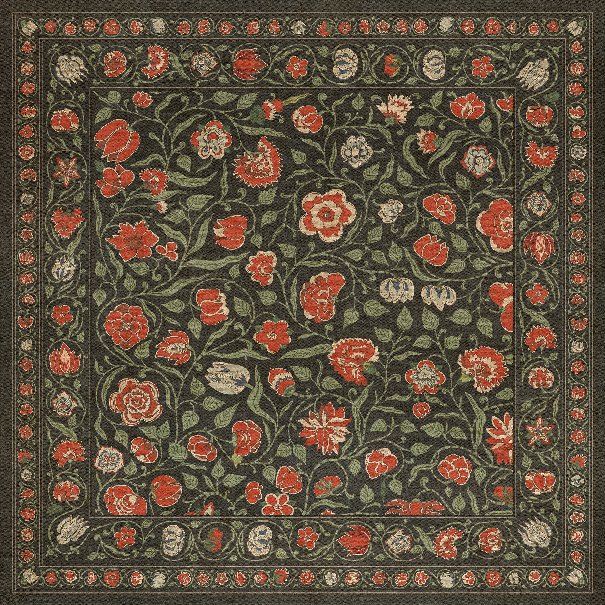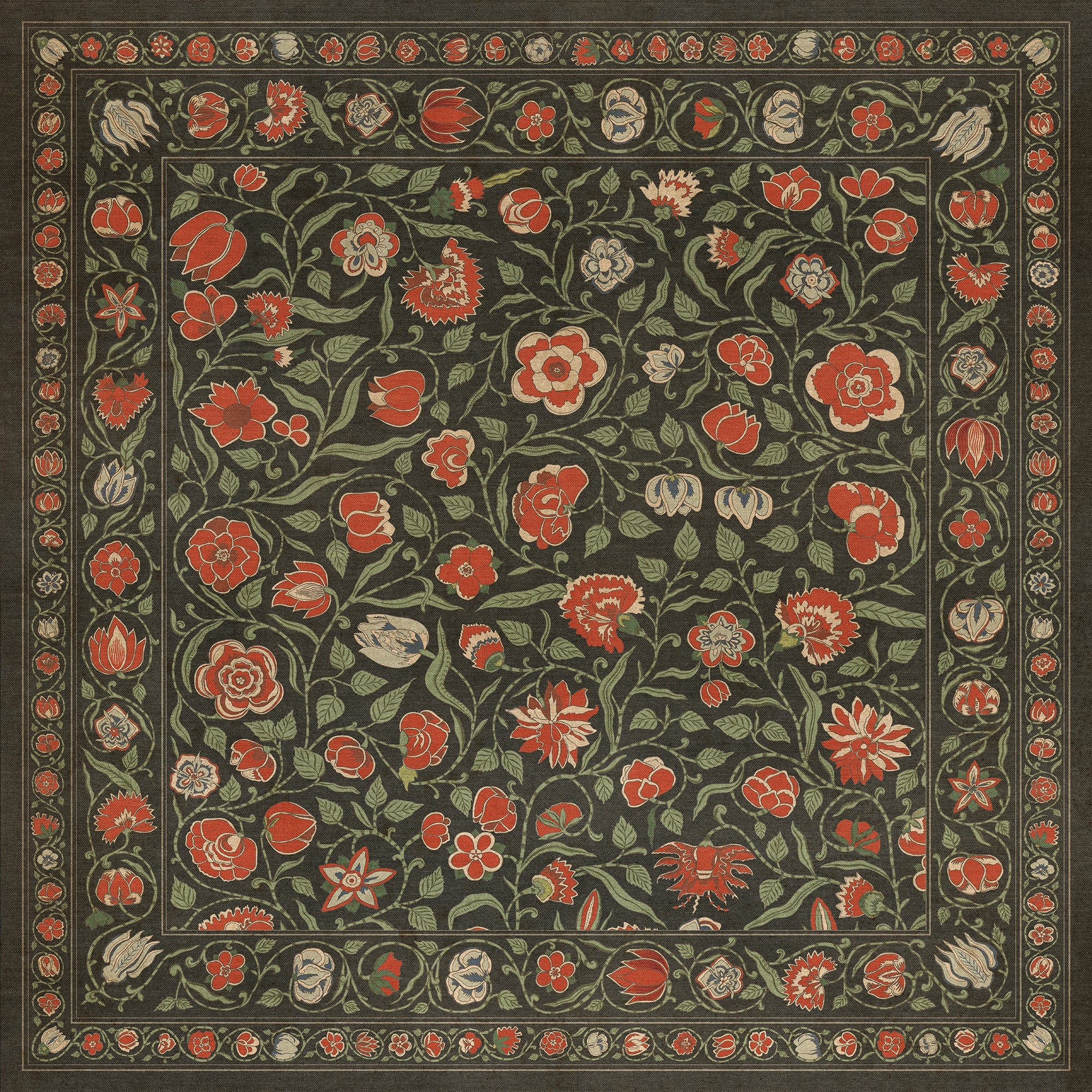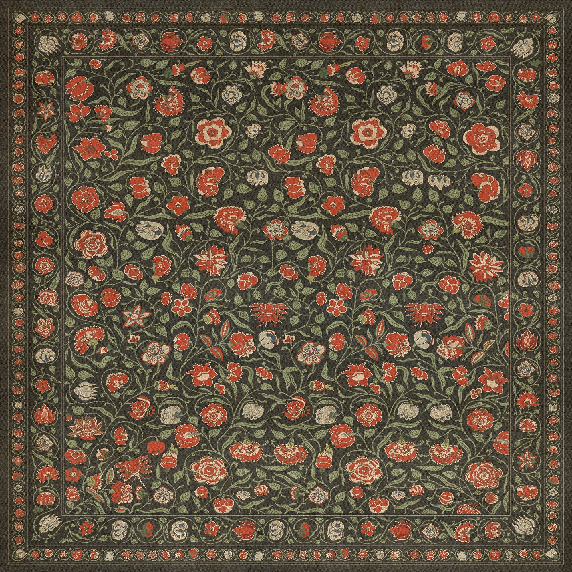 Vintage Vinyl Floorcloth Mat (Williamsburg - Antique Floral - A Joy Of Earth)