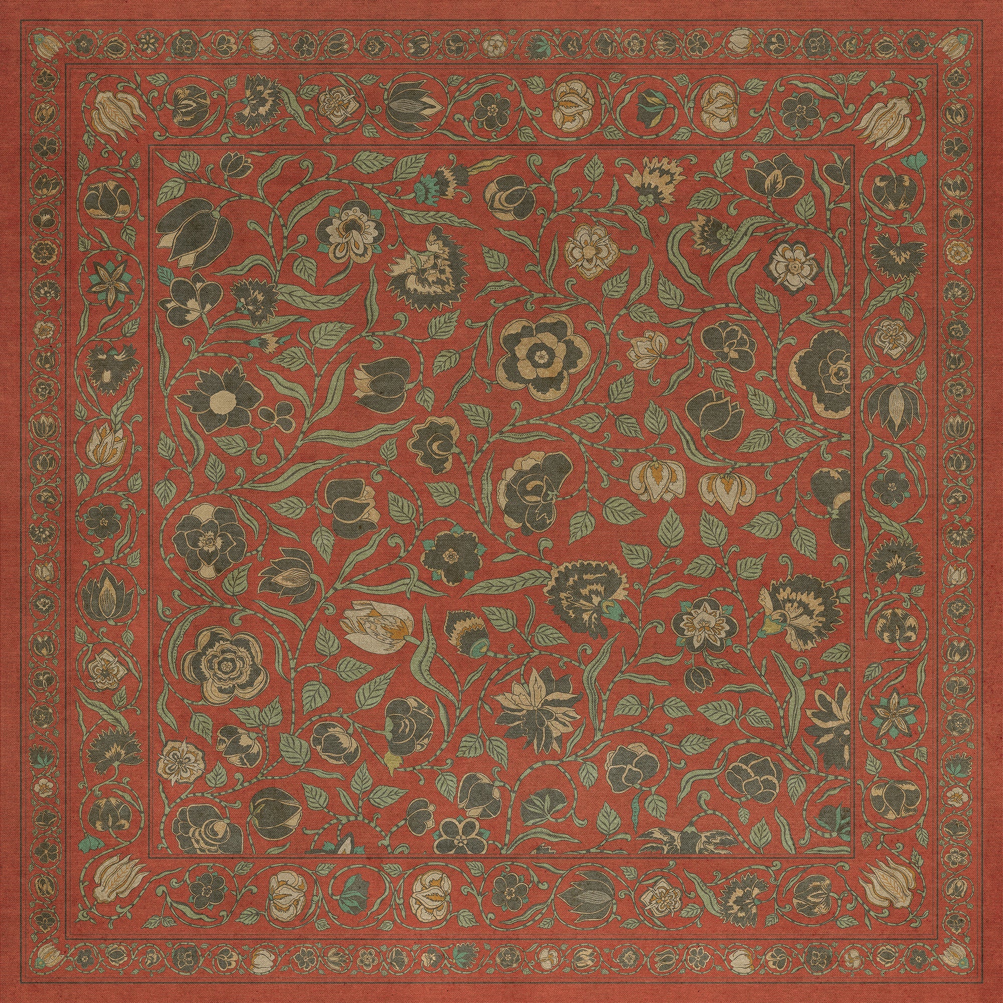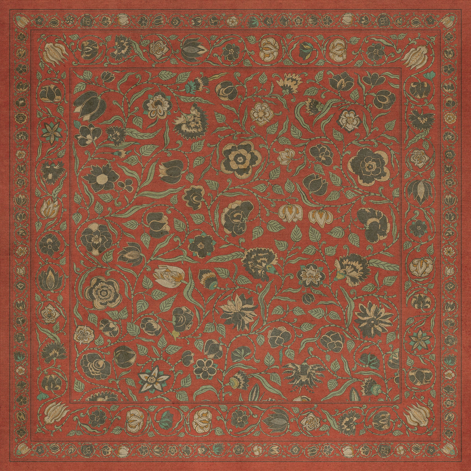 Vintage Vinyl Floorcloth Mats (Williamsburg - Traditional - Paprika)