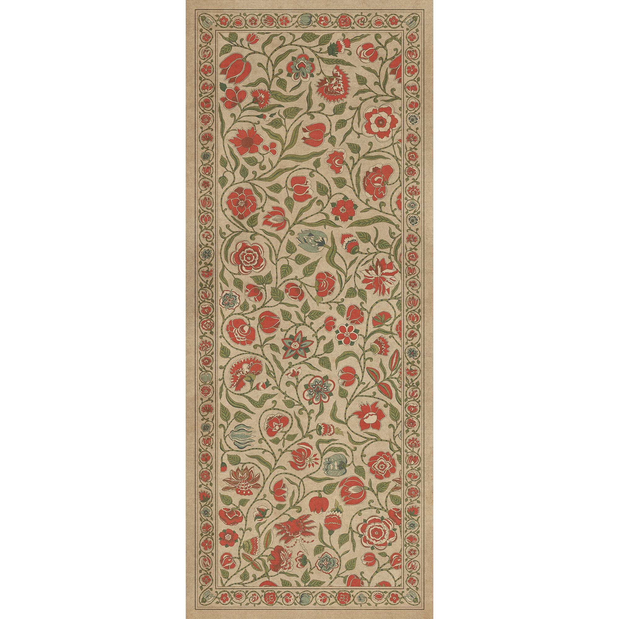 Vintage Vinyl Floorcloth Mat (Williamsburg - Antique Floral - Where You Go I Will Go)