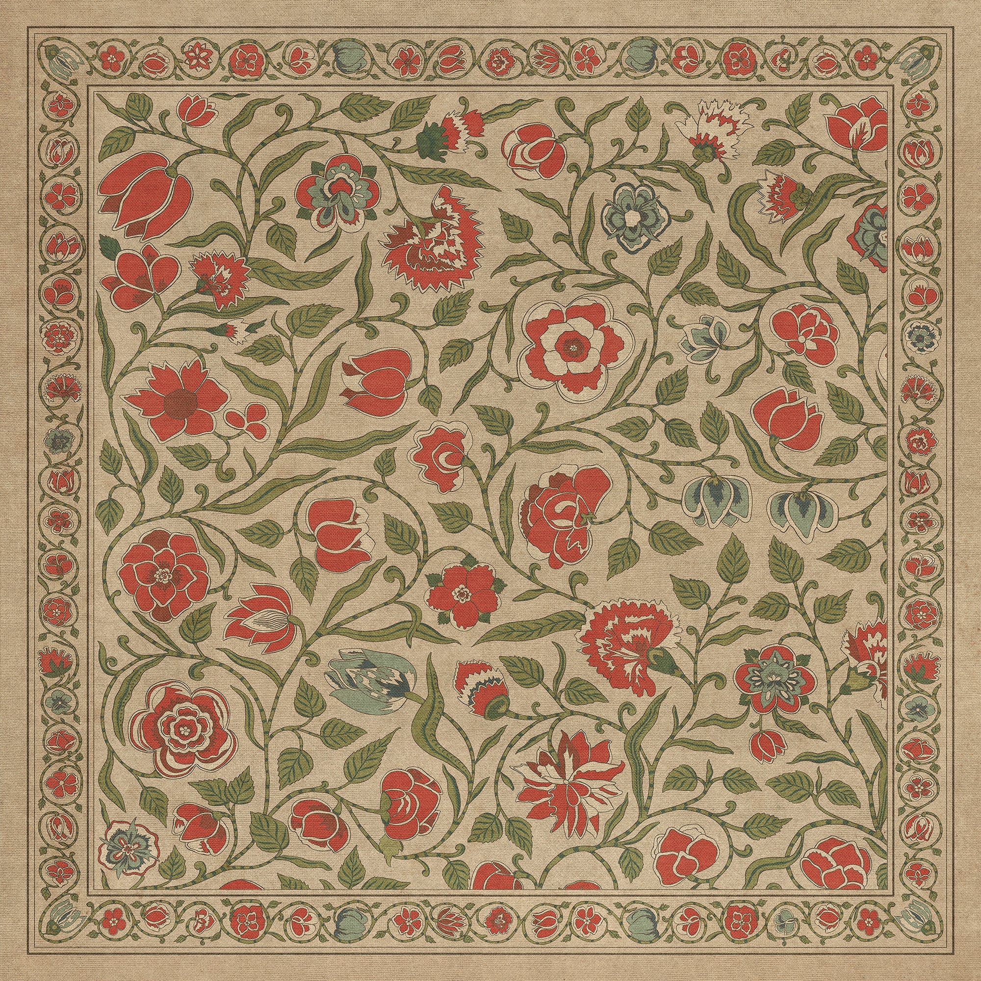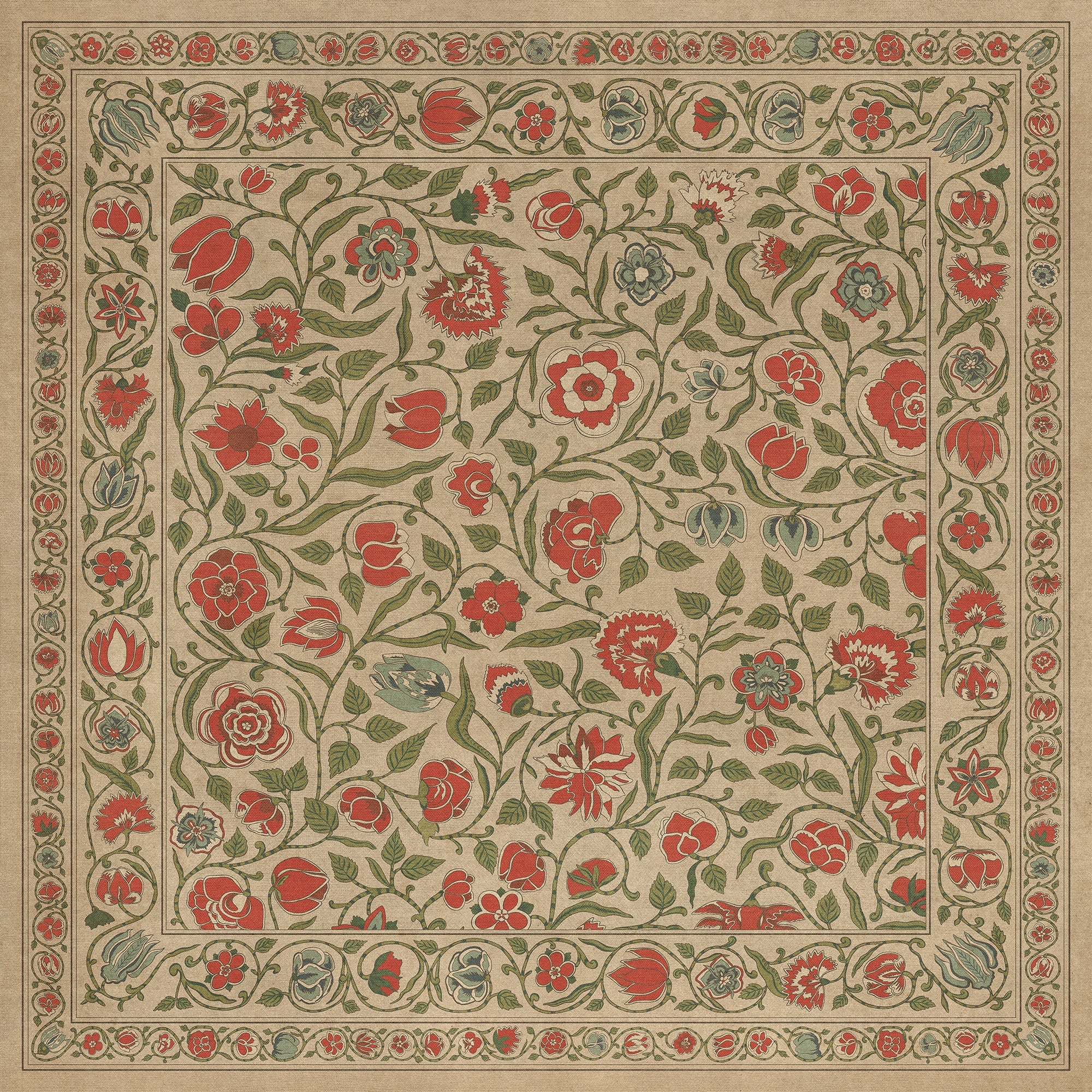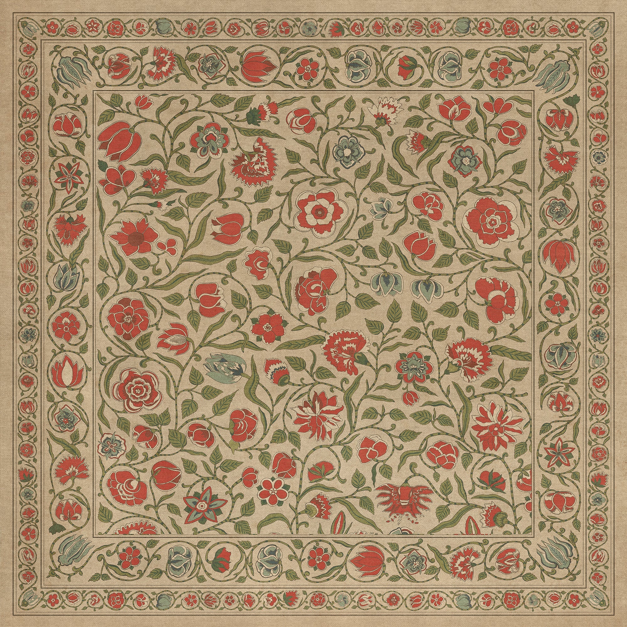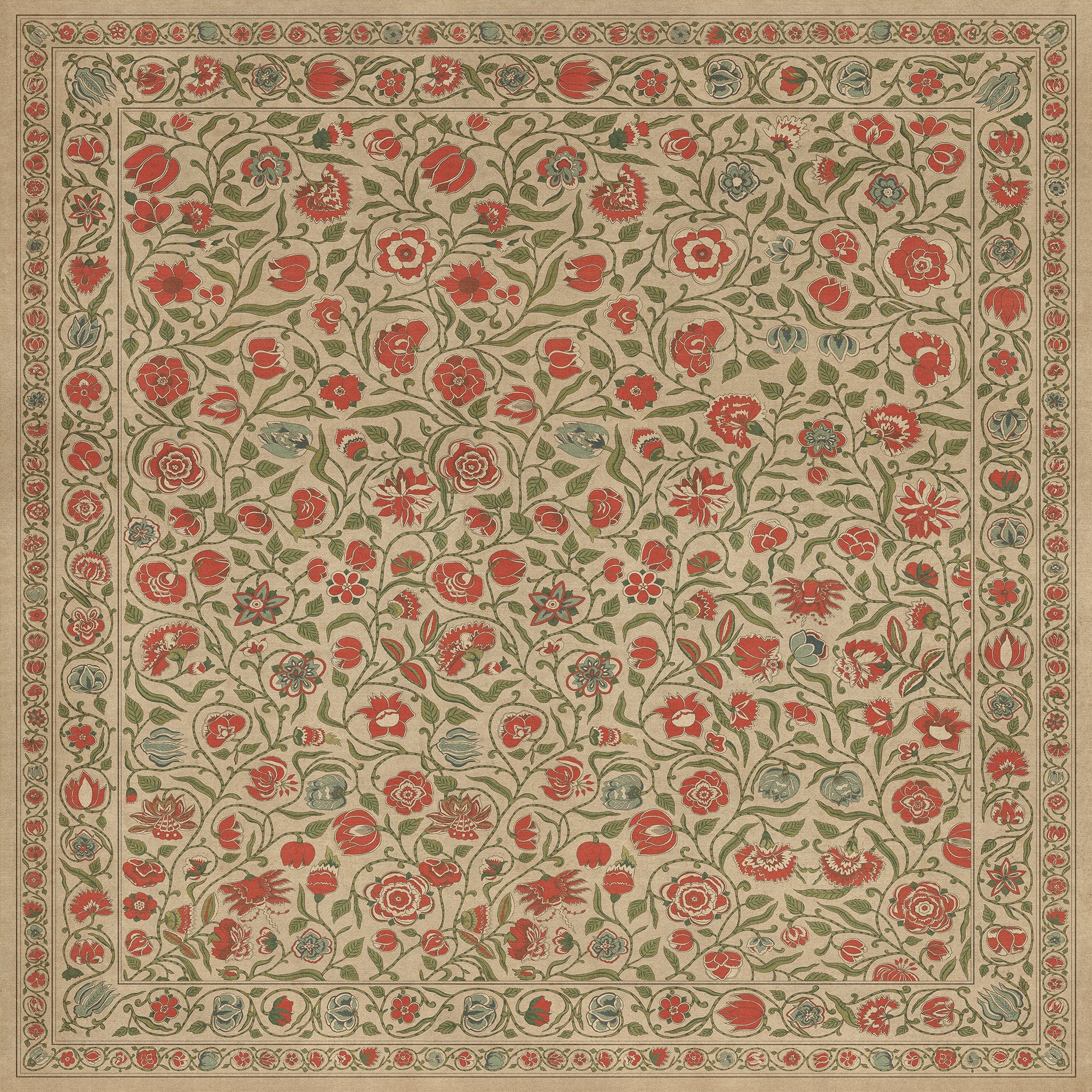Vintage Vinyl Floorcloth Mat (Williamsburg - Antique Floral - Coronation)