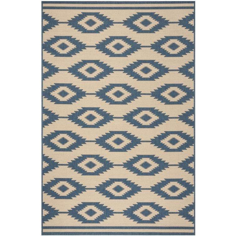 Linden LND171M Blue Creme area rug from Safavieh, a versatile addition to any home decor. The neutral colors and timeless geometric and oriental patterns make this rug a perfect choice for adding style and elegance to your space. Crafted with enhanced polypropylene, this rug is easy to care for and virtually non-shedding, ensuring long-lasting beauty.