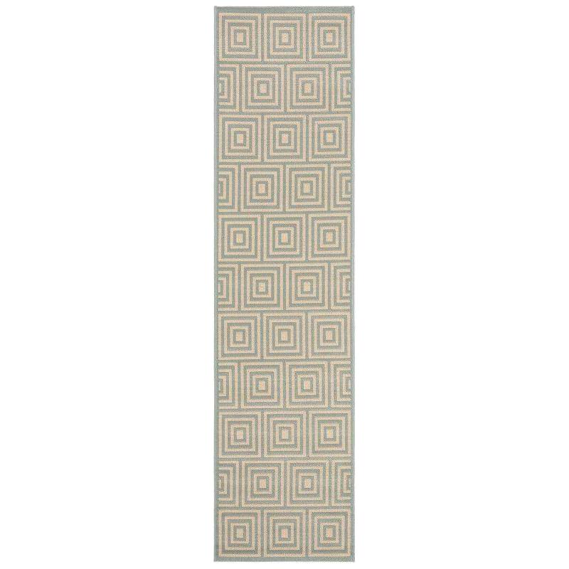 stunning Linden LND173L Cream Aqua area rug from Safavieh. This rug features a beautiful blend of neutral colors and timeless geometric and oriental patterns that will complement any decor style. Crafted with enhanced polypropylene, it is both durable and easy to maintain, making it a perfect choice for high-traffic areas in your home.