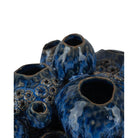 The Sulawasi Blue Shells is crafted from dark clay ceramic to resemble a cluster of barnacles. Each piece is meticulously thrown and carved before being coated in a deep blue reactive glaze, giving it a rich, ocean-inspired finish. A lighter blue falling glaze accentuates the top portions, adding contrast and making every sculpture unique. Perfect for adding texture and coastal charm to any space, this piece brings a touch of natural elegance to your décor.