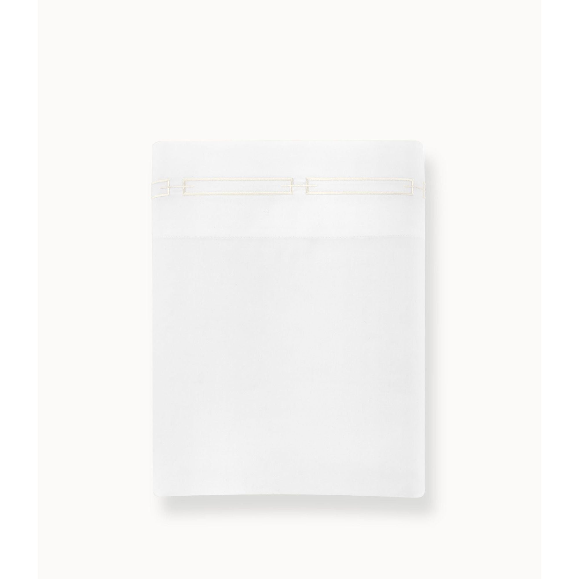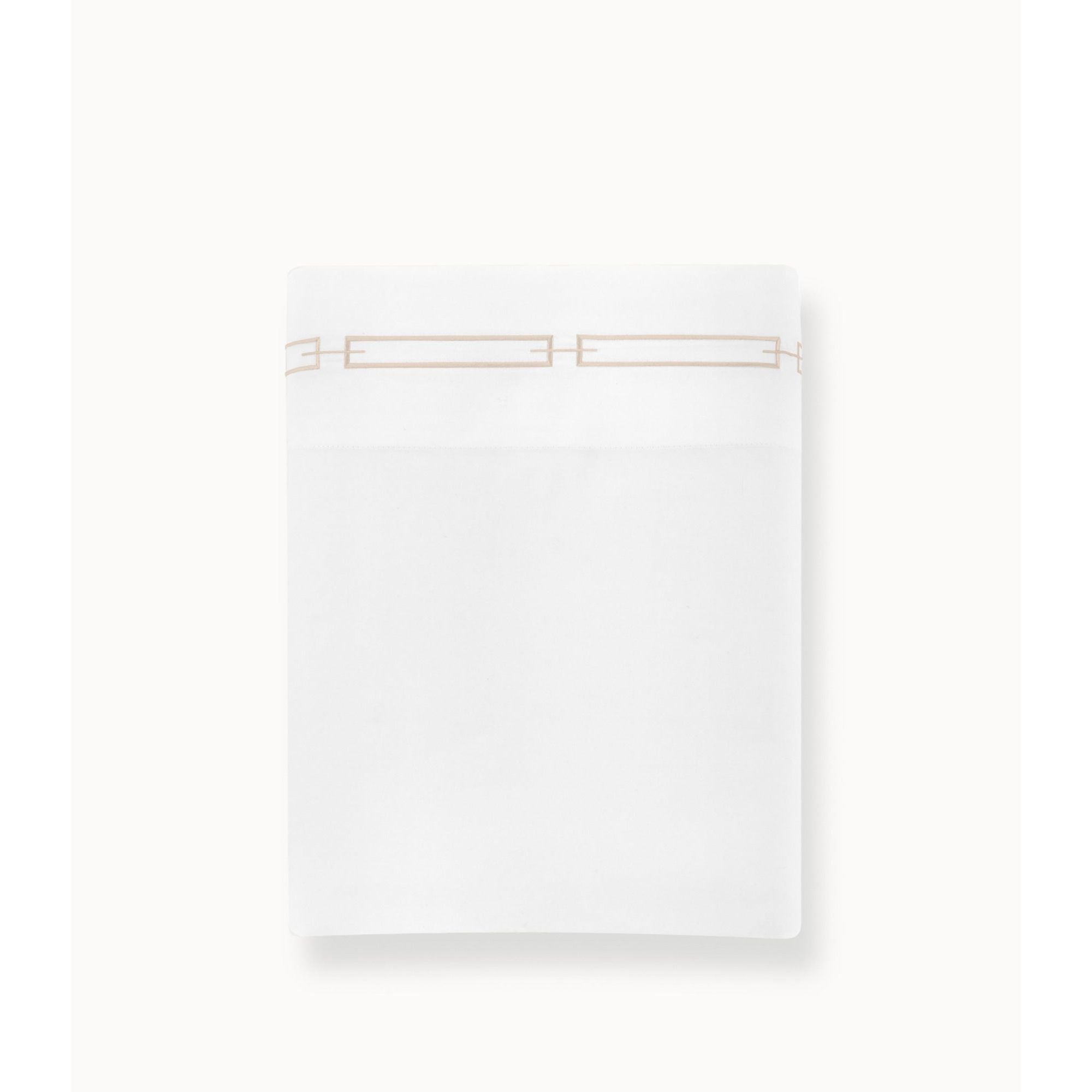 - Flat sheet features a contemporary geometric link design embroidered on the 4" cuff.