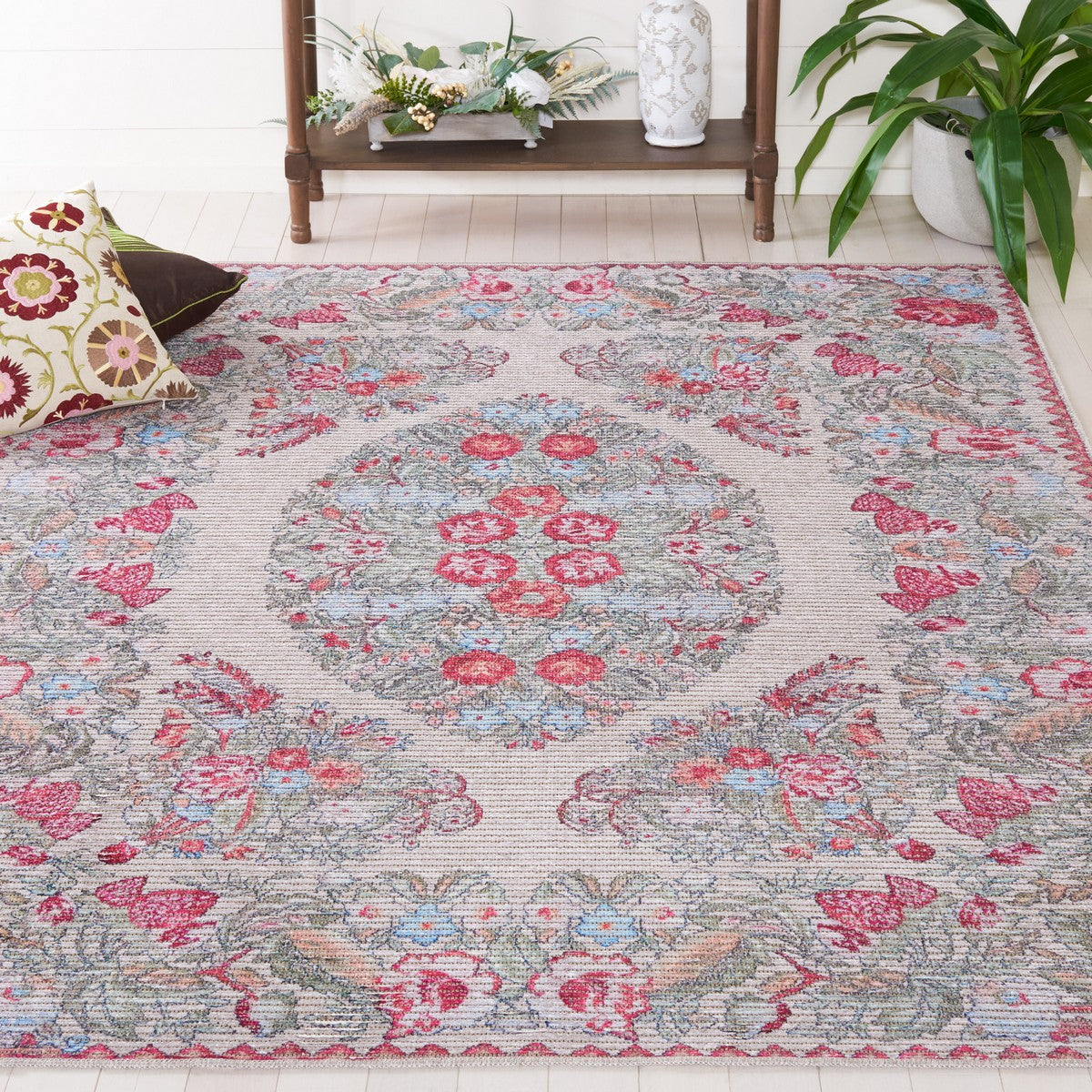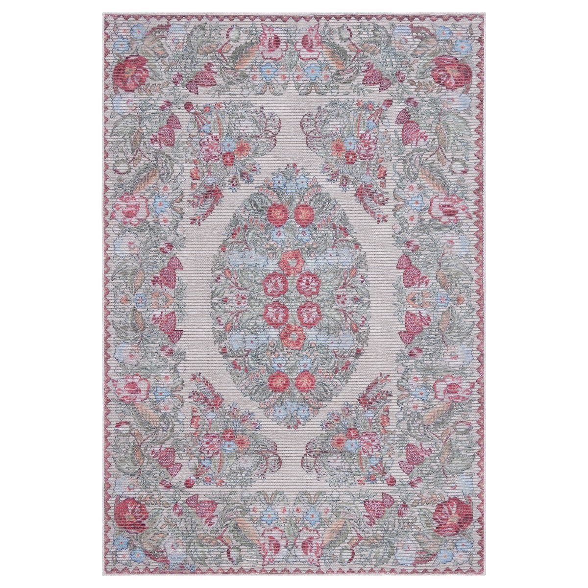 Besarabian BES222B Beige Sage rug, a stunning piece inspired by the vibrant Eastern European culture. This rug features intricate floral patterns in eye-catching colors that will elevate the look of any space. Crafted using a blend of cotton, jute, and chenille, Besarabian rugs are known for their softness and durable flat-woven texture.