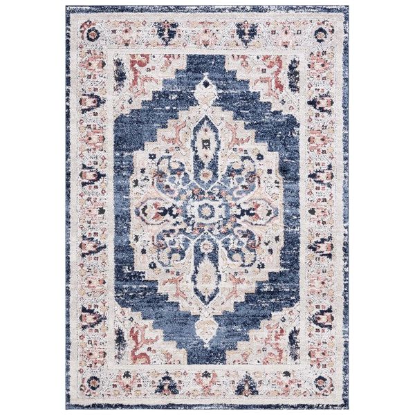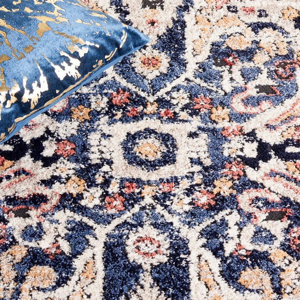 Luna LUN103N Navy Beige rug, a stunning addition to elevate your living space. Luna Rugs brings a modern twist to classic rug motifs with vibrant colors and lush textures. Perfect for traditional or classy-contemporary room decor, this rug is crafted using soft synthetic yarns in a plush cut pile measuring 0.75 inches.