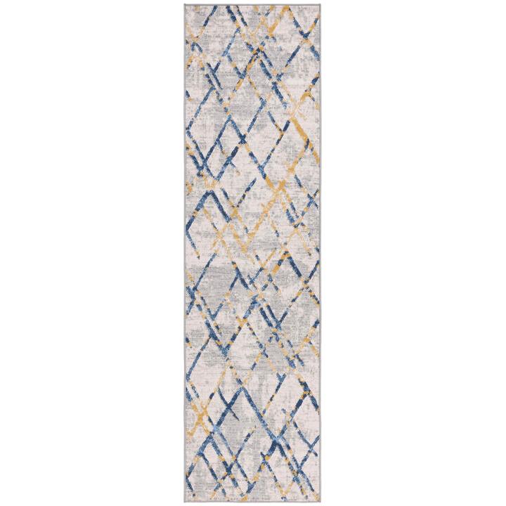striking Odyssey ODY810H Grey Blue Gold rug, a perfect addition to your home decor. Featuring a variety of contemporary designs and lively colors, Odyssey provides endless choices for transforming your living space. Crafted from plush synthetic yarns and designed with a sleek cut pile, these rugs offer both comfort underfoot and long-lasting elegance in any room.