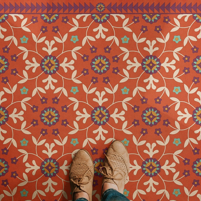 Inspired by old floor cloths and vintage linoleum, these vibrant vinyl mats offer warm colors with beautiful aging. They are extremely durable and flexible with a non-stick surface. Vintage Vinyl floor cloths are also very easy to clean and lay flat like rugs. Great in kitchens, baths, offices and controlled outdoor settings.