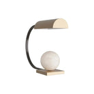 The Venice Desk Lamp Exudes Opulence, Created In Exaggerated Forms And Luxe Materials. The Pharmacy-Style Lamp Strikes A Sculptural Profile, Designed With A Swooping Arm In English Bronzed-Steel And A Curved Steel Shade In A Gleaming, Antique Brass Finish. A White Alabaster Orb Floats Atop An Antique Brass Steel Base, Completing The Dramatic Composition. Finish Will Vary.