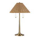 Boasting a timeless aesthetic, this classic table lamp marries natural rattan and dark antique brushed brass to deliver a transitional touch to any space. Its woven shade softly filters light for an ambient glow while its richly patinaed body warms up the room with old-world charm. Include one or a pair in your decorating scheme for an instantly adored update.